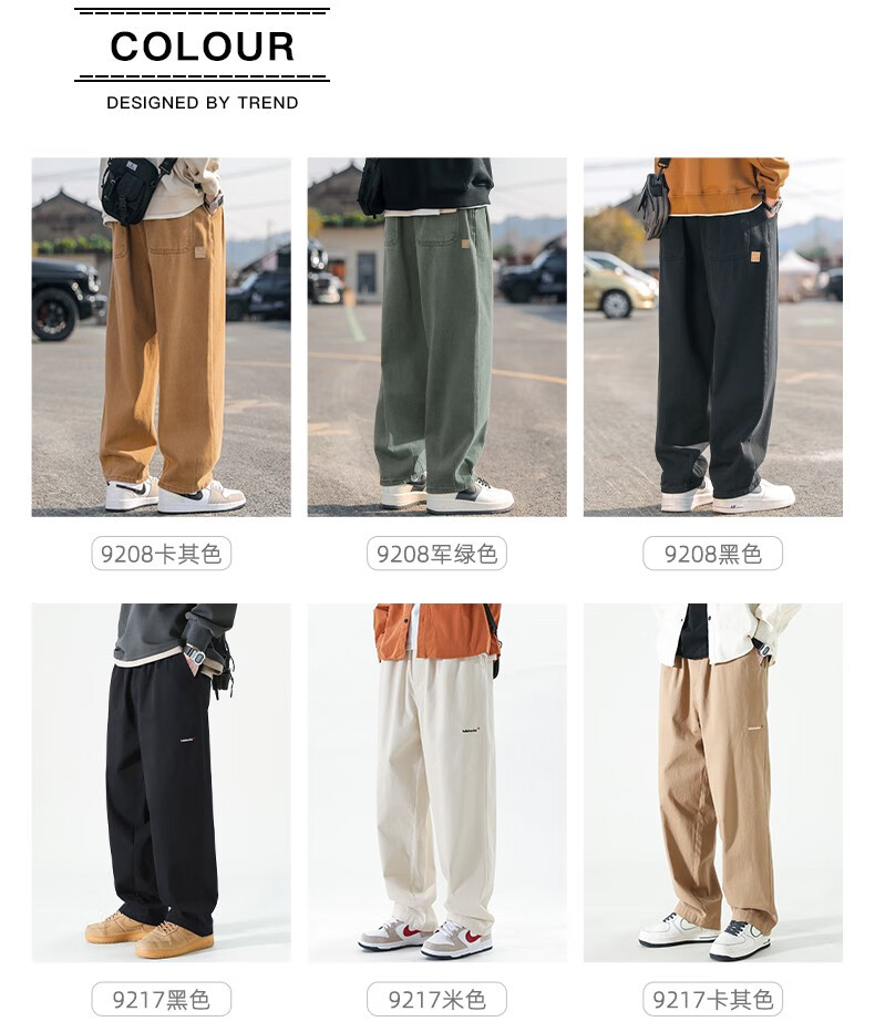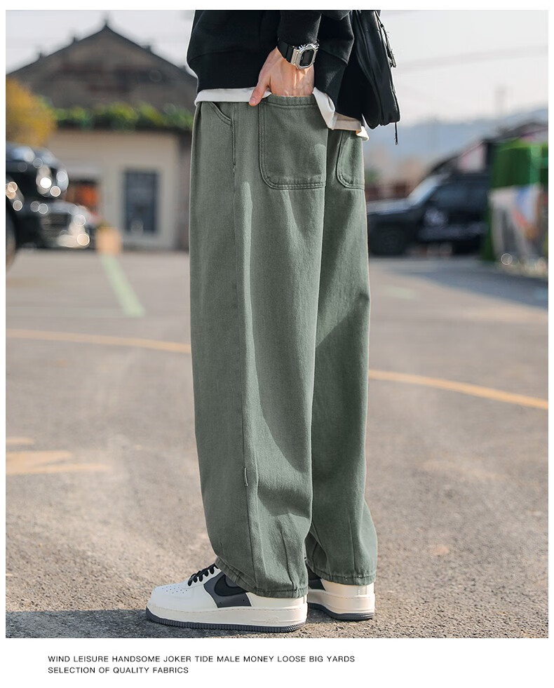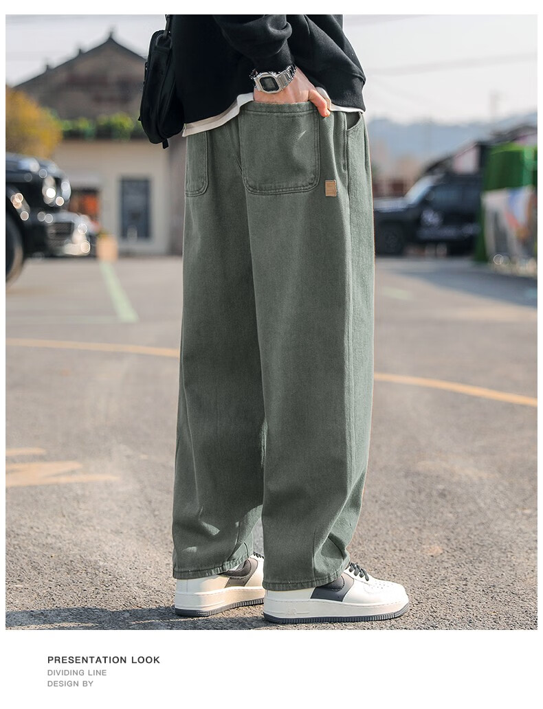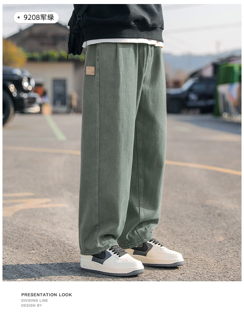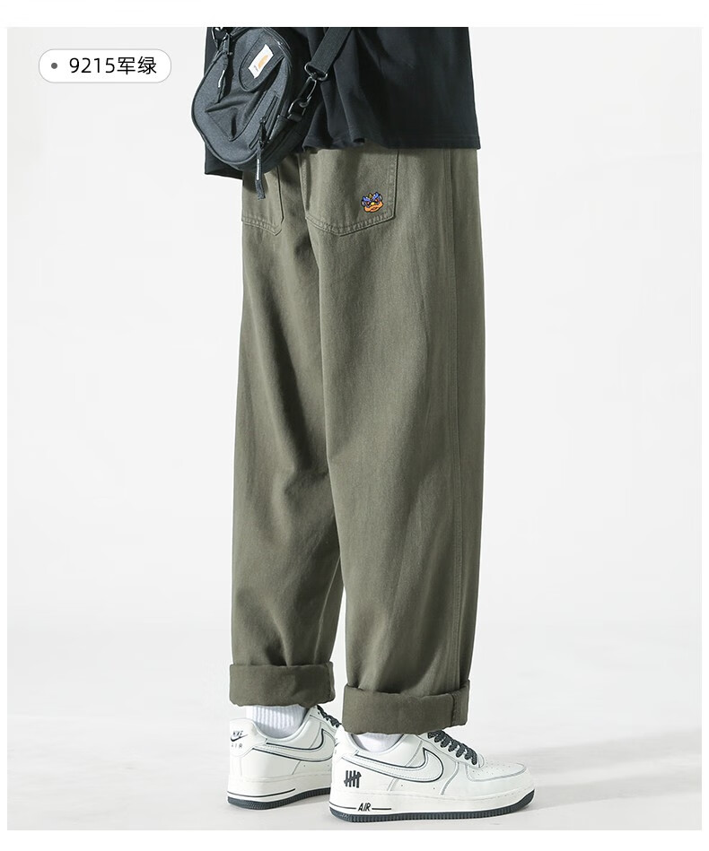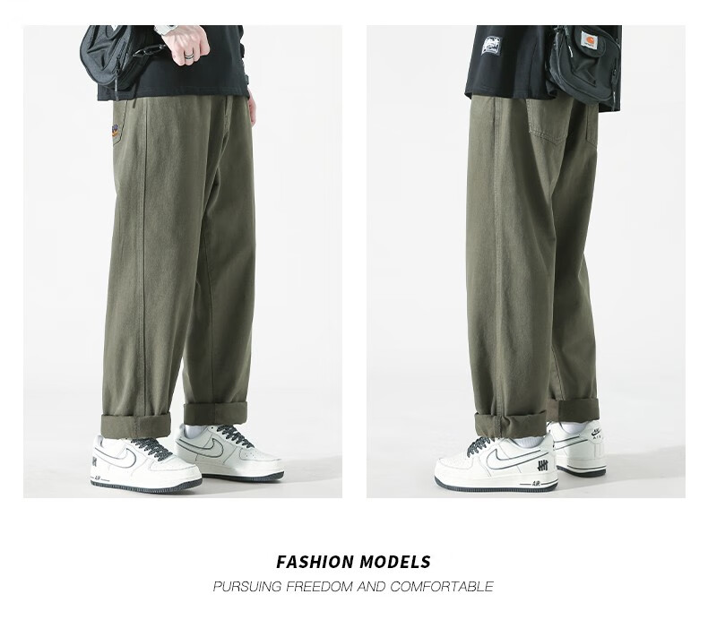 FOG SKY pants men's summer, autumn and winter straight-leg pants for boys trendy brand wide-leg pants American overalls loose casual pants for men A232-HK9208 military green L (recommended 115-135Jin Jin equals 0.5 kg)