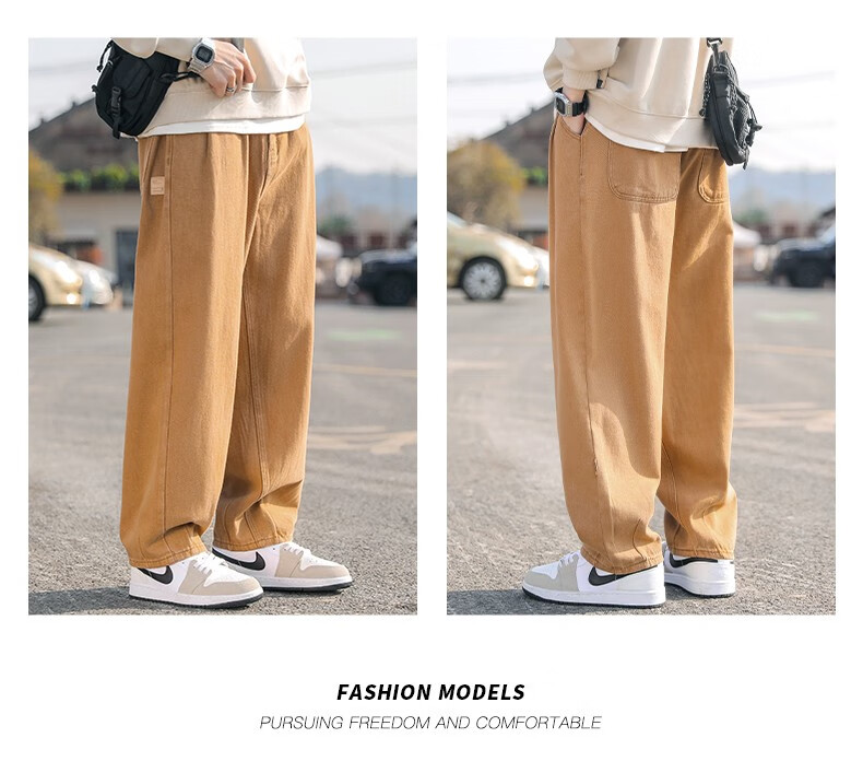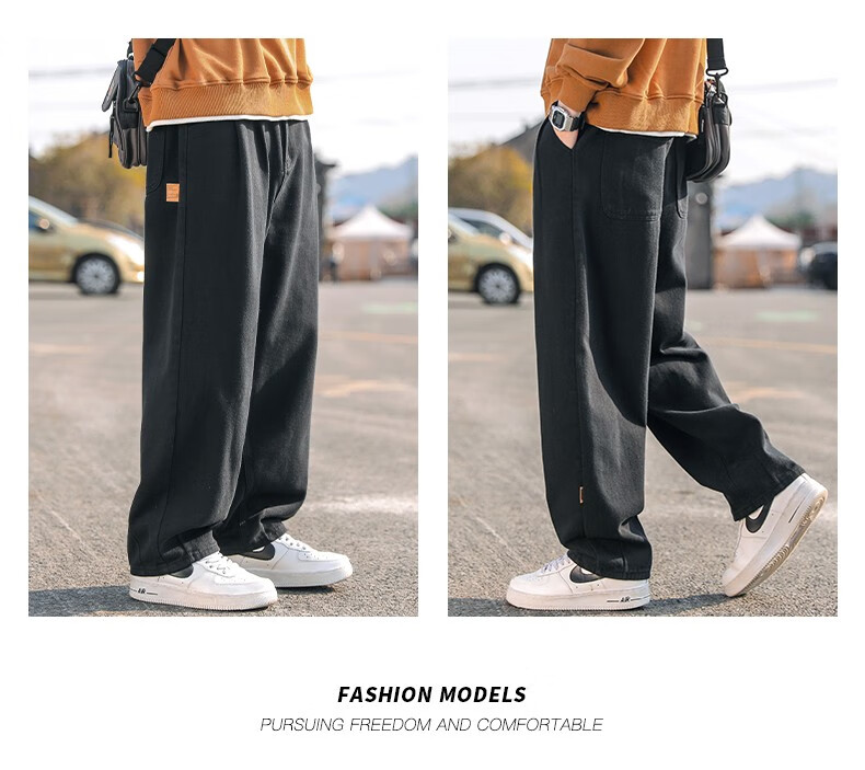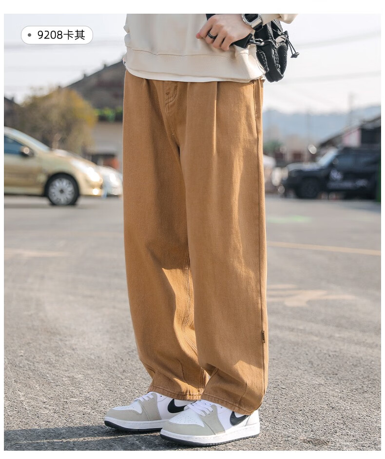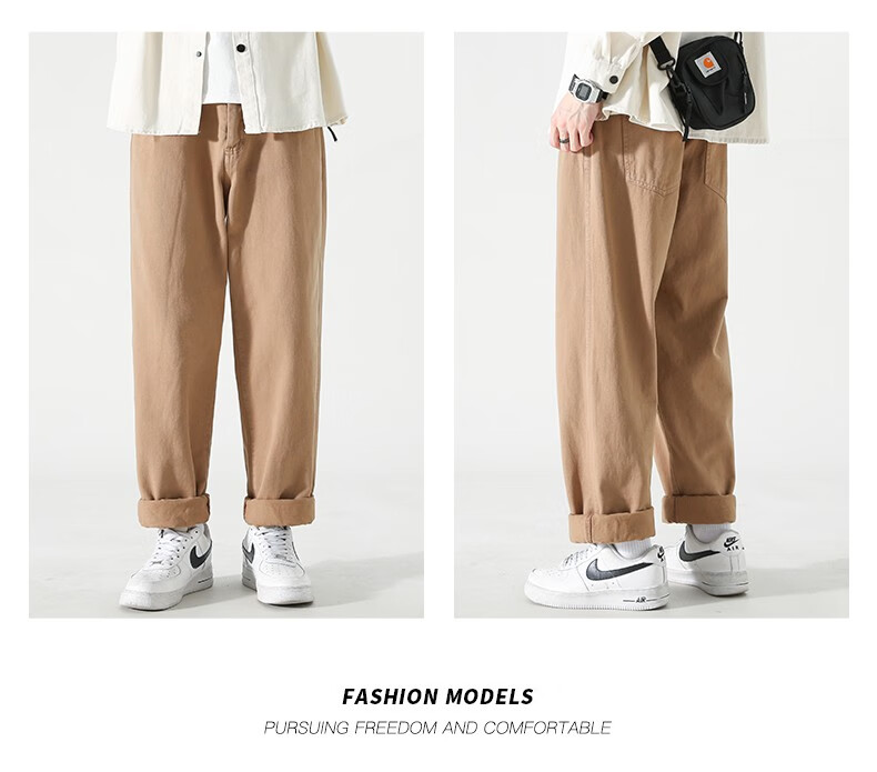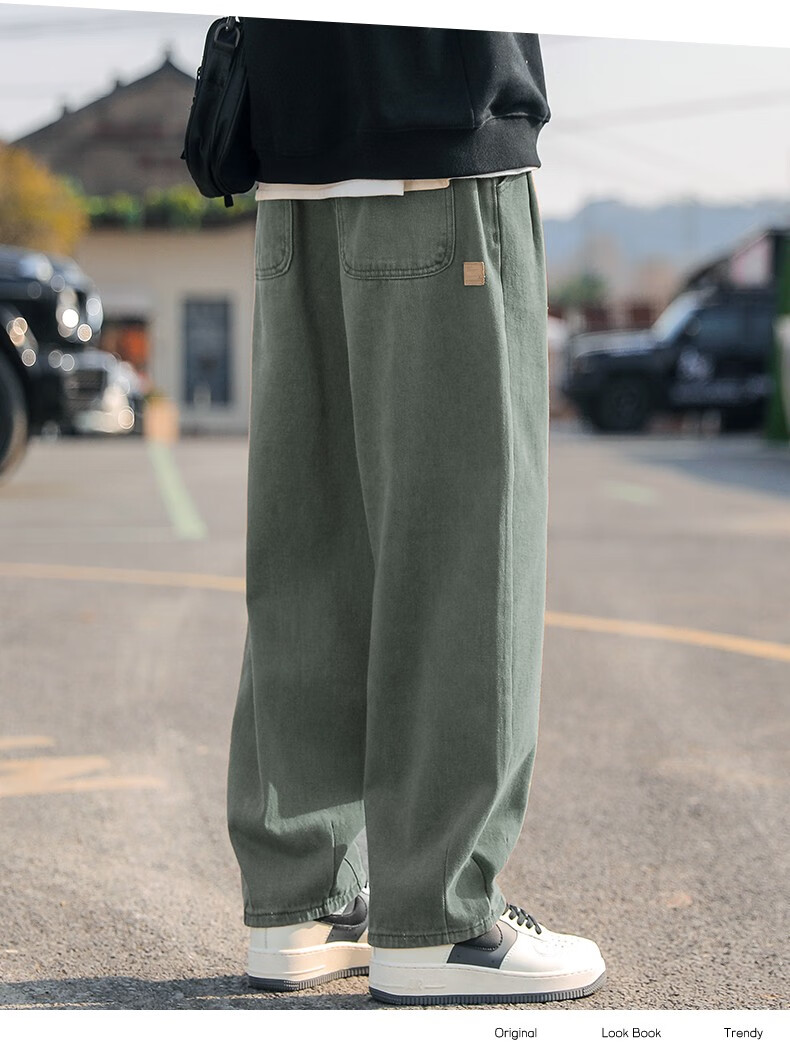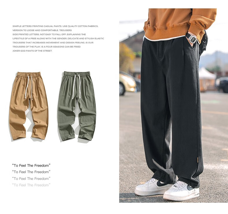 FOG SKY pants men's summer, autumn and winter straight-leg pants for boys trendy brand wide-leg pants American overalls loose casual pants for men A232-HK9208 military green L (recommended 115-135Jin Jin equals 0.5 kg)
