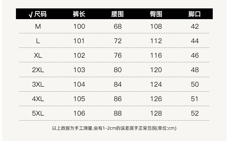 Outseam (cm) 99 cm 101.5 cm 104 cm 106.5 cm 109 cm