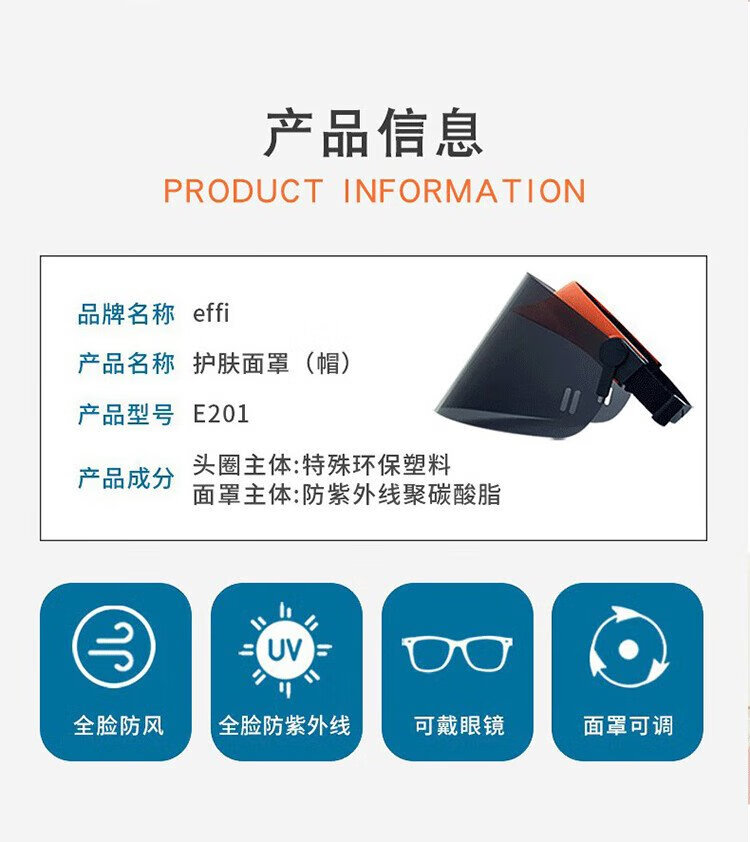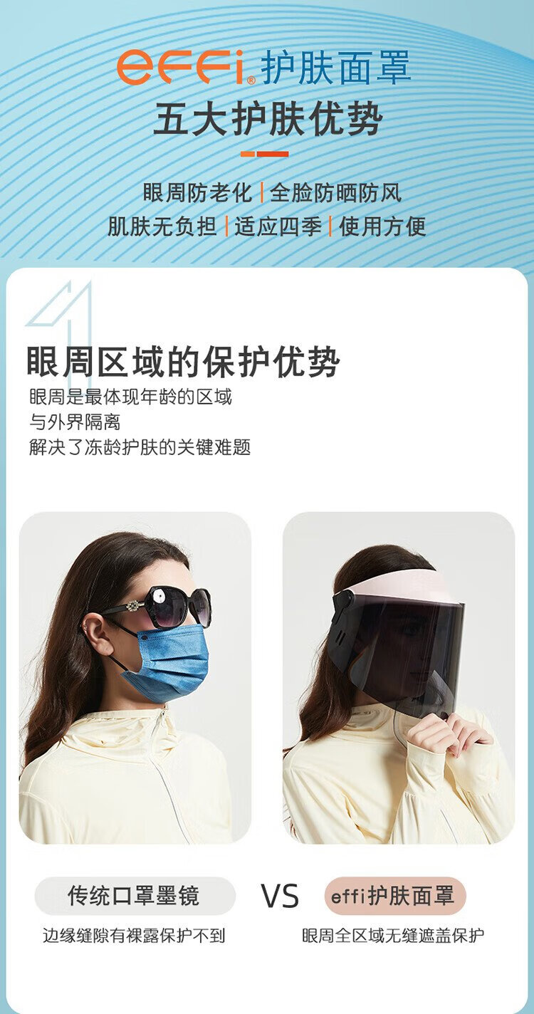 Effi full face windproof face cover anti-ultraviolet sunscreen face mask sun hat outdoor riding driving fishing mask for men and women light blue