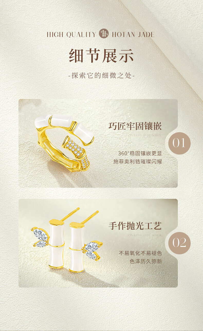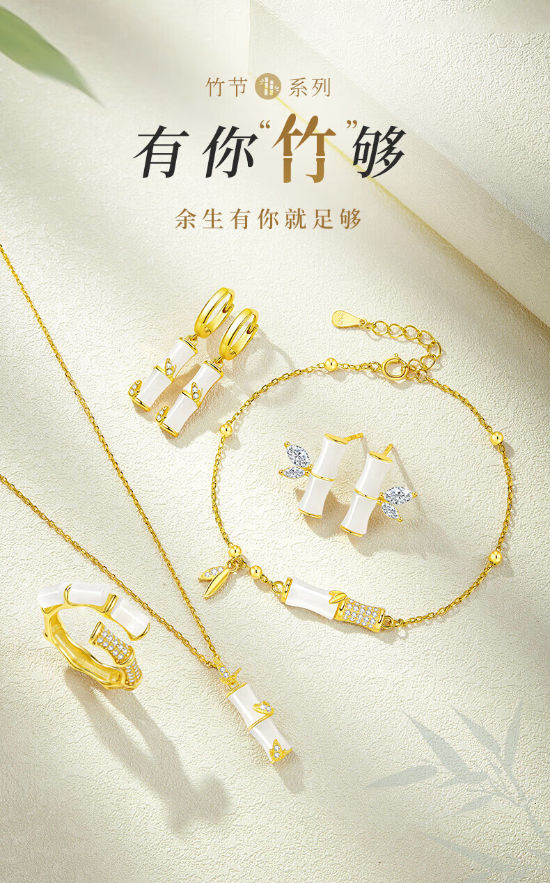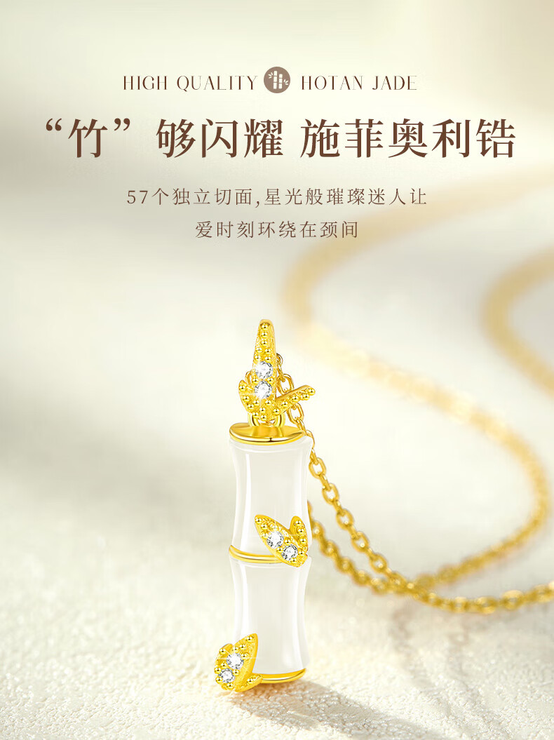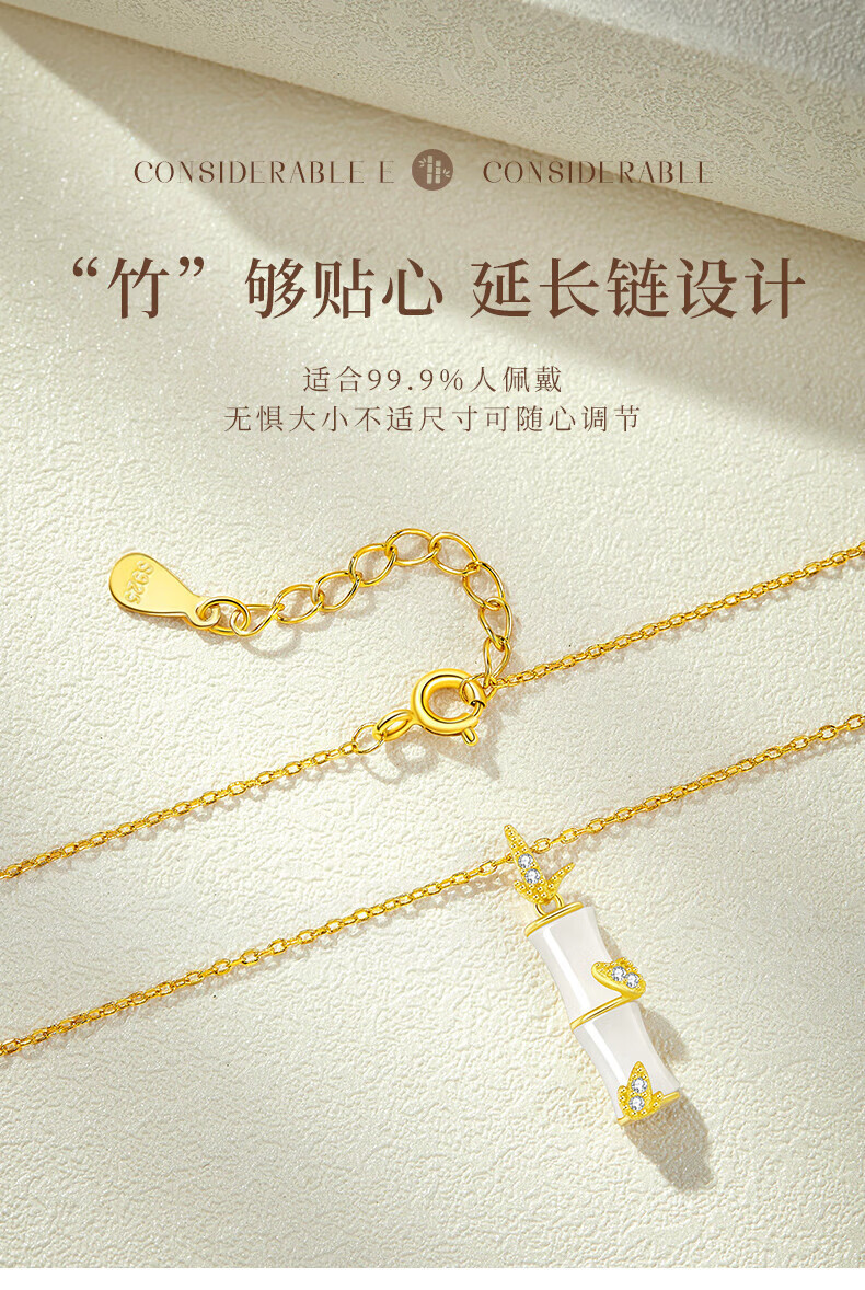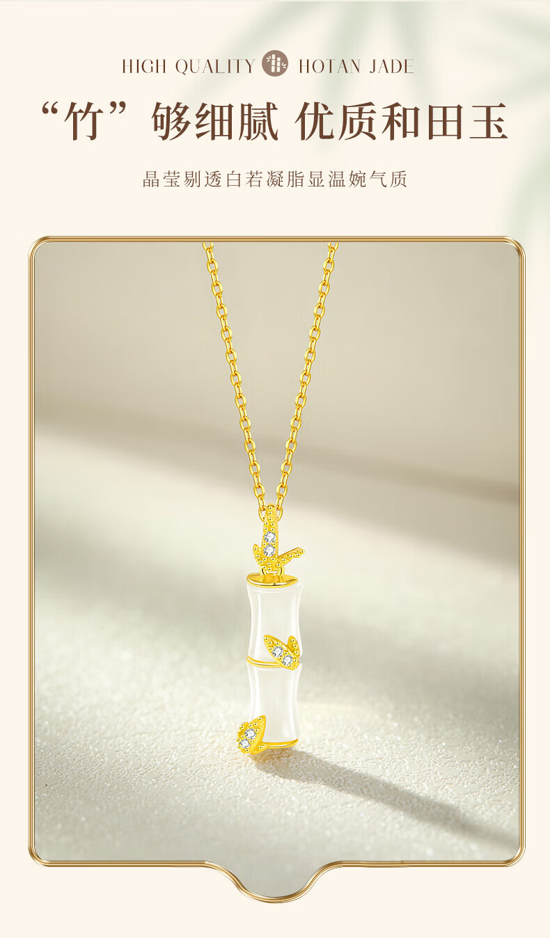 Ji Sifan's Light Luxury Bamboo Enough for You Hetian Jade Necklace Women's Fashion Jewelry Collarbone Valentine's Day New Year's Birthday Gift for Girlfriend Zhizhu Four-piece Set