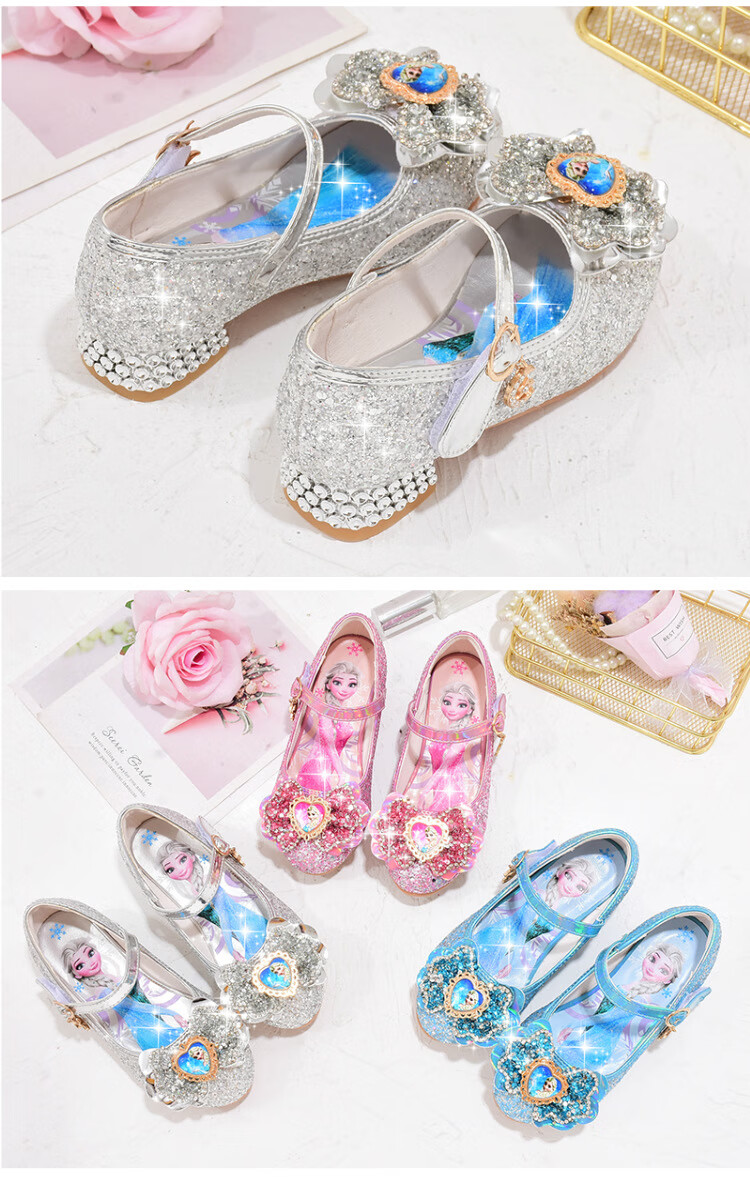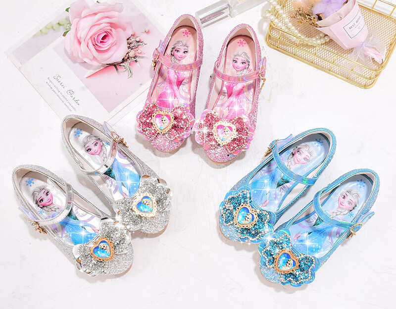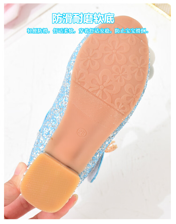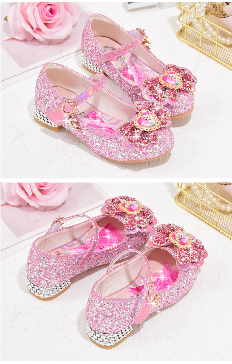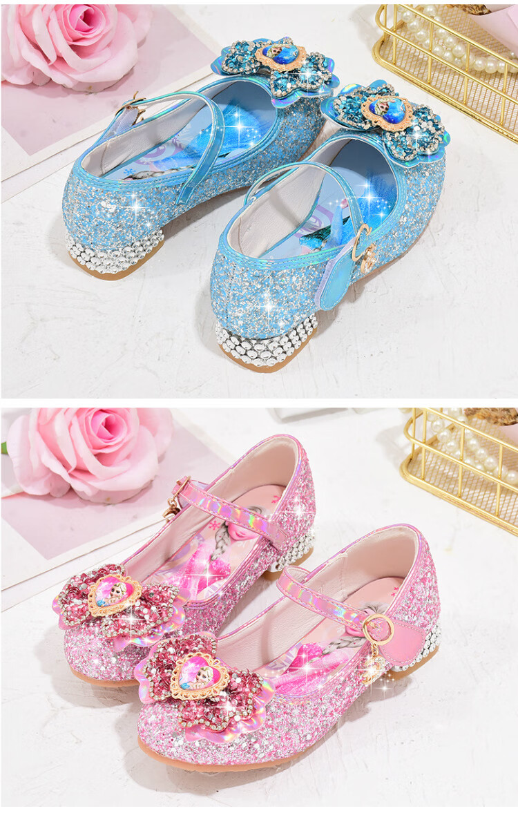 Yunyouli (yunyouli) Aisha Princess Shoes Spring and Autumn New Little Girls High-heeled Crystal Shoes Bow Pink Blue Leather Shoes Children's Shoes Pink Size 29 Inner Length 18.8 cm