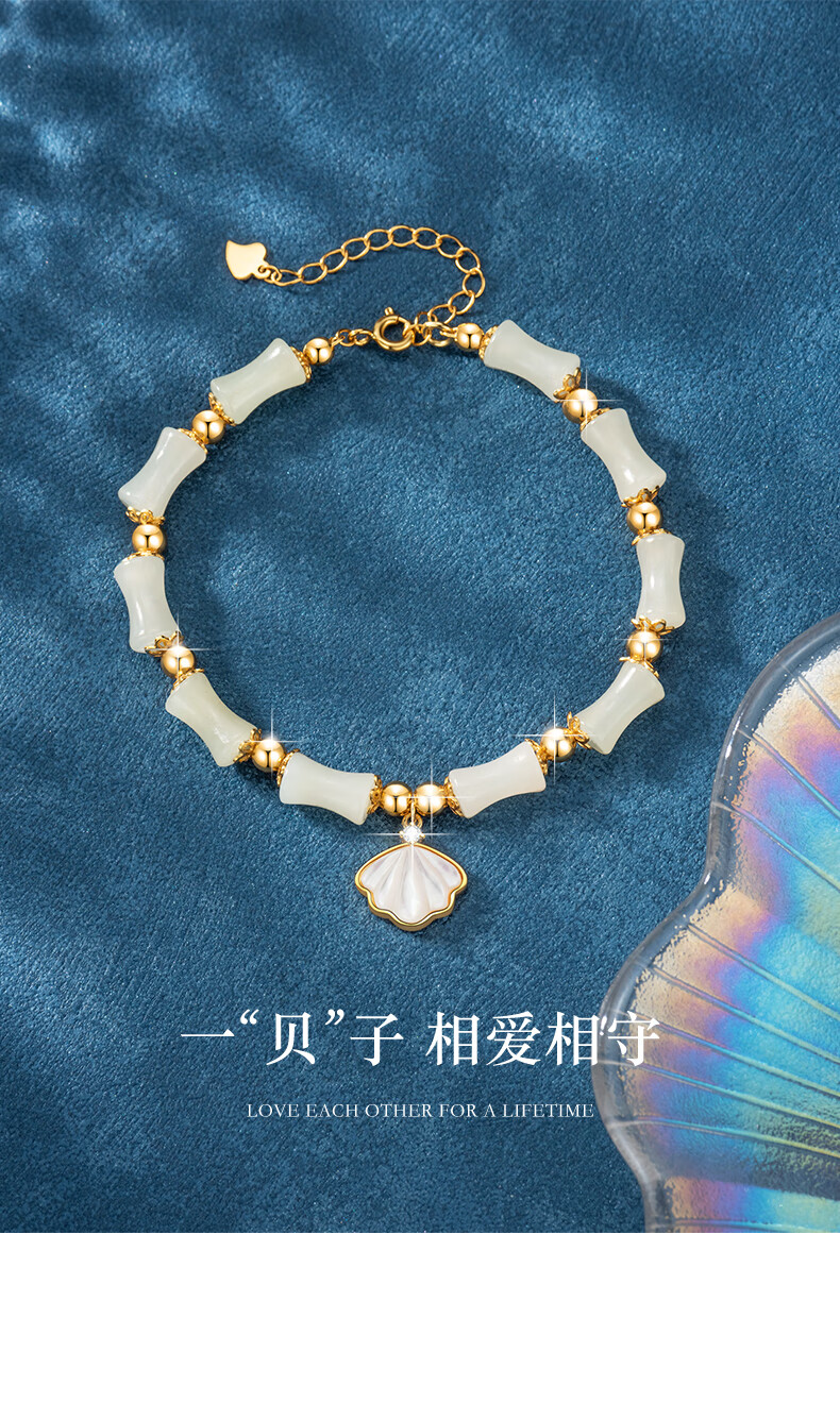 Ji Sifan Light Luxury Hotan Jade One Beiko Bracelet Women's Necklace Memorial Day Valentine's Day Birthday Gift for Girlfriend Wife Hotan Jade One Beiko Bracelet for You Bamboo