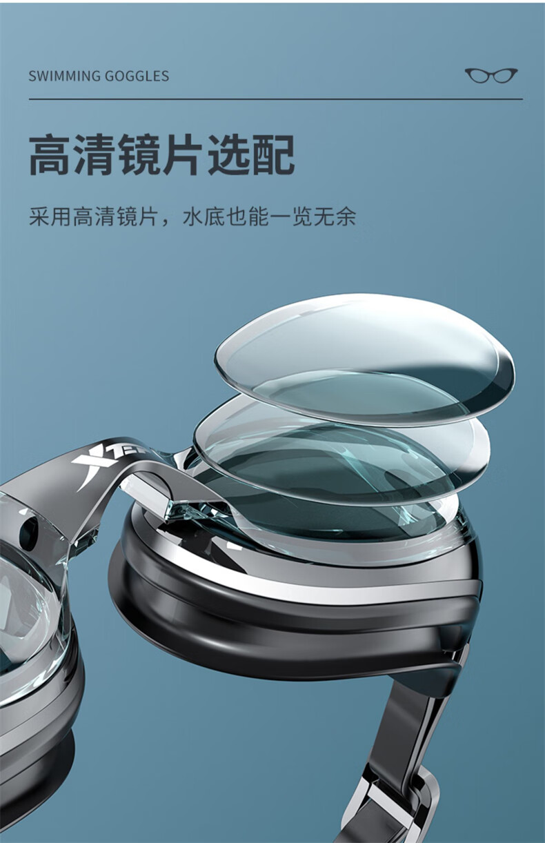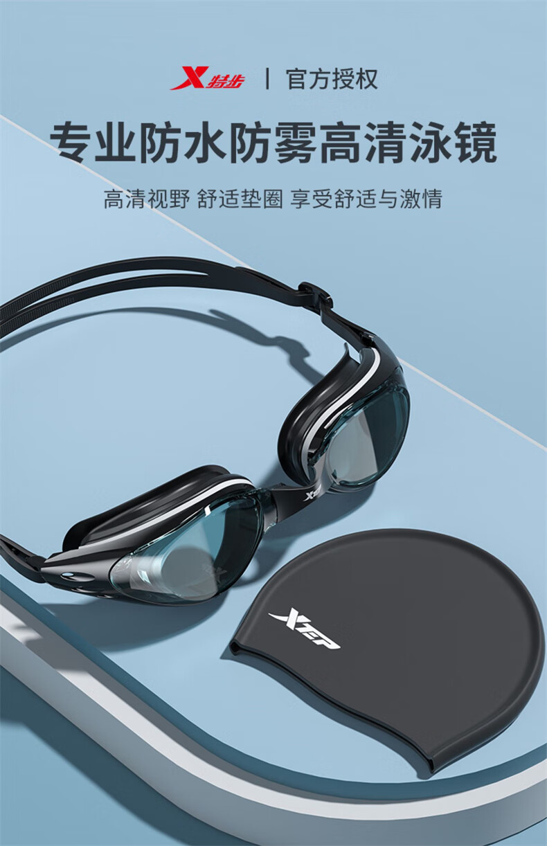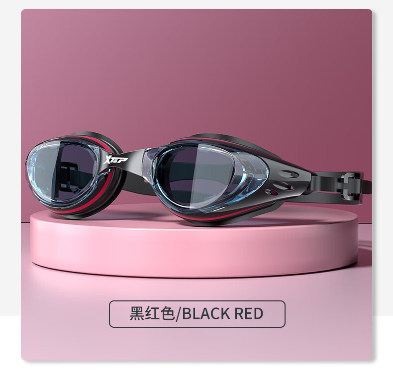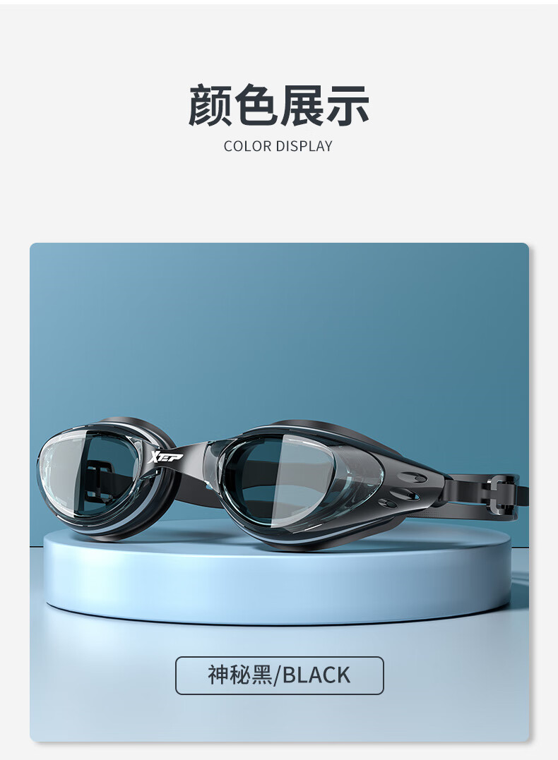 XTEP swimming goggles high-definition waterproof and anti-fog myopia degree swimming goggles for men and women adult professional diving and swimming equipment classic black flat light without myopia