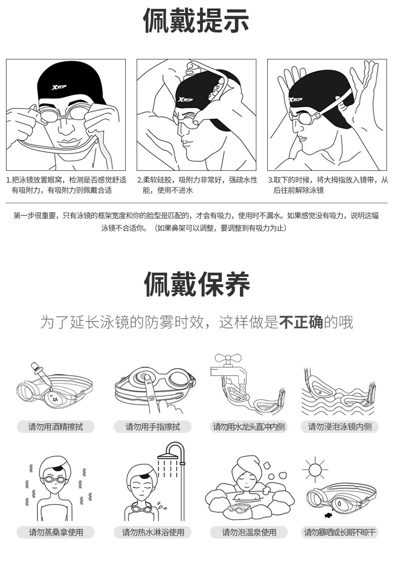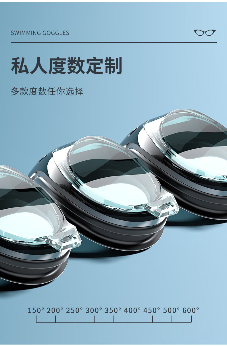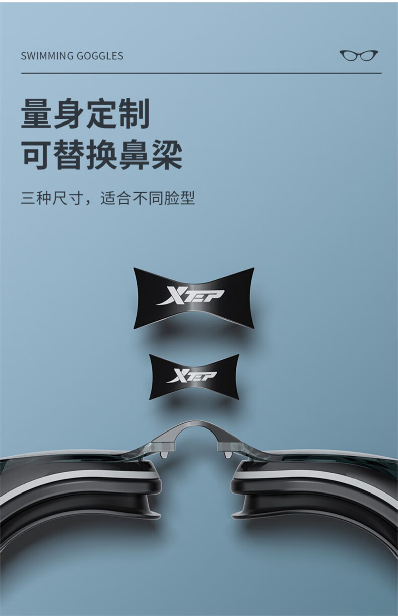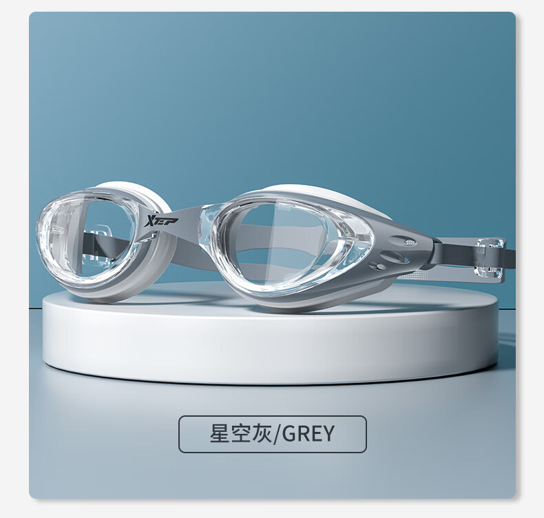 XTEP swimming goggles high-definition waterproof and anti-fog myopia degree swimming goggles for men and women adult professional diving and swimming equipment classic black flat light without myopia
