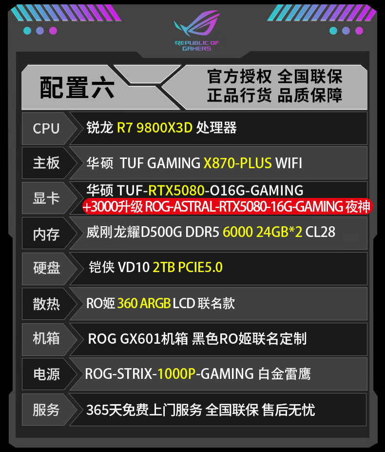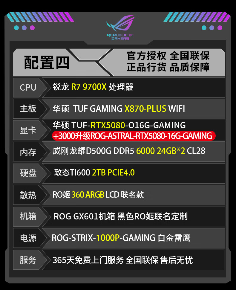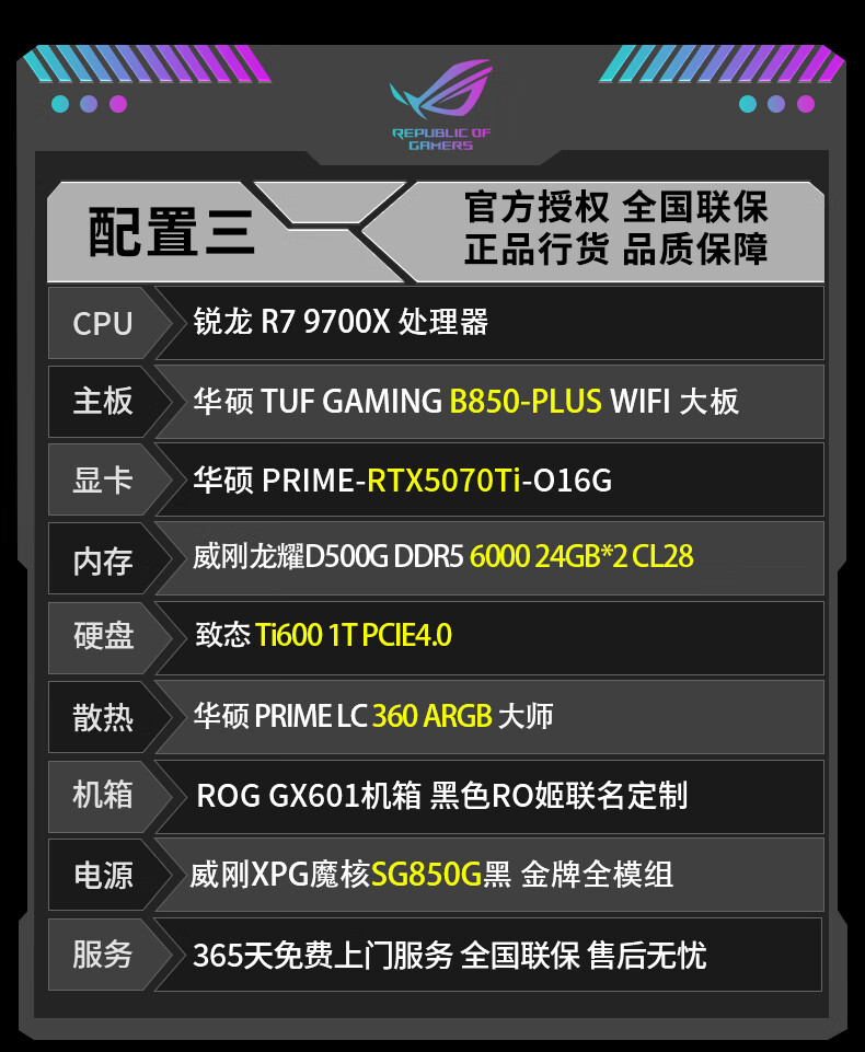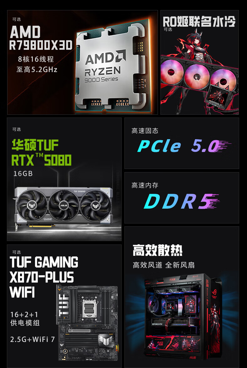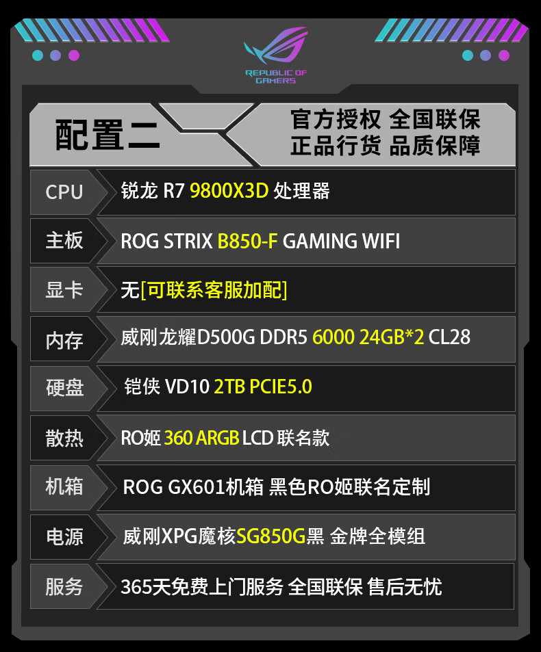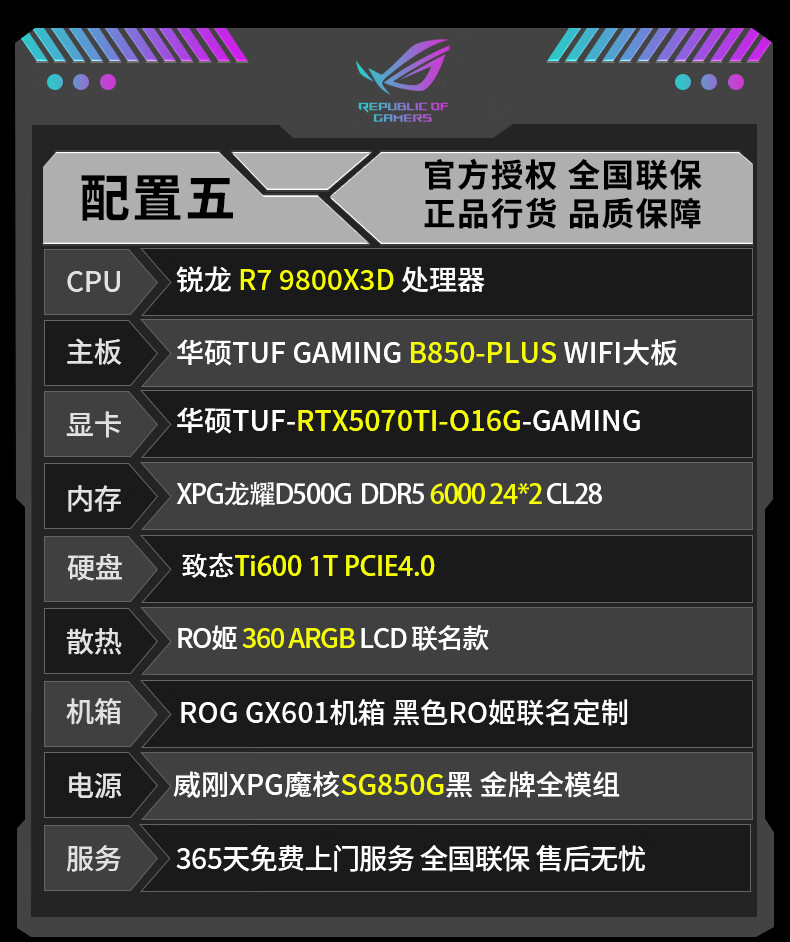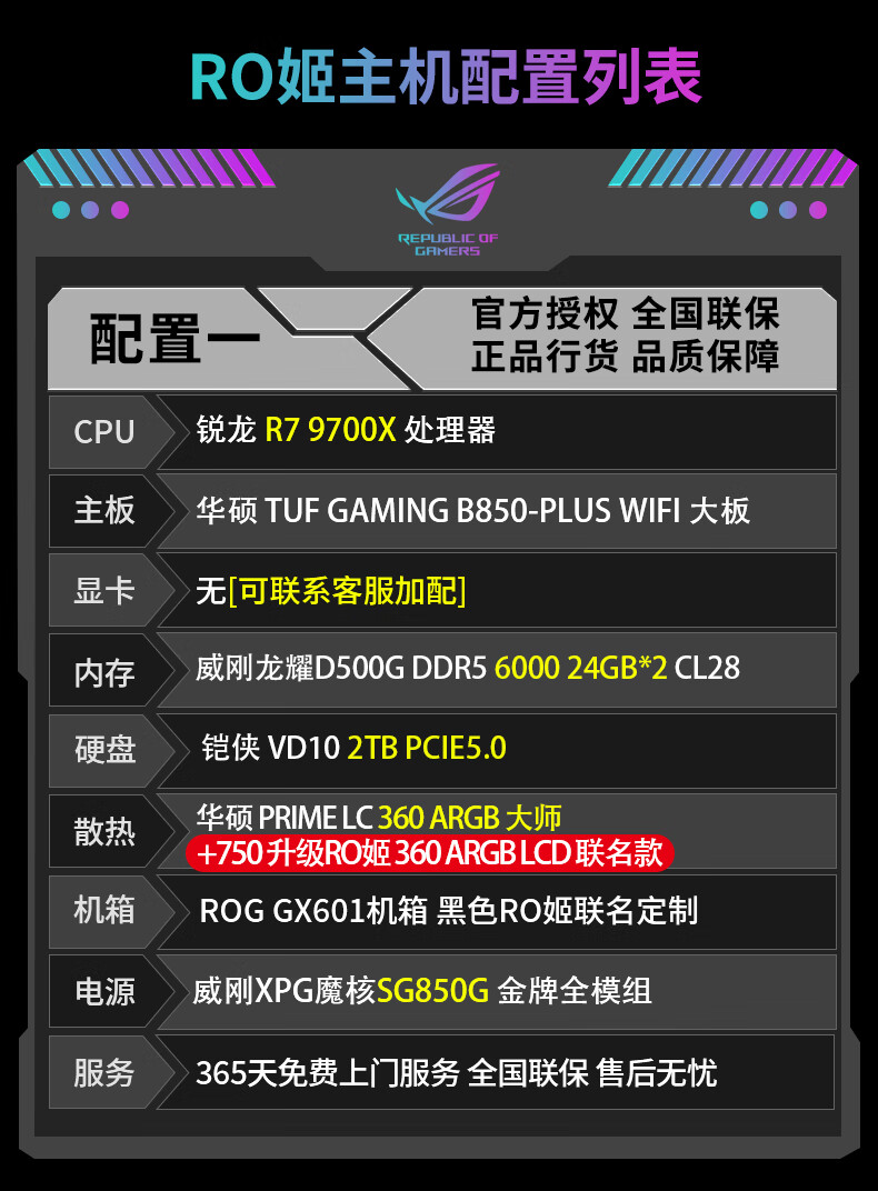 ASUS ROG family bucket AMD Ryzen 9700X R7 9800X3D/RTX5070/RTX5080 graphics card Helios 601RO Ji DIY complete machine assembly computer host Configuration 2 R7 9800X3D/no graphics card Consult for options