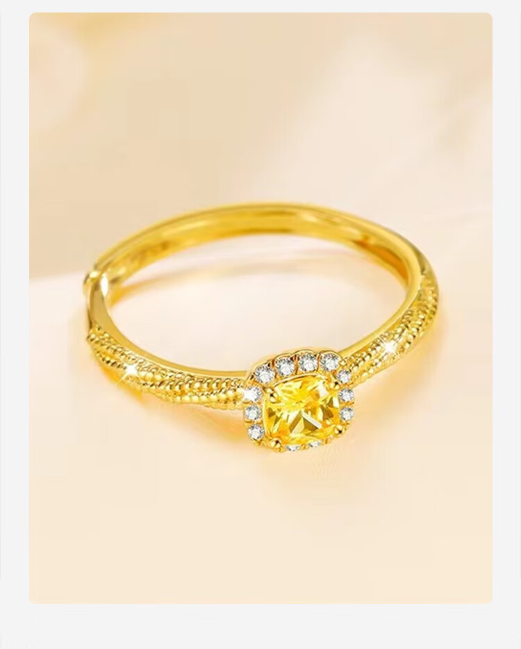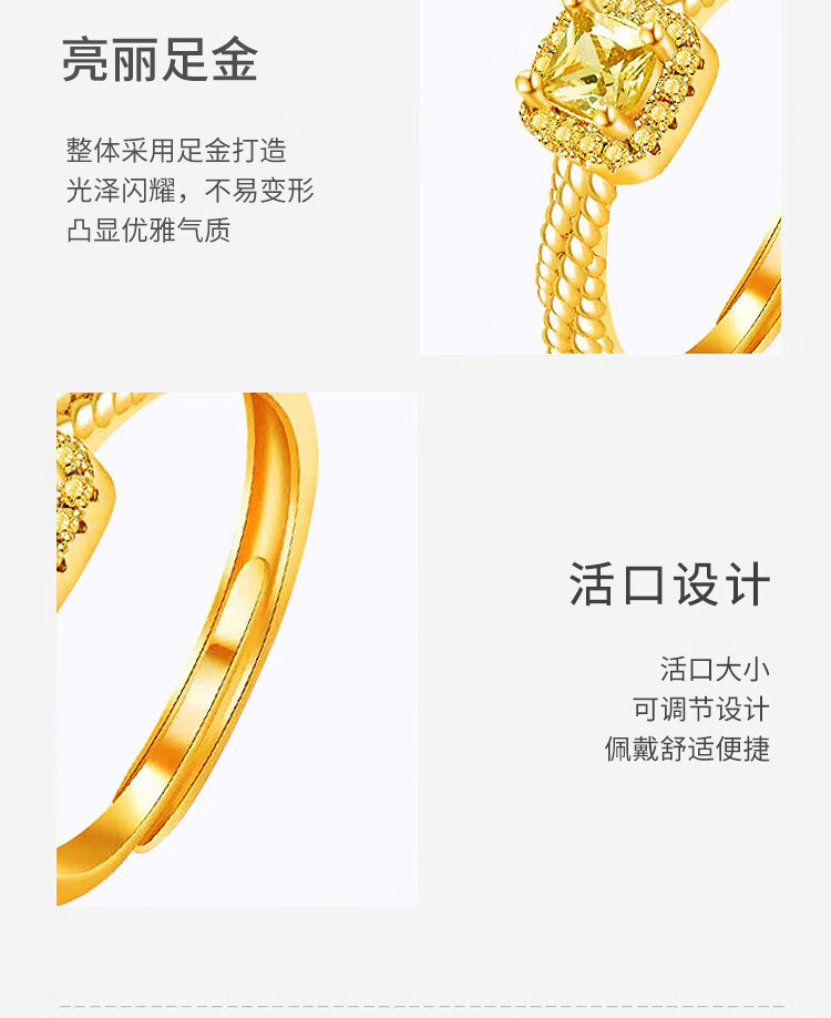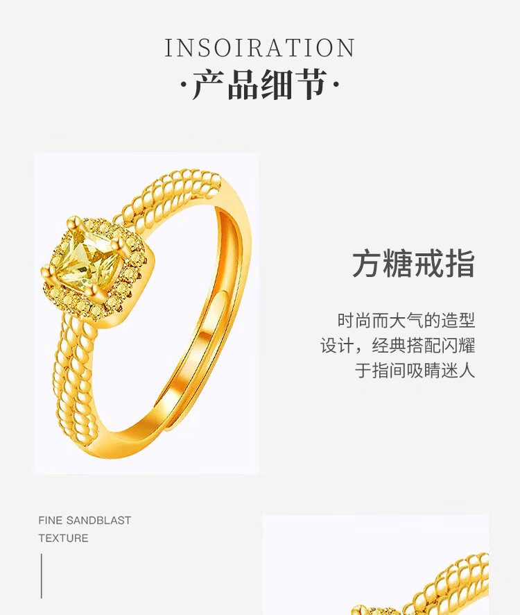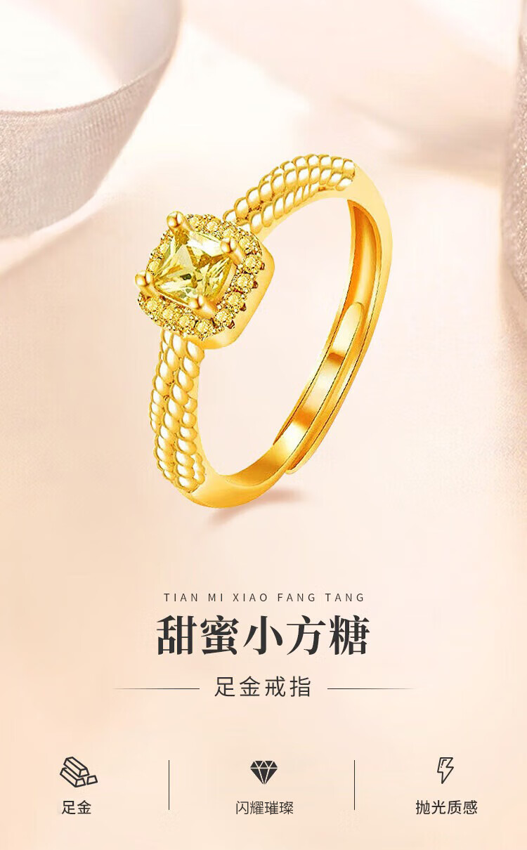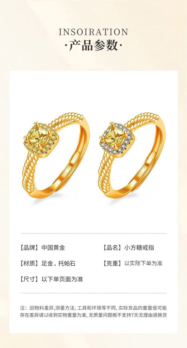 CHINA GOLD Small Sugar Cube Gold Ring Women's Adjustable Pure Gold Ring Gold Bracelet Wedding and Mid-Autumn Festival Gift for Wife and Girlfriend Today/Next Day Delivery Small Sugar Cube Ring Type A - White About 2.5g