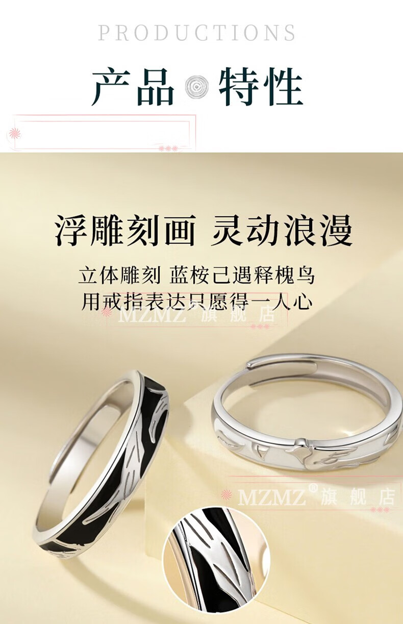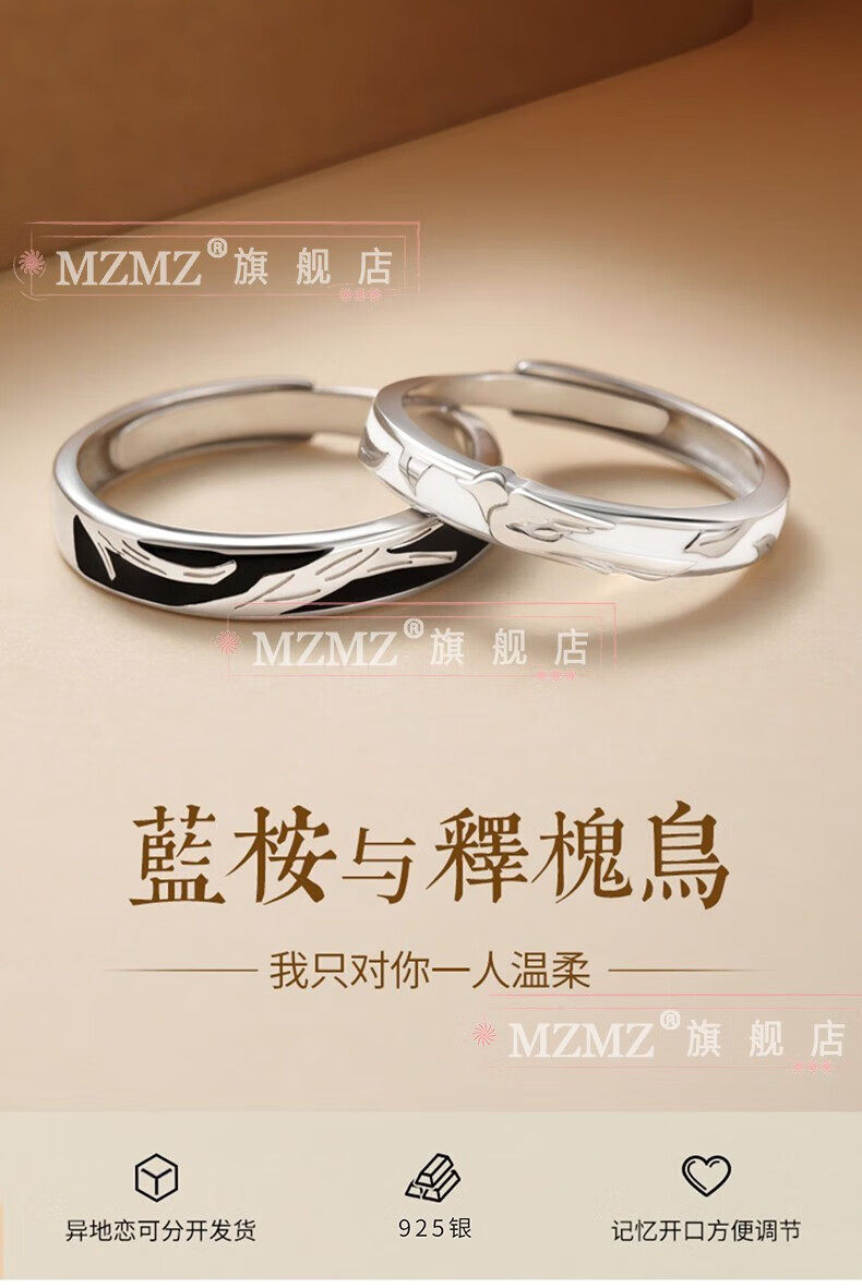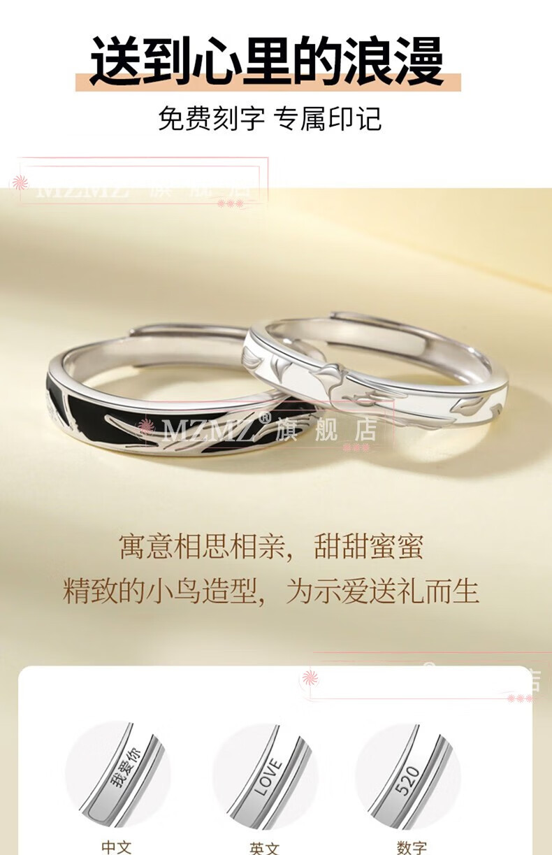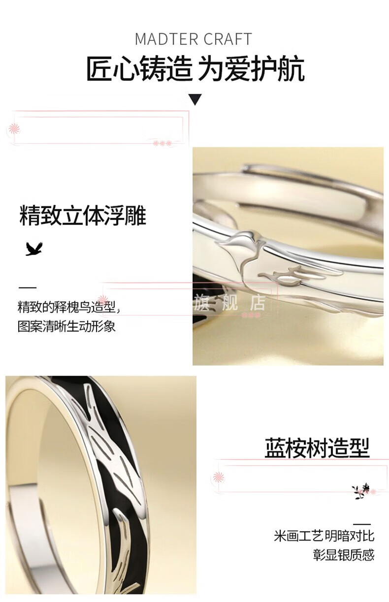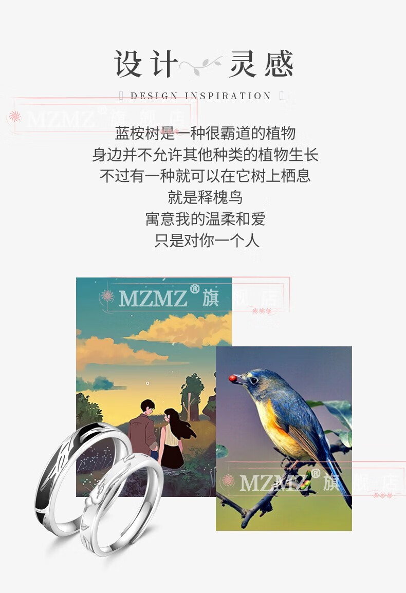 MZMZ Eucalyptus globulus has met Sophora japonica and bird couple ring PT950 platinum adjustable pair of rings for birthday gift to girlfriend, couple ring, exquisite gift box