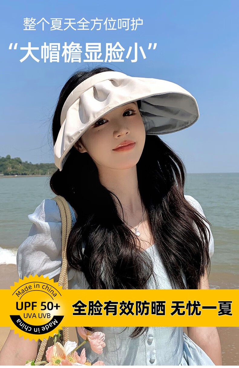 Pull back sun protection hat for women, sun protection, UV protection, summer fisherman hat, foldable shell hat, fashionable empty top sun hat, light beige, one size fits all