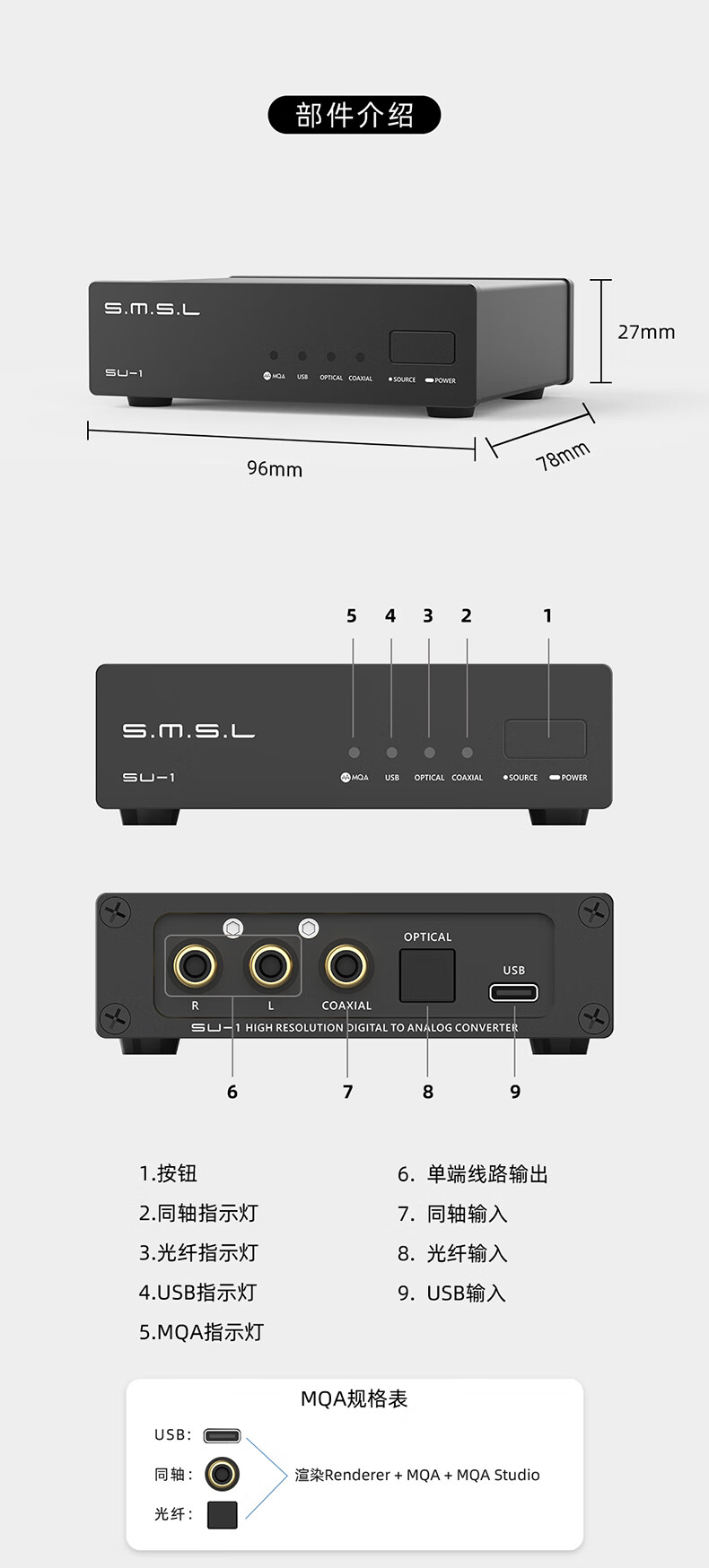 SMSL Shuangmu Sanlin SU1 audio decoder dac decoding fever hifi decoding DSD512 MQA black black standard