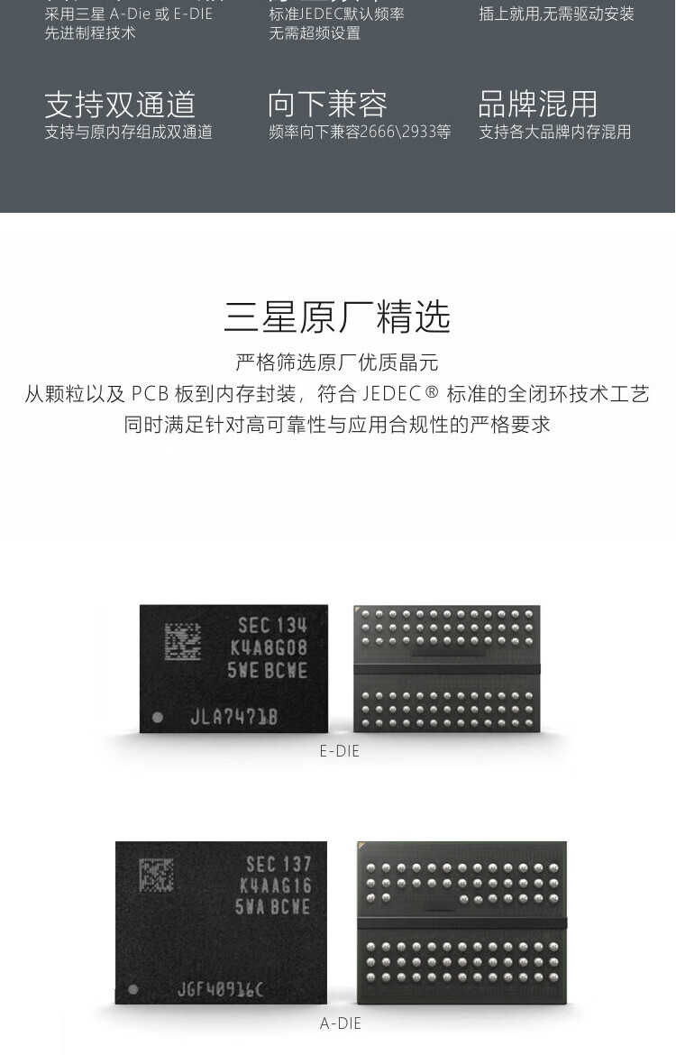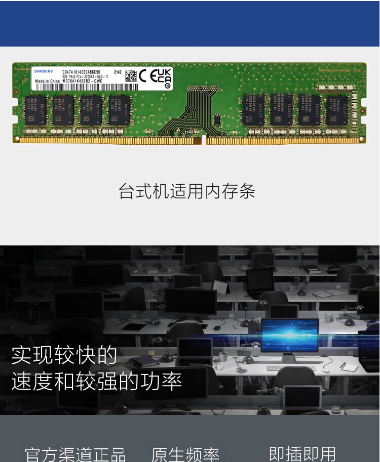Samsung (SAMSUNG) desktop memory 16G 32G DDR4 3200 4th generation original desktop computer running memory, suitable for Dell, Asus, HP, Acer, Lenovo Shenzhou and other brands Samsung DDR4 3200 desktop memory 8GB 1