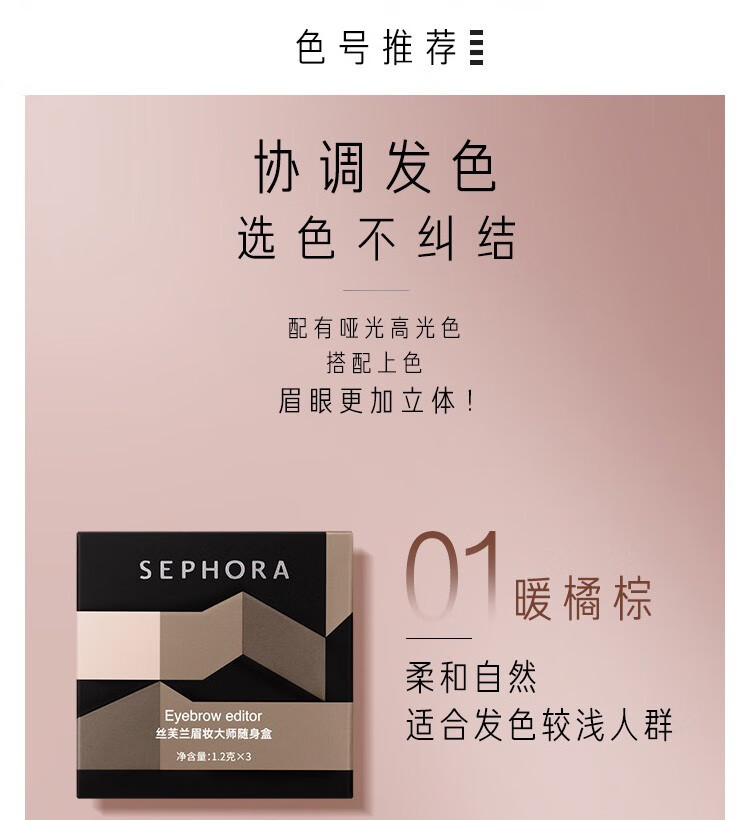 SEPHORA Eyebrow Master Portable Box, Warm Orange Brown, 1.2g*3 Special Offer