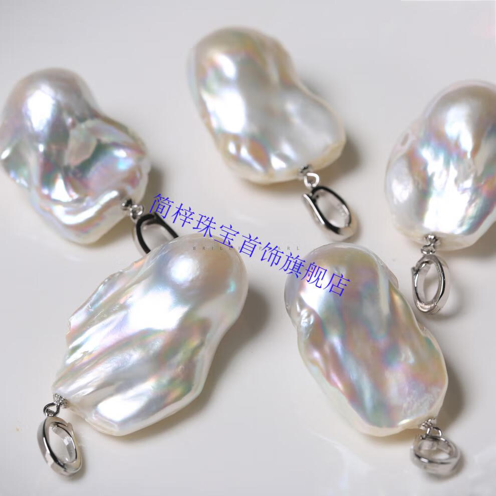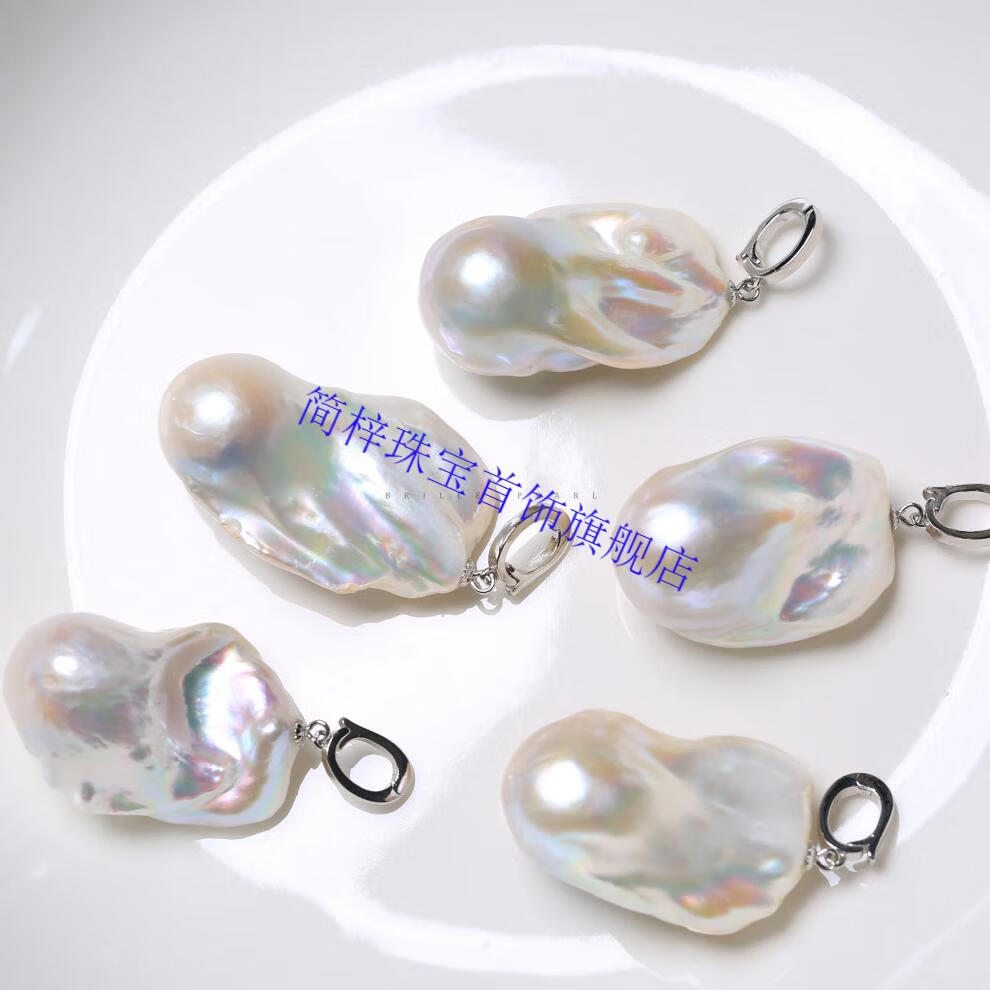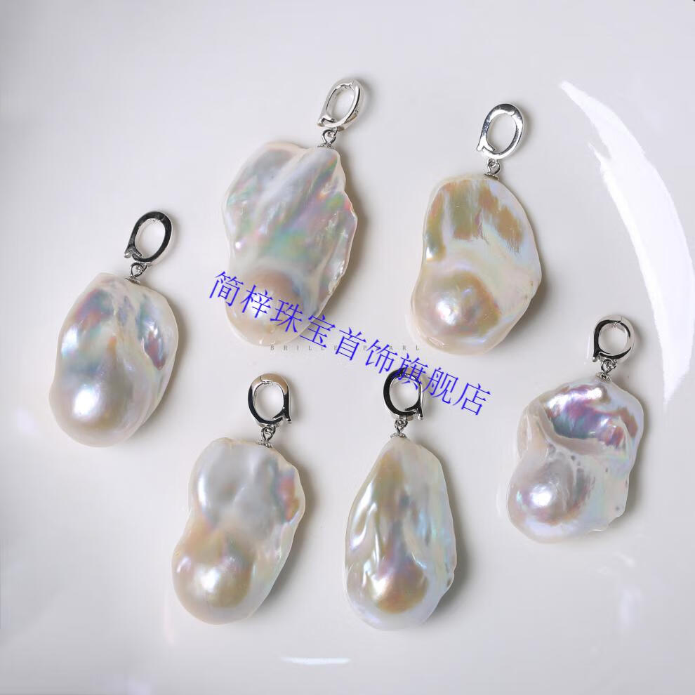Jianzi oversized necklace pendant natural freshwater pearl baroque special-shaped high-gloss white irregular European and American silver basically flawless on the front and slightly flawless on the back silver pendant