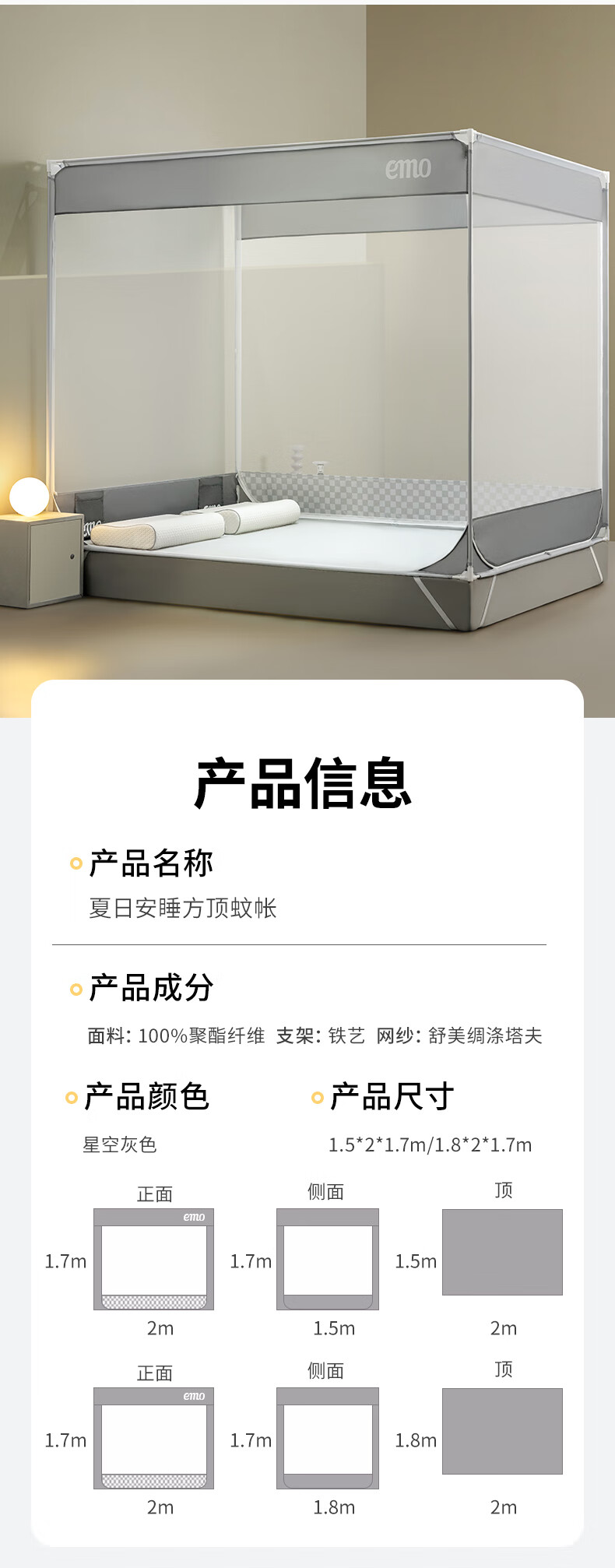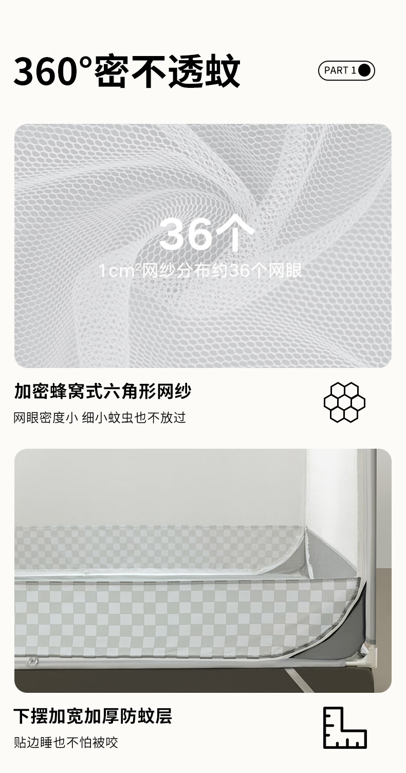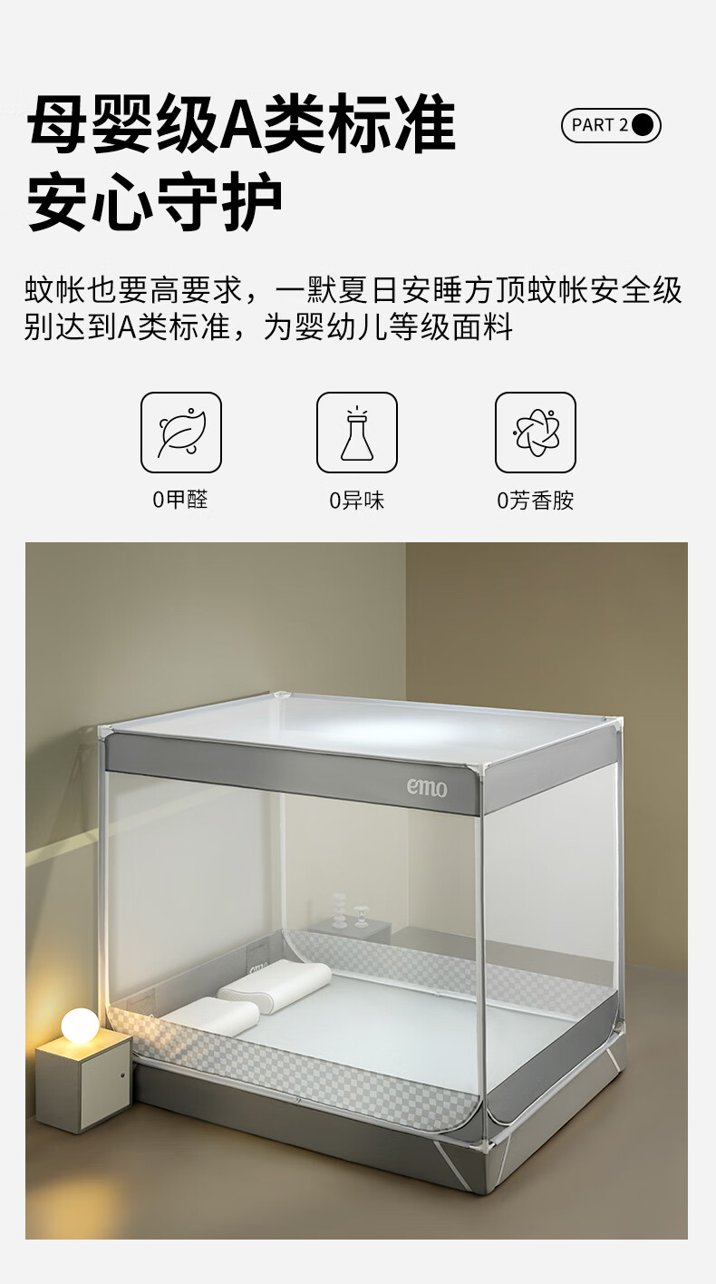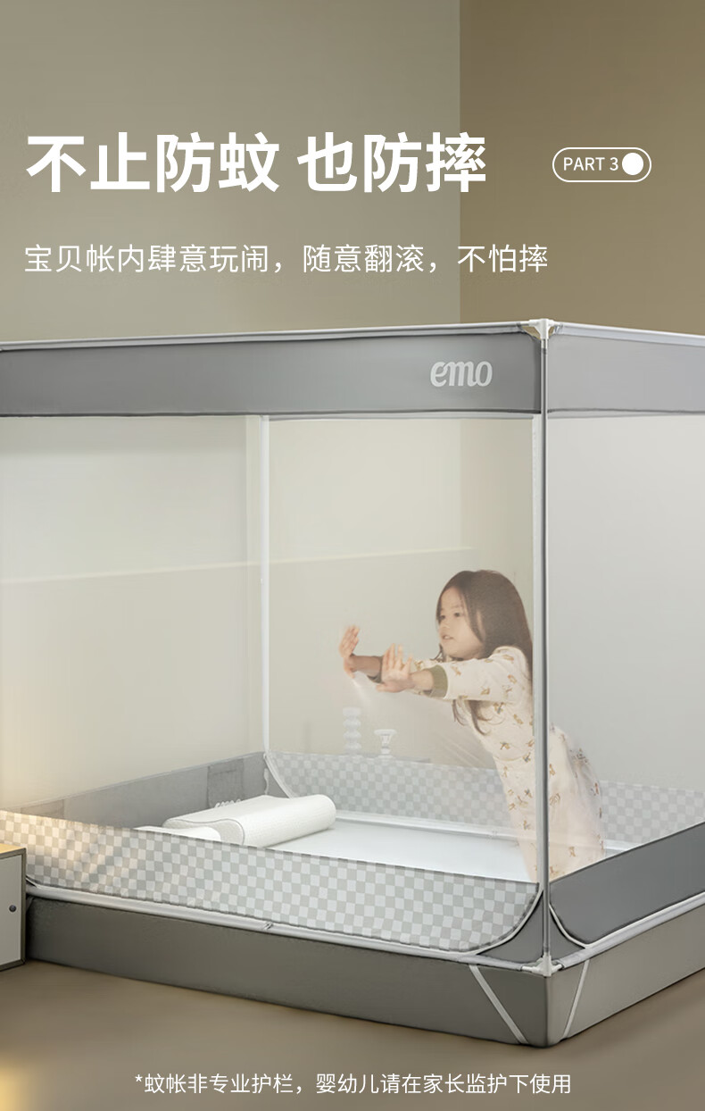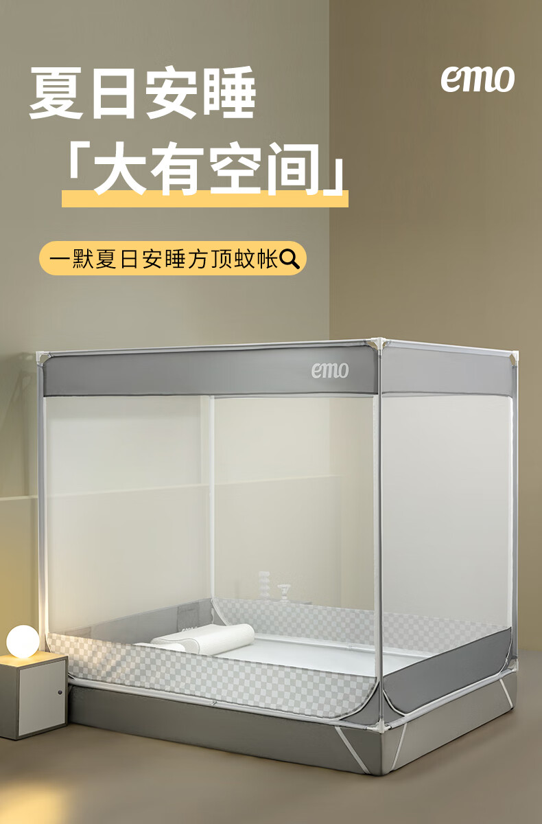 Yimo Square Top Mosquito-Free Household Mosquito Net for Bedroom and Dormitory Simple Installation Class A Infant and Child Anti-fall Mosquito Net Full Bottom Starry Sky Gray 120*200*170cm