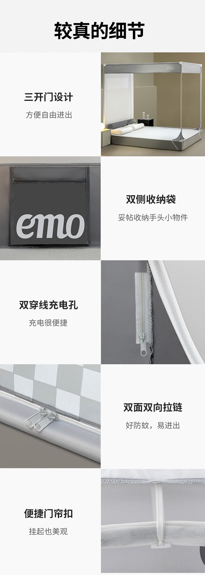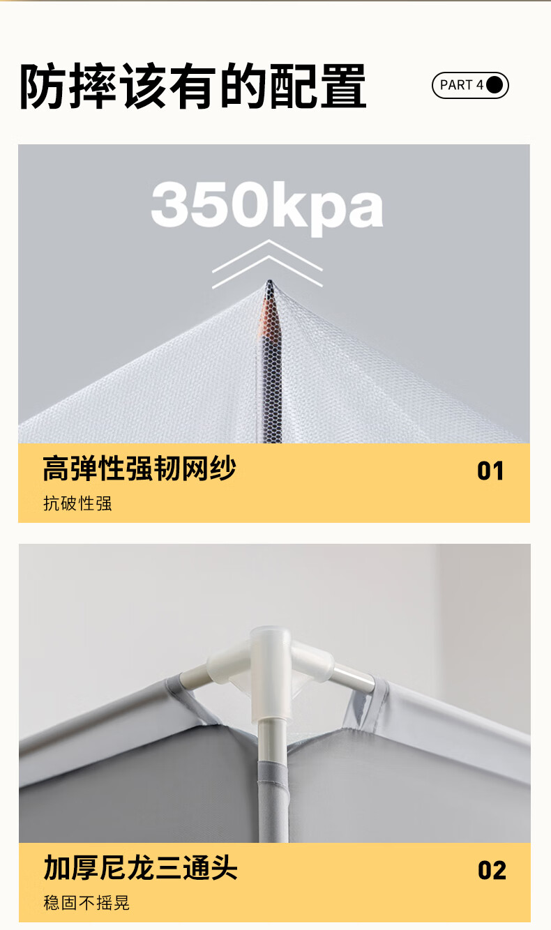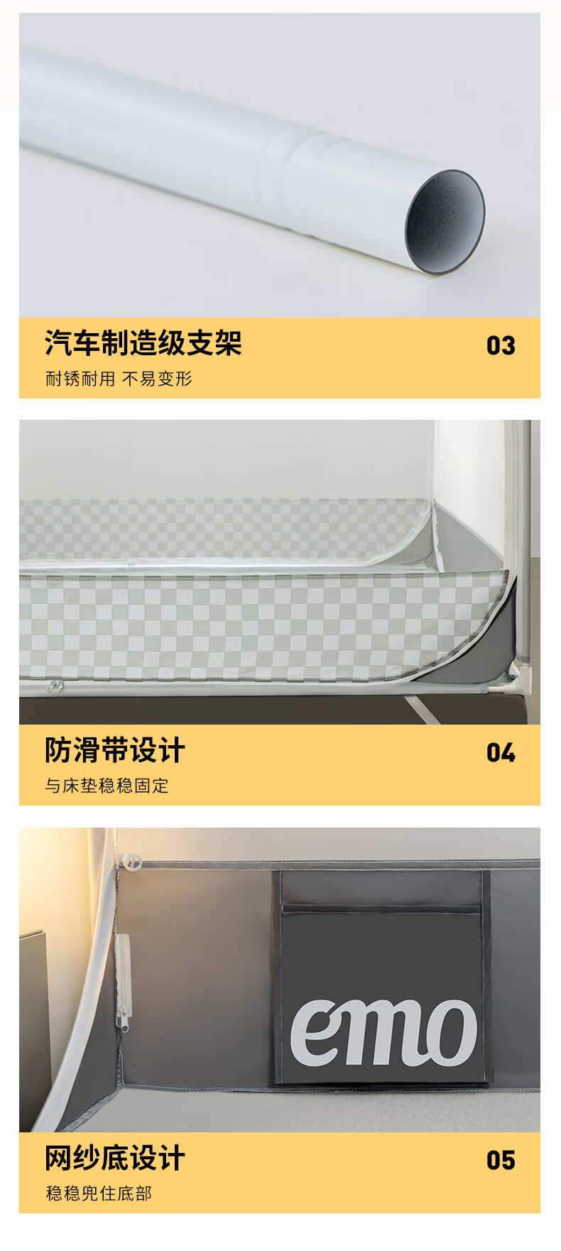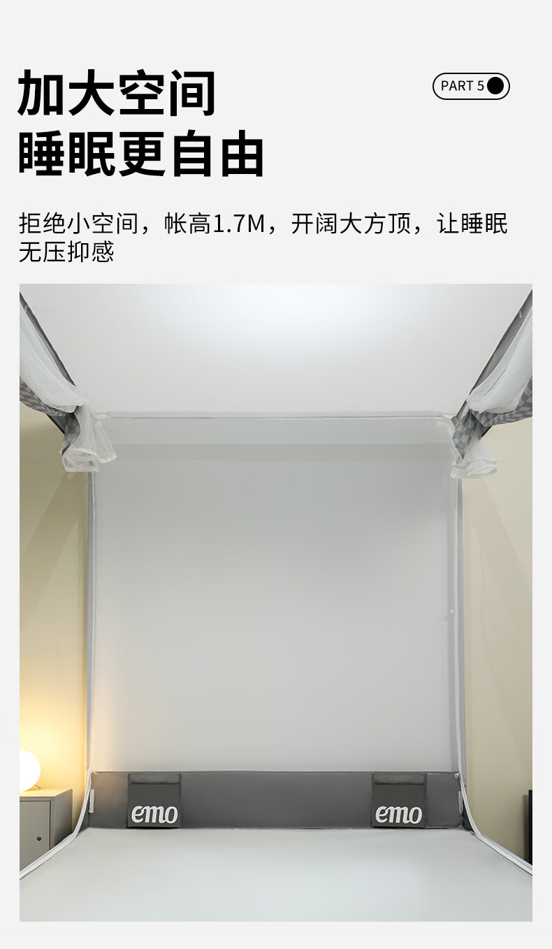 Yimo Square Top Mosquito-Free Household Mosquito Net for Bedroom and Dormitory Simple Installation Class A Infant and Child Anti-fall Mosquito Net Full Bottom Starry Sky Gray 120*200*170cm