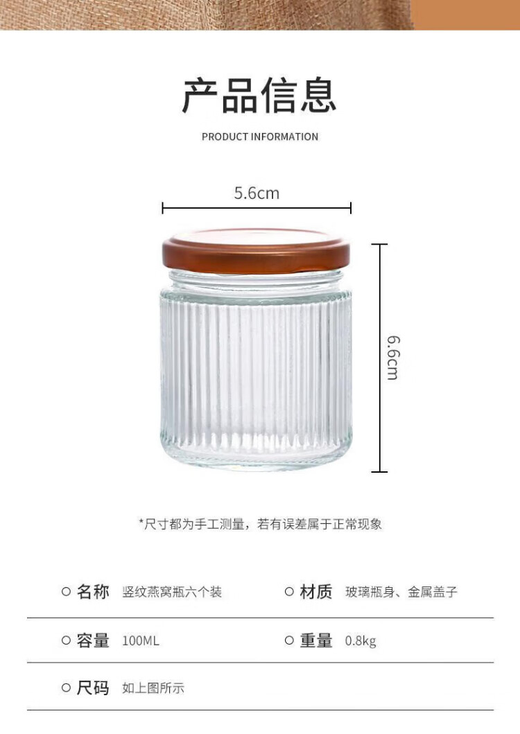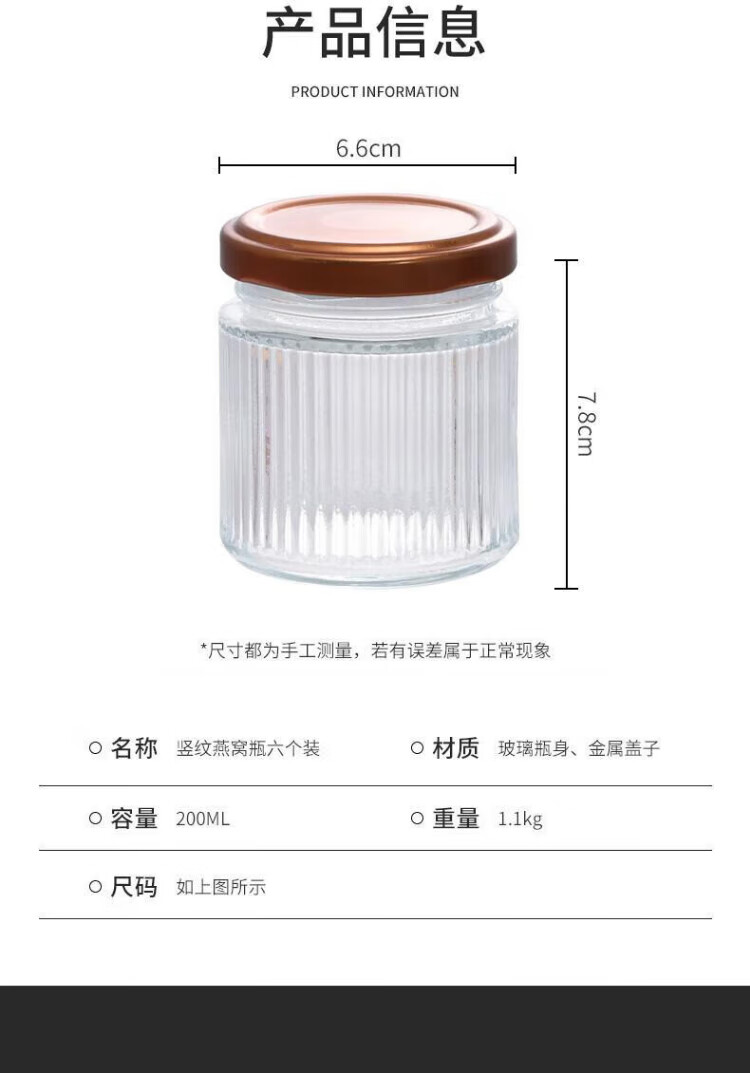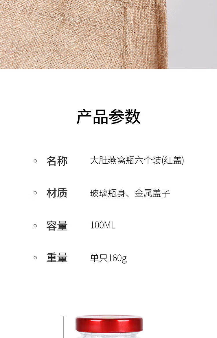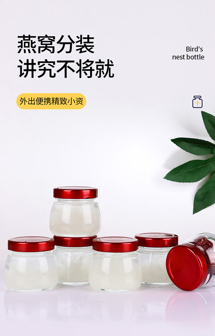 Baijie Bird's Nest Sub-Bottle Glass Sealed Jar Bird's Nest Stew Cup Sub-Bottle High Temperature Resistant Can Steam Fish Maw Isinglass Tremella Cup Big Belly Bird's Nest Bottle 100ml 6-piece Set