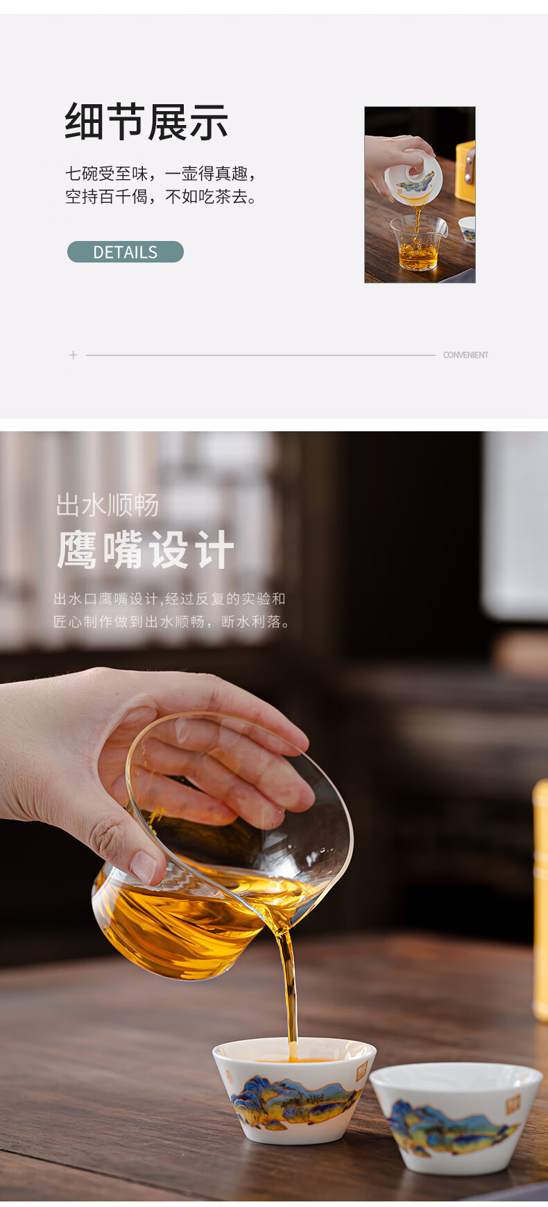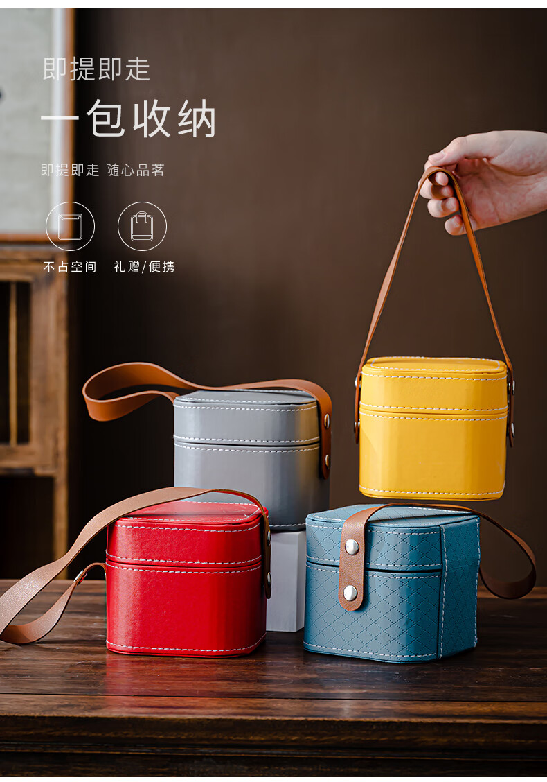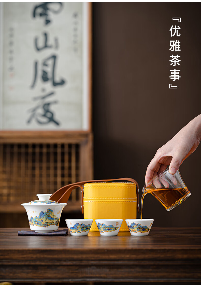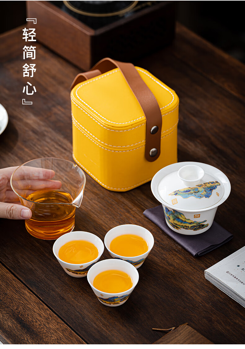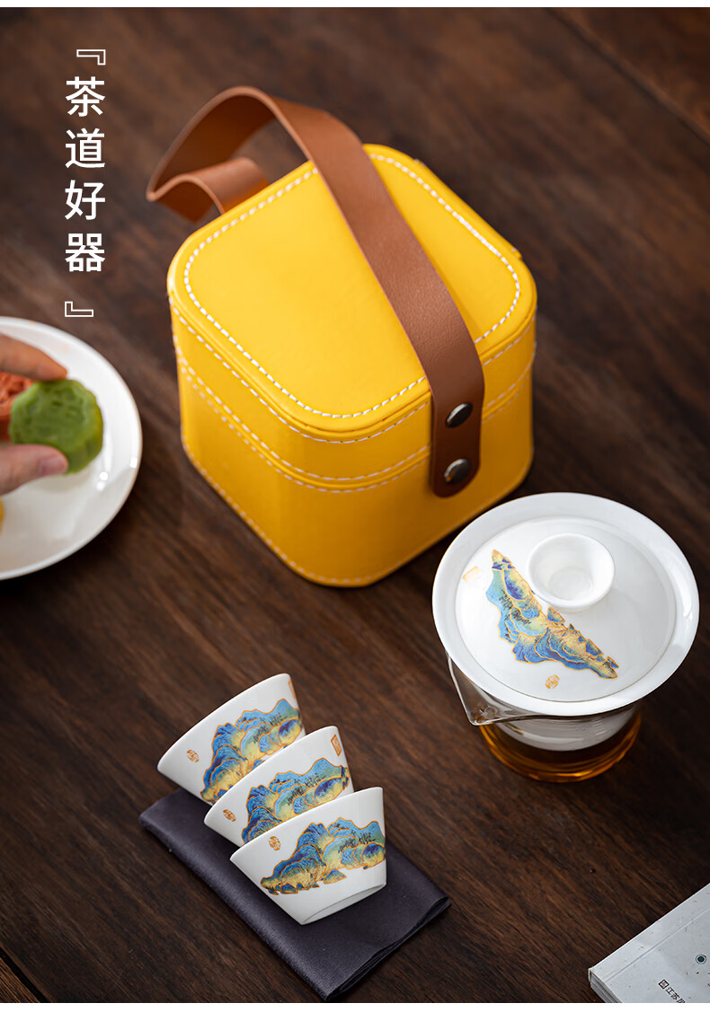 Mi Xiaoshu travel tea set portable ceramic cover bowl fair cup one pot three cups Teacher's Day gift birthday high-end Qianli Jiangshan set portable leather packaging