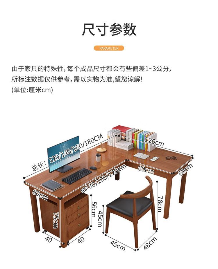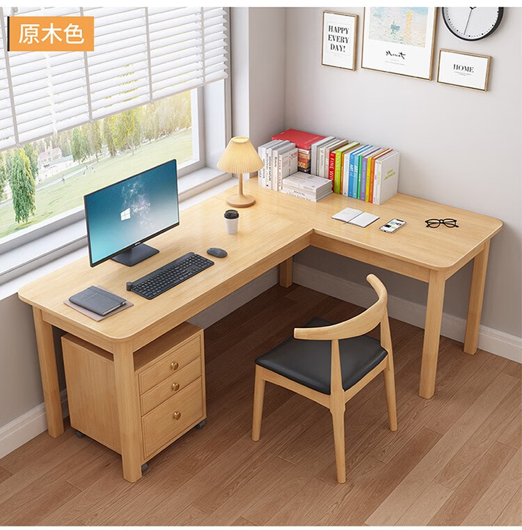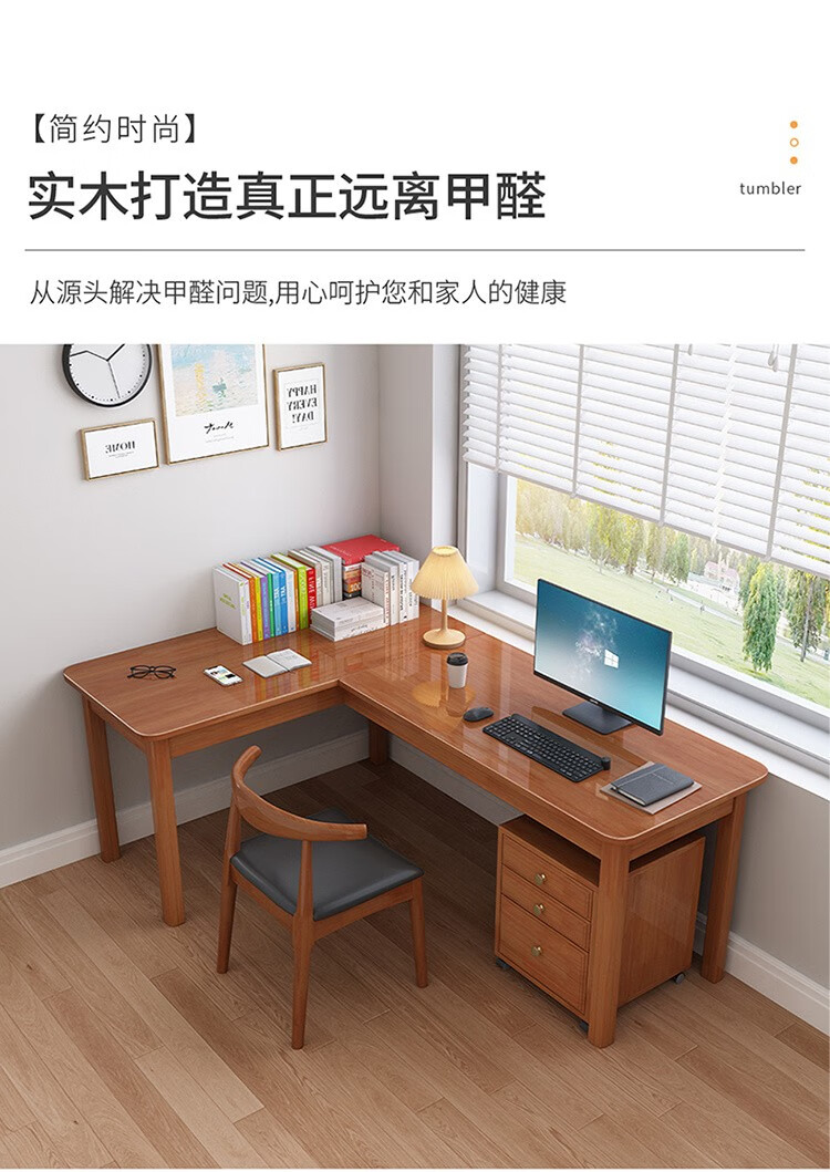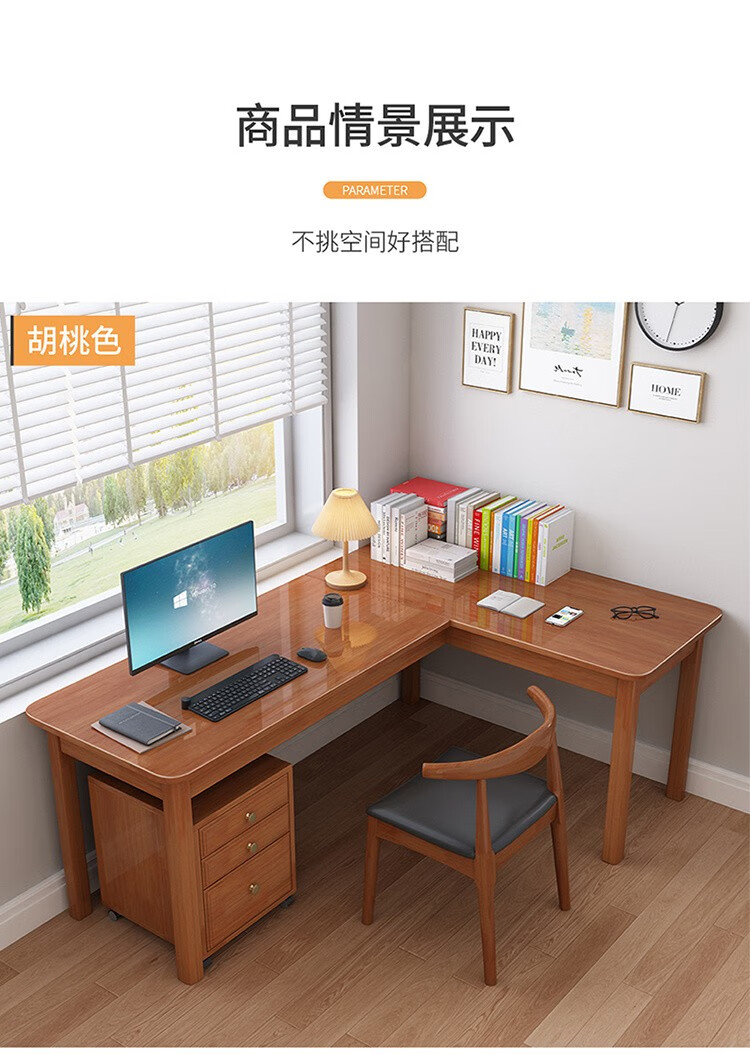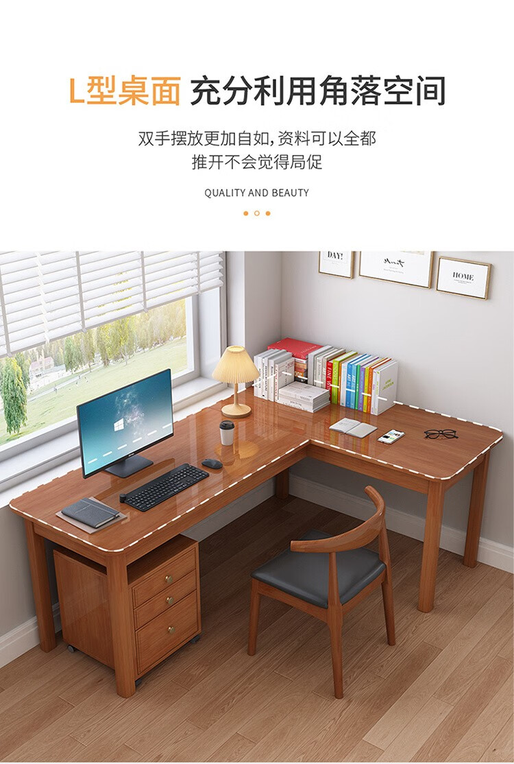 MEZVMV solid wood corner desk L-shaped corner workbench home bedroom wall-mounted bay window desk computer desk walnut color single table 140*120*75cm (can be interchanged left and right)