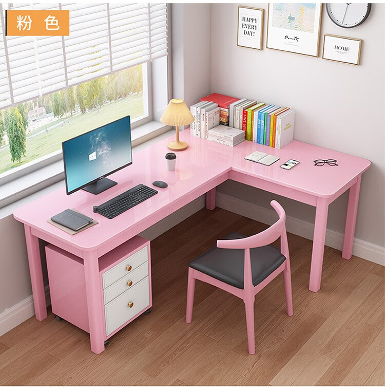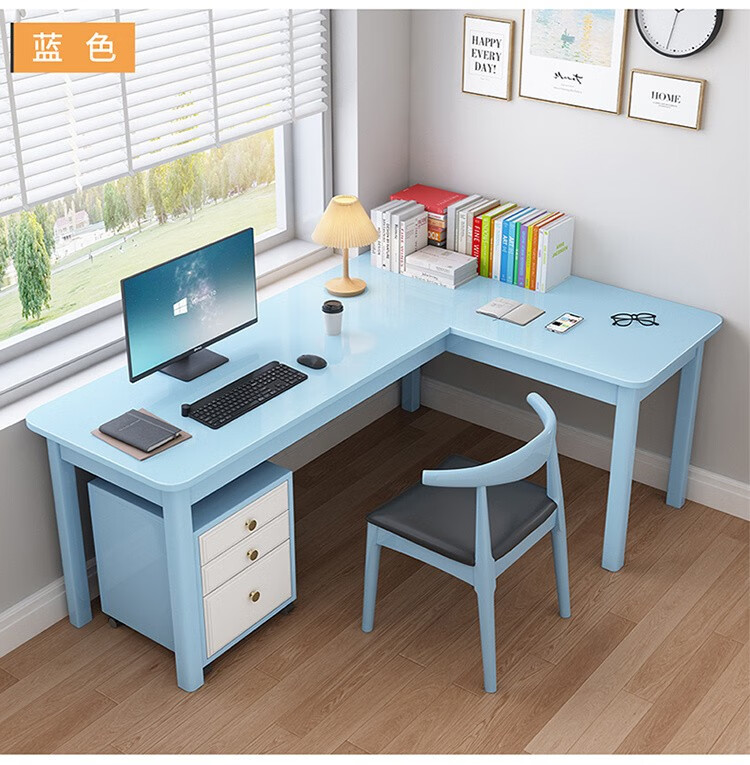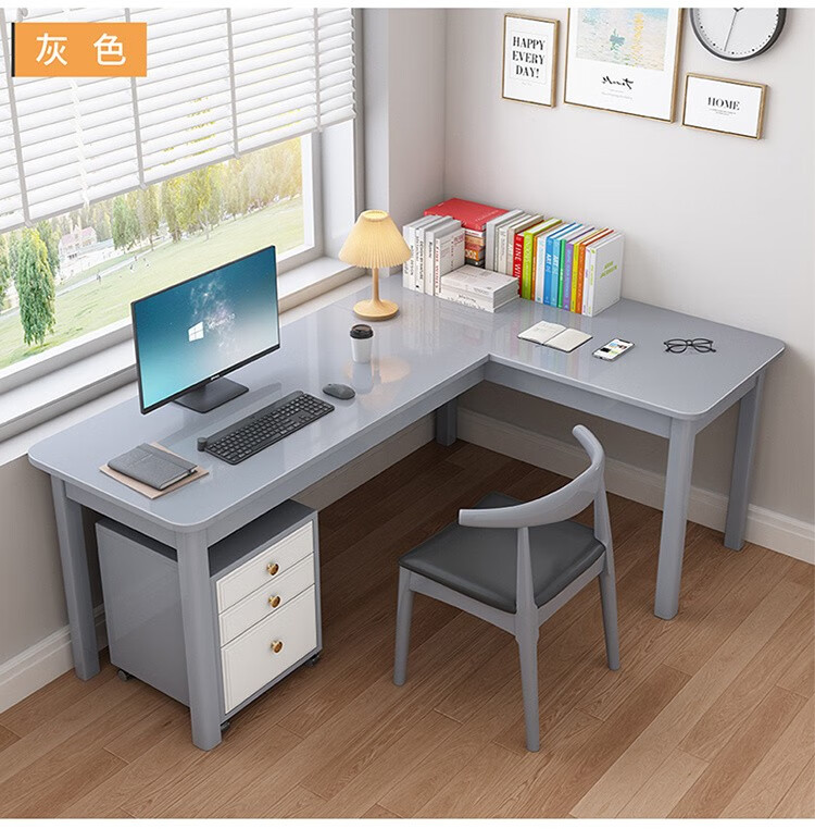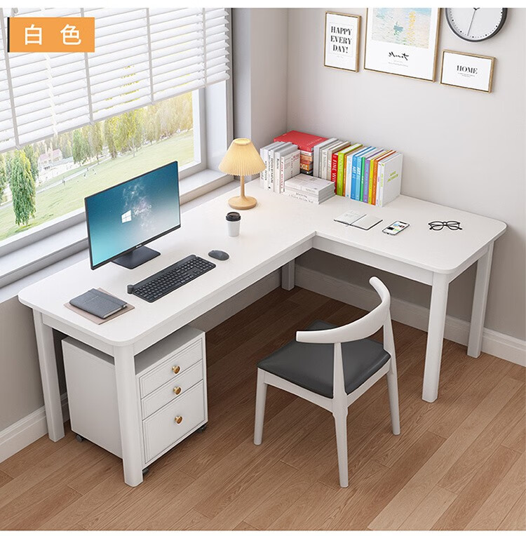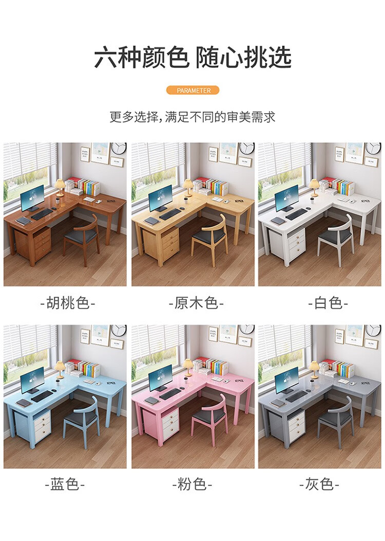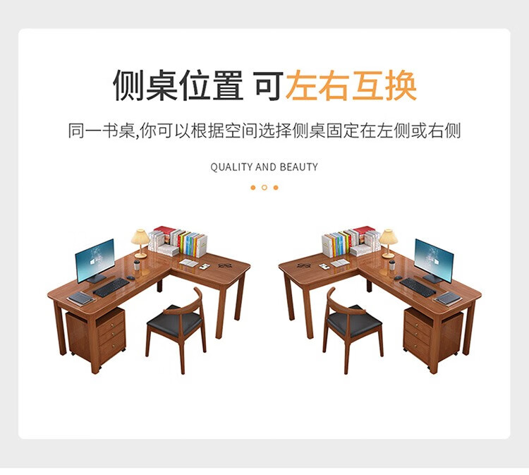 MEZVMV solid wood corner desk L-shaped corner workbench home bedroom wall-mounted bay window desk computer desk walnut color single table 140*120*75cm (can be interchanged left and right)