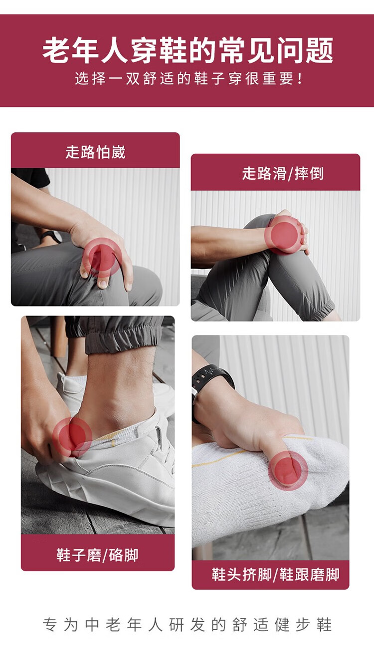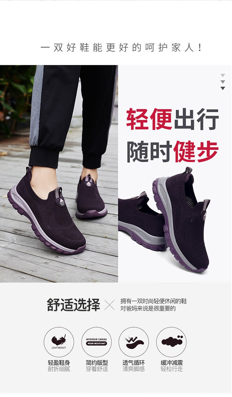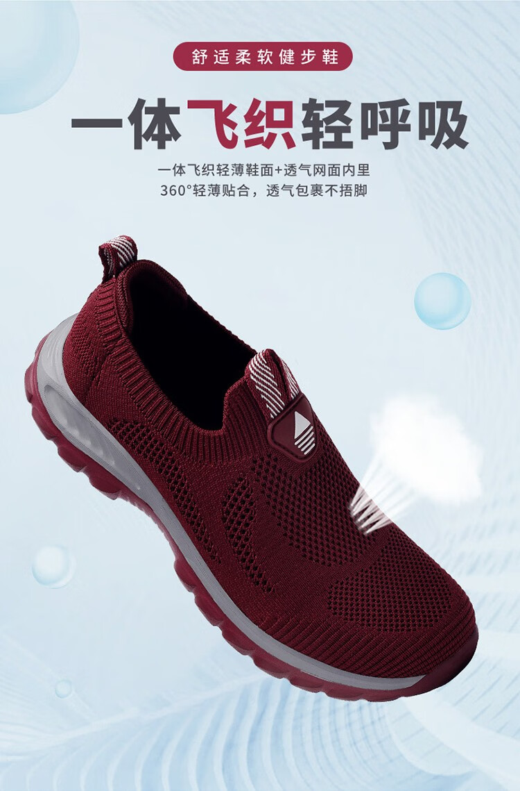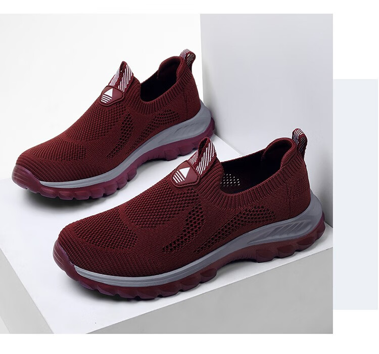 Velociraptor Guanhua summer non-slip elderly shoes for men and women, middle-aged and elderly walking shoes, soft soles, large size elderly shoes, mom shoes and dad shoes, maroon 38