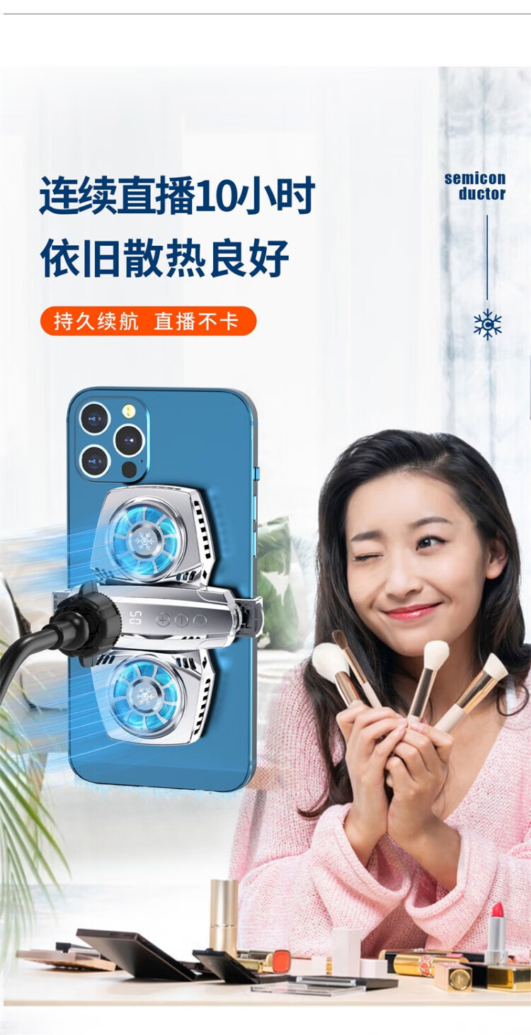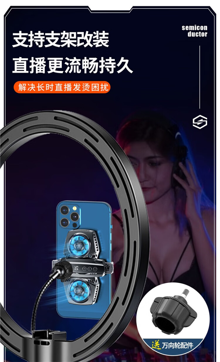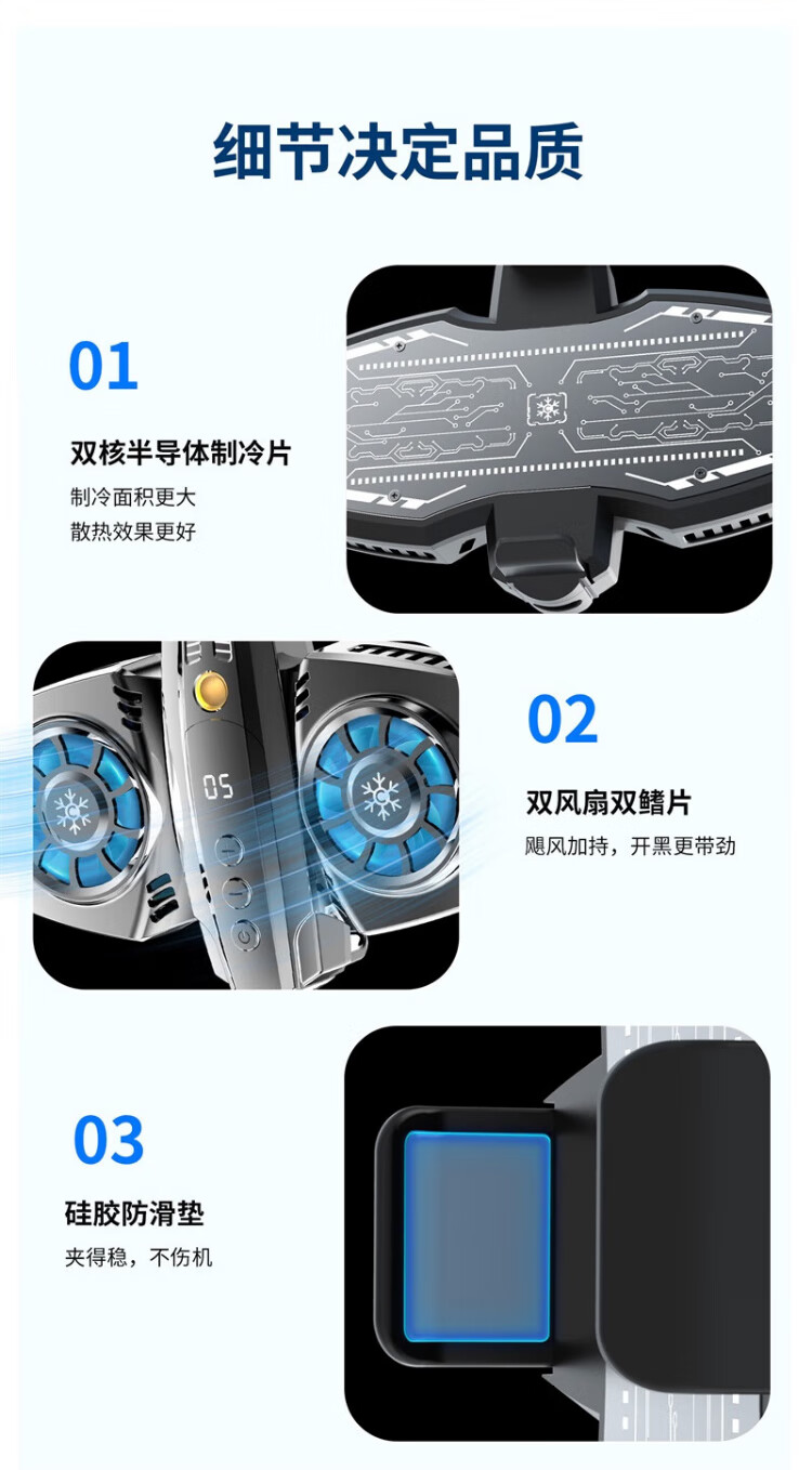 Qise E-sports grade cooling mobile phone radiator live broadcast semiconductor cooling magnetic suction chicken-eating artifact King of Glory Huawei iqoo Apple Android universal Black Shark Red Magic K4丨Gun color digital display back clip model dual-speed cooling + free adapter