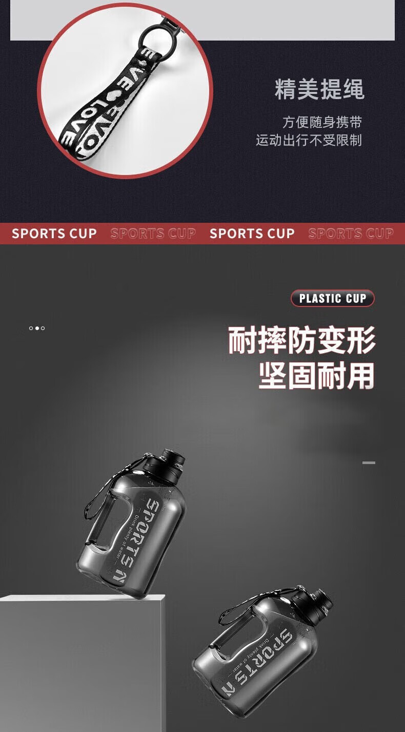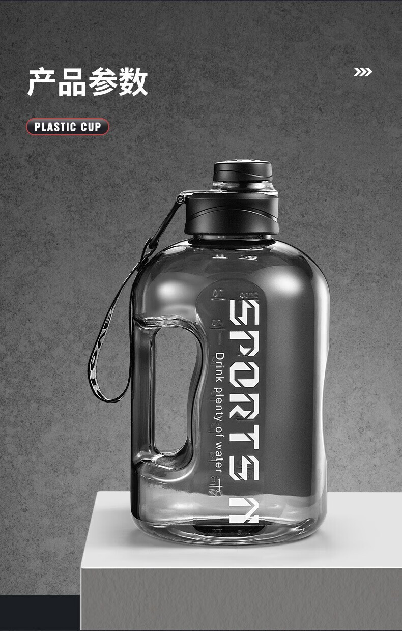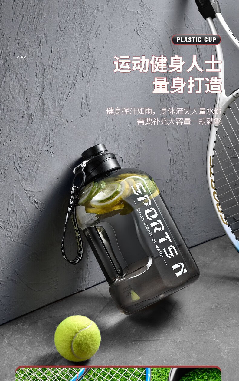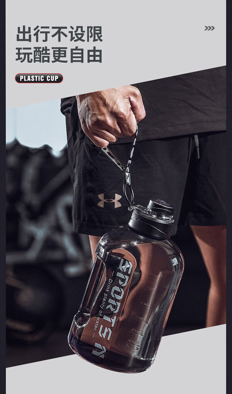 Wanjia all plastic fitness water cup large capacity food grade ton cup sports water bottle pier ton barrel men's high temperature resistant cup classic 1700ml