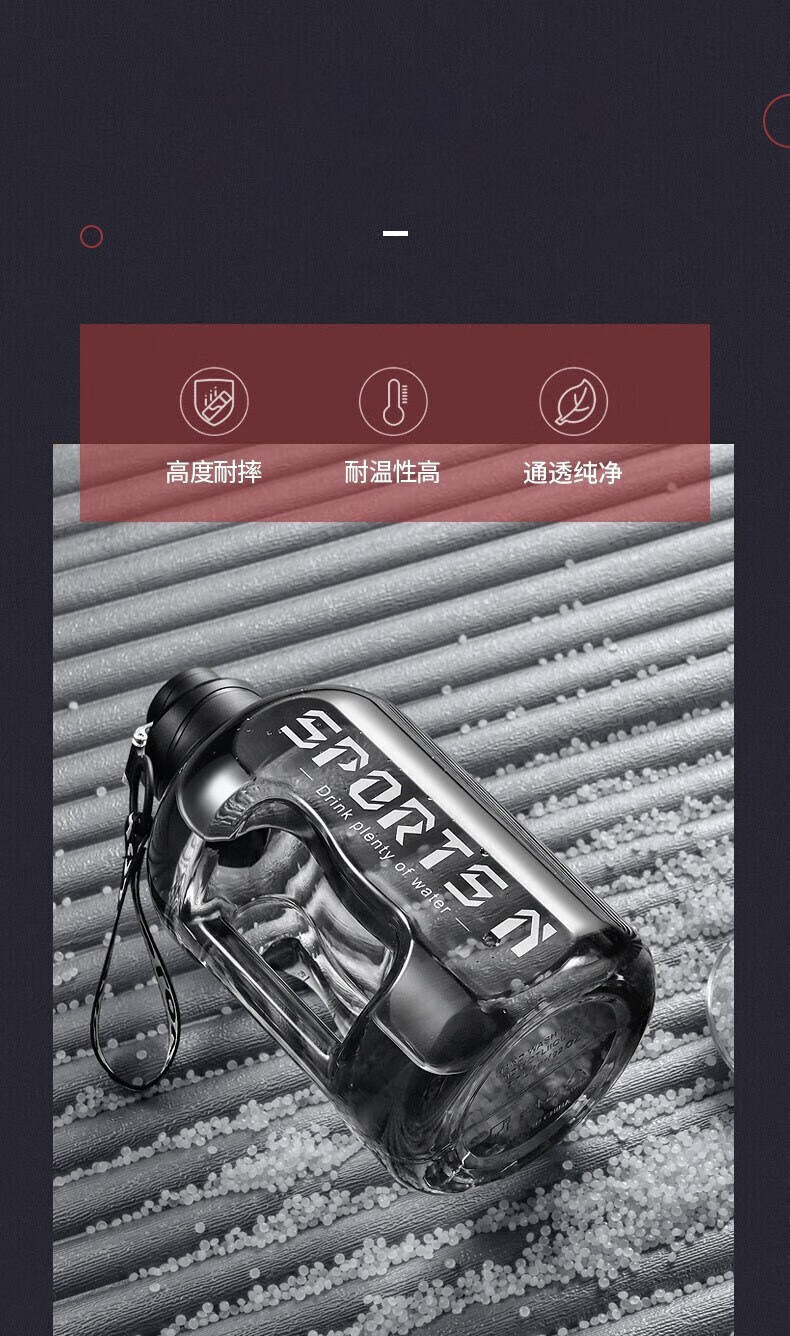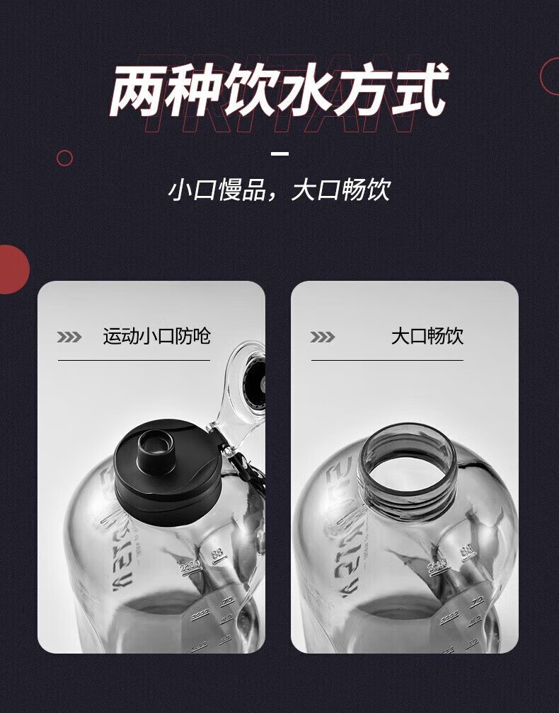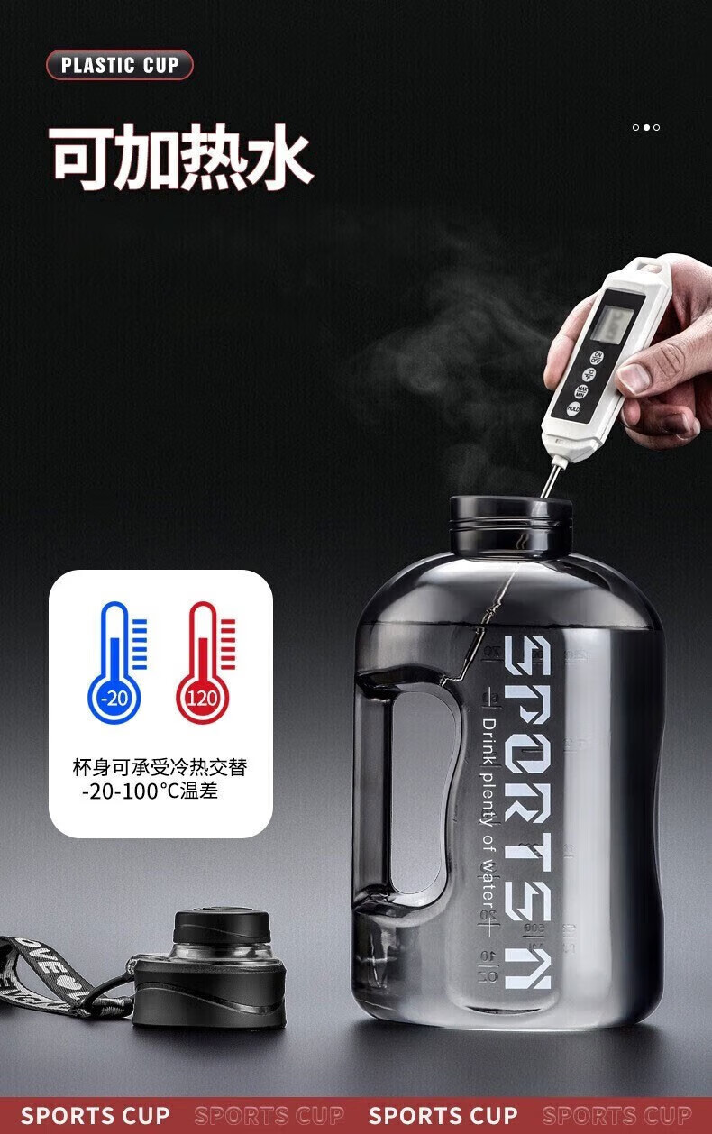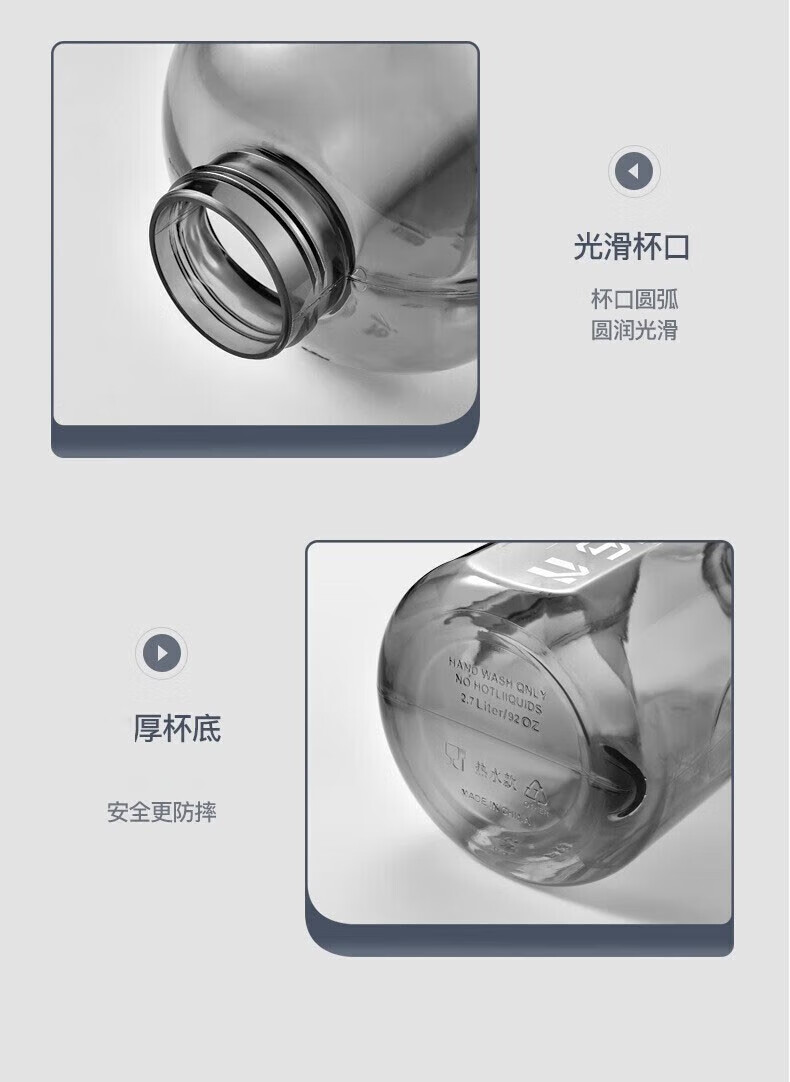 Wanjia all plastic fitness water cup large capacity food grade ton cup sports water bottle pier ton barrel men's high temperature resistant cup classic 1700ml