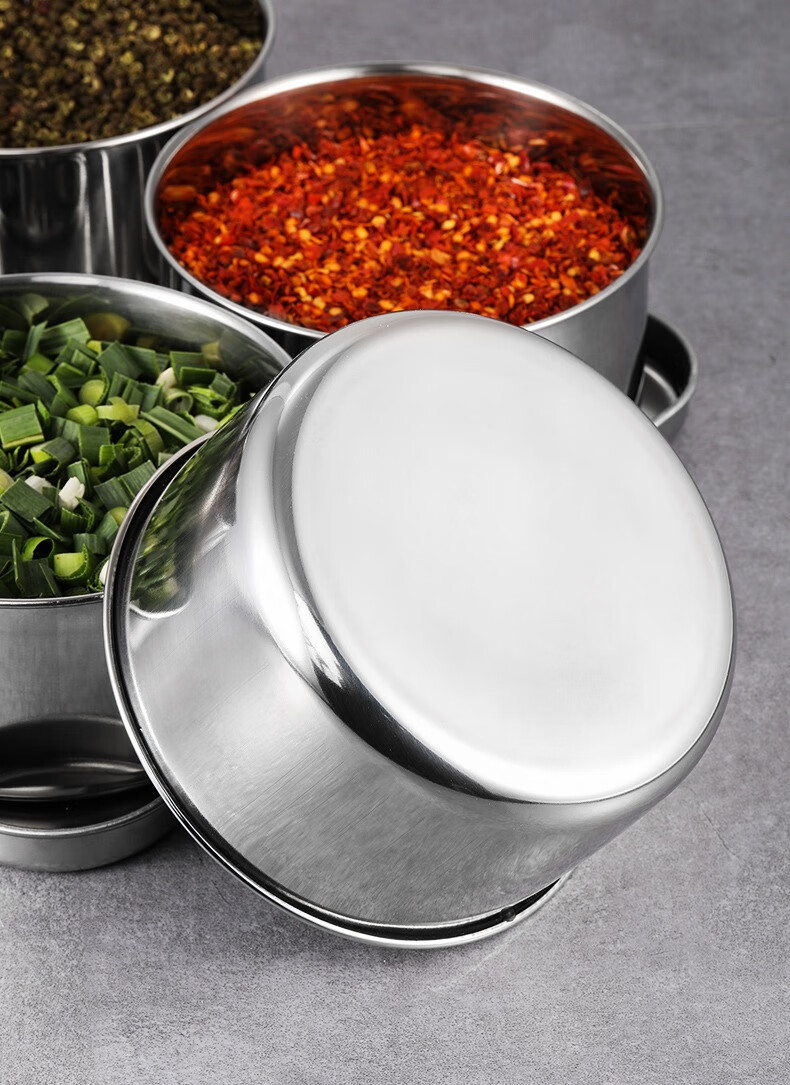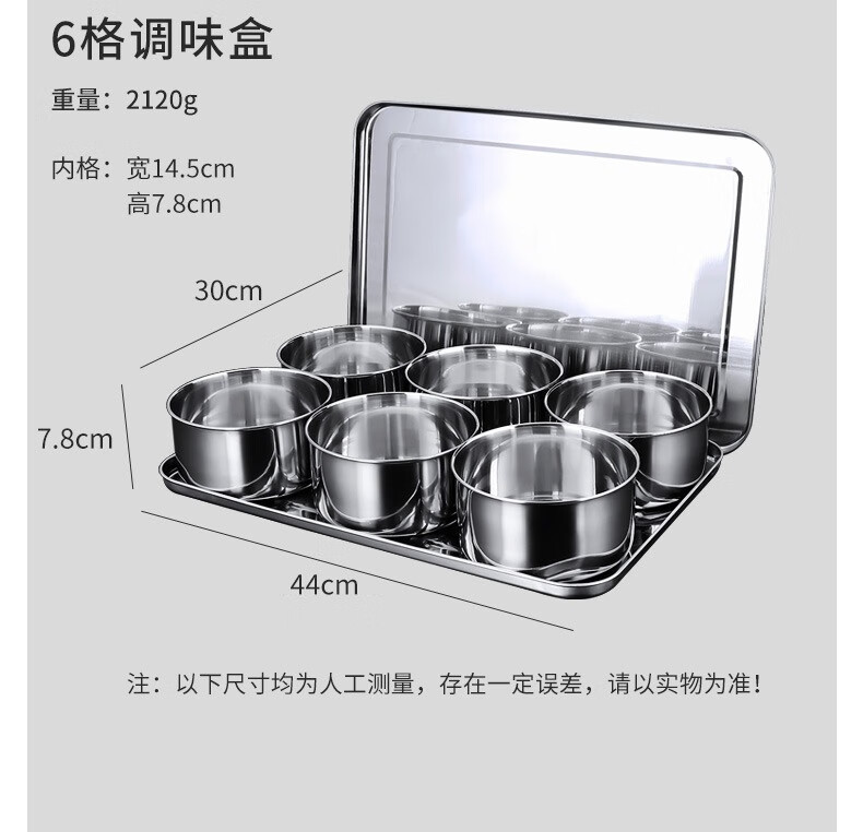 Hanxiao Commercial Seasoning Box Set Stainless Steel Seasoning Jar Large Capacity Kitchen Catering Hotel Canteen Material Tank Material Box with Cover Six Grid Flavor Box (Round Grid) with Cover (Free 6 Spoons) No Specifications