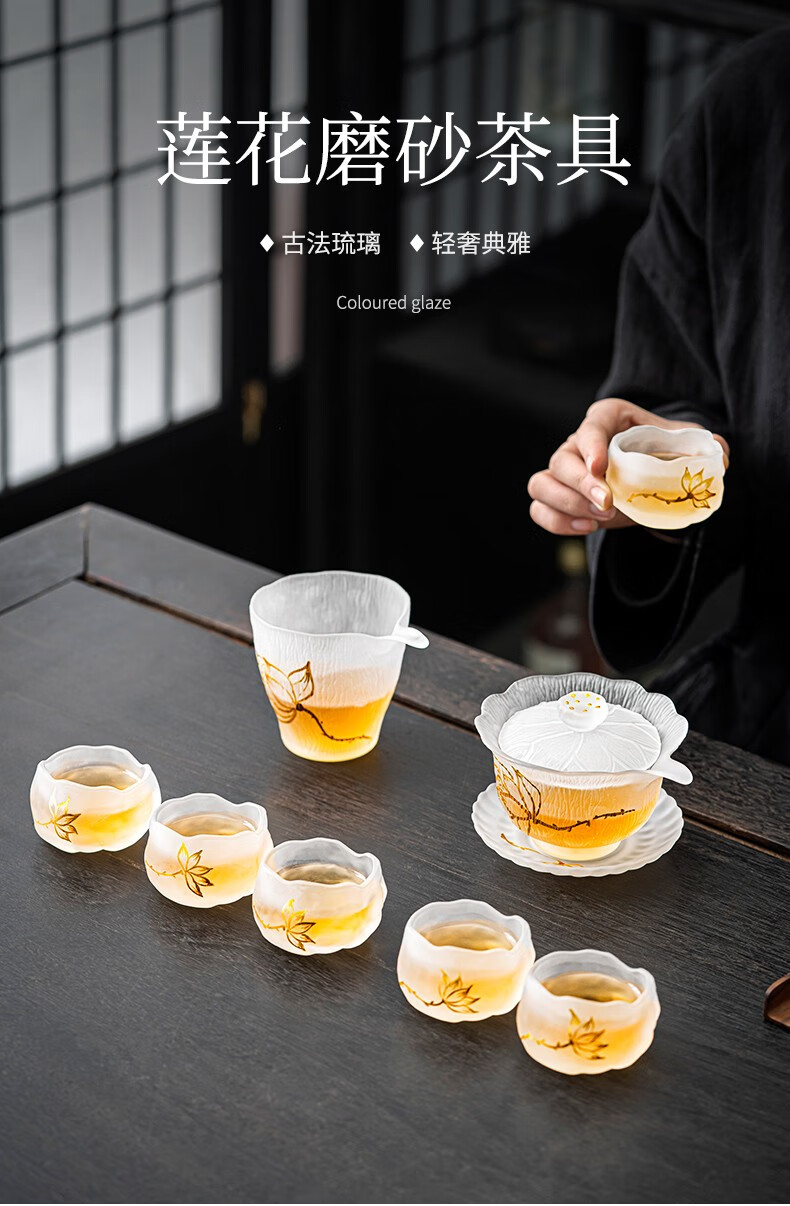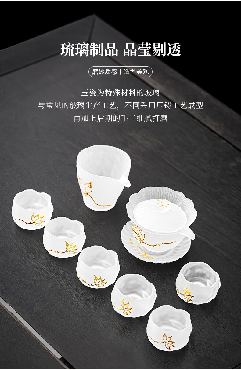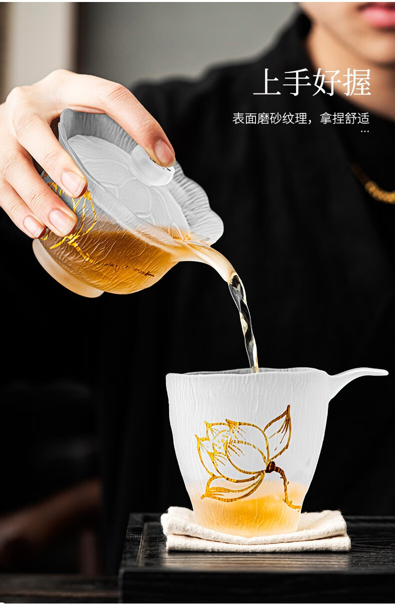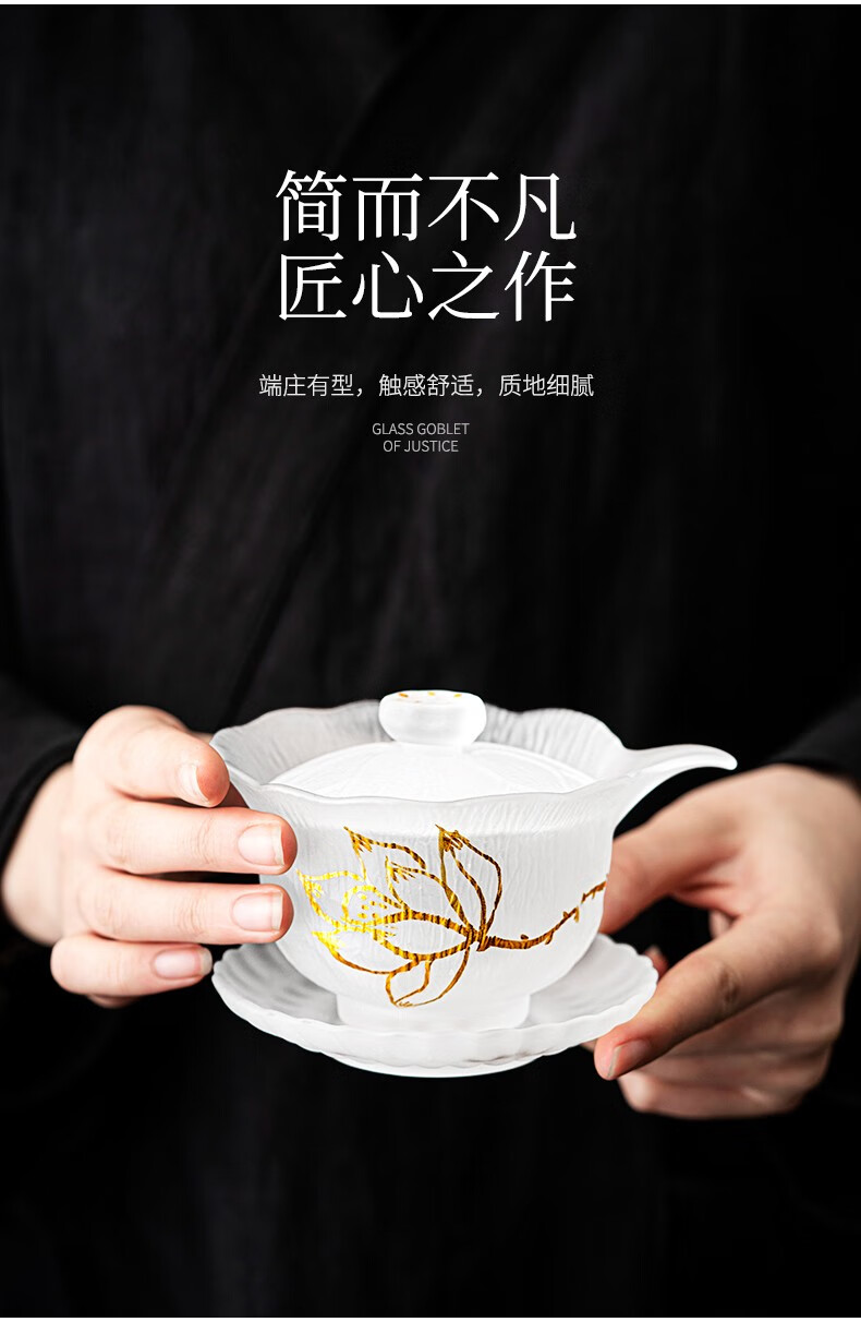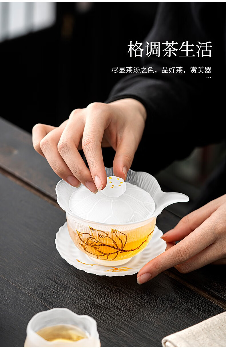 Tangfeng (TANGFENG) Sancai tureen tea set, high-end office reception tea cup, home frosted glass kung fu tea set, lotus frosted cup + lotus frosted coaster