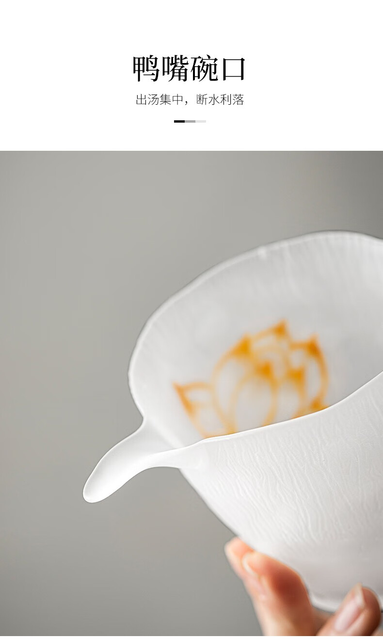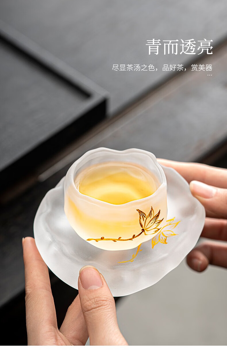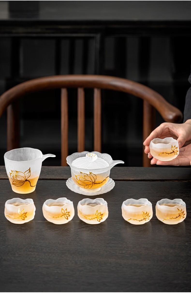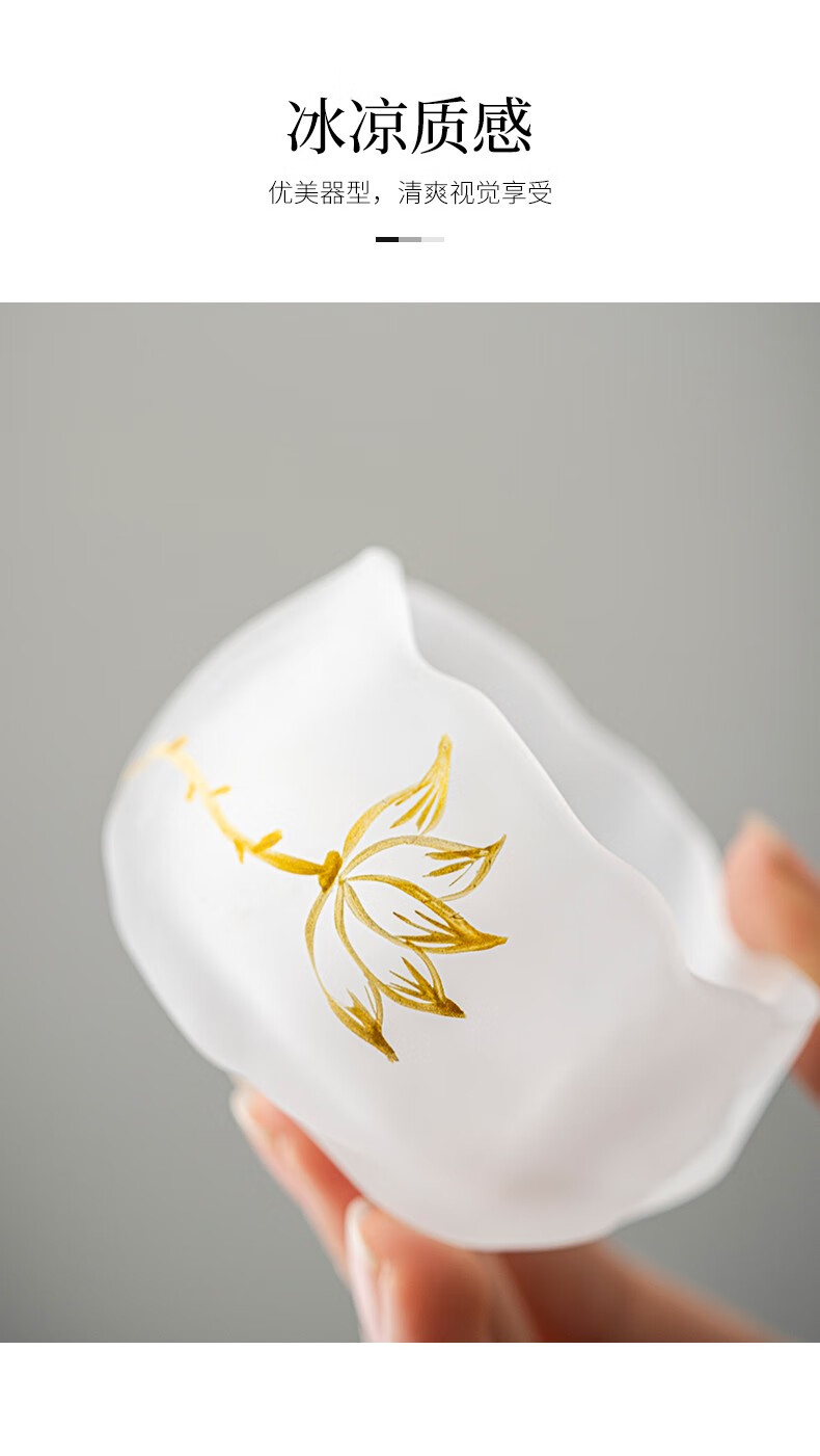Tangfeng (TANGFENG) Sancai tureen tea set, high-end office reception tea cup, home frosted glass kung fu tea set, lotus frosted cup + lotus frosted coaster