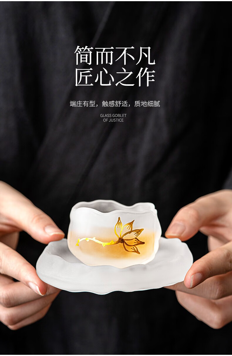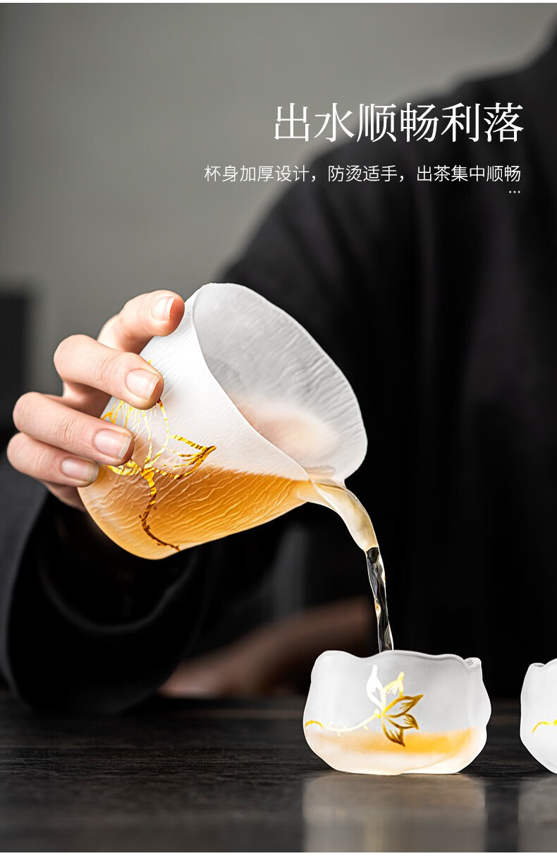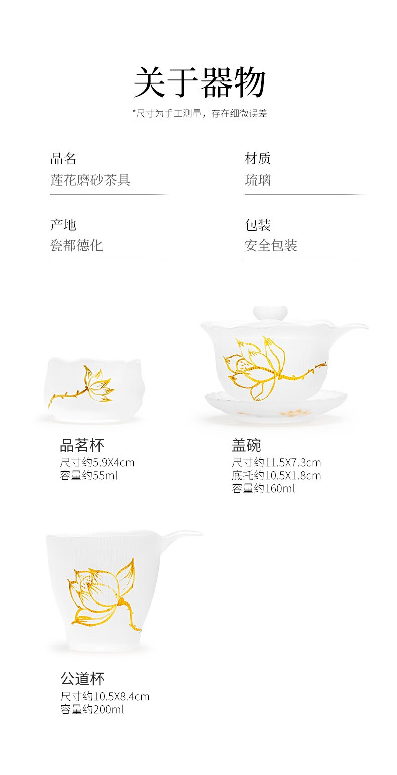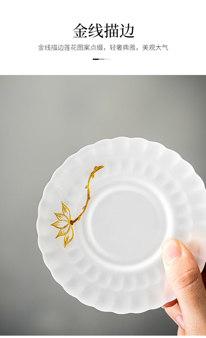 Tangfeng (TANGFENG) Sancai tureen tea set, high-end office reception tea cup, home frosted glass kung fu tea set, lotus frosted cup + lotus frosted coaster