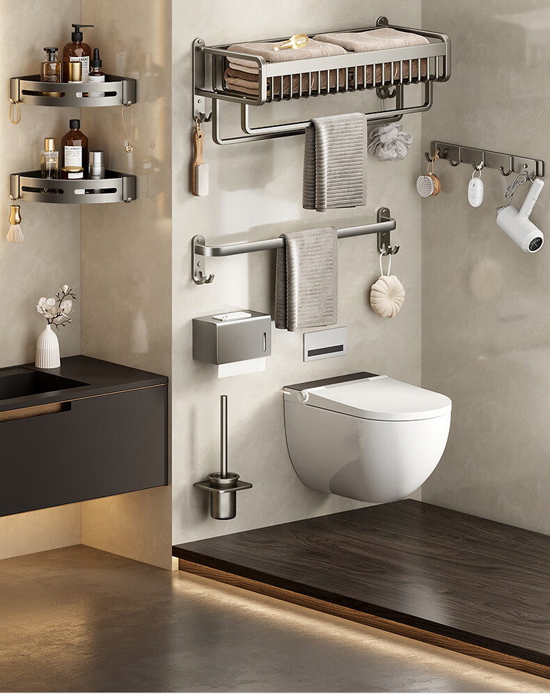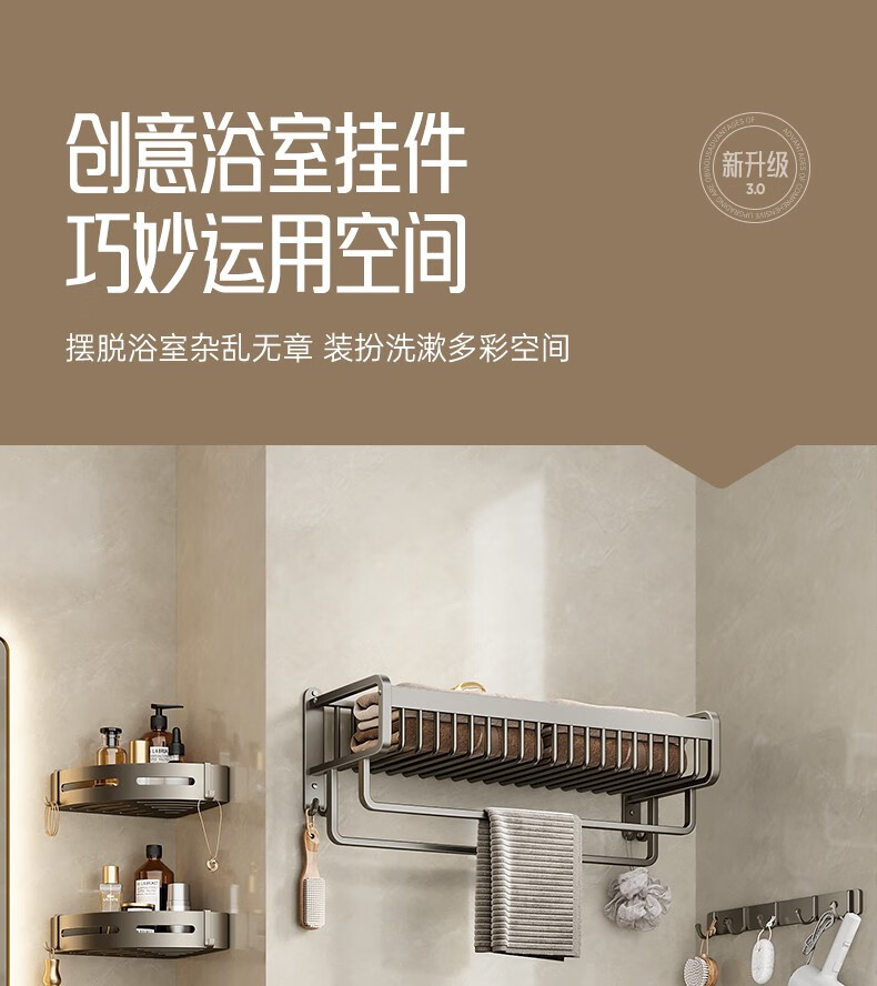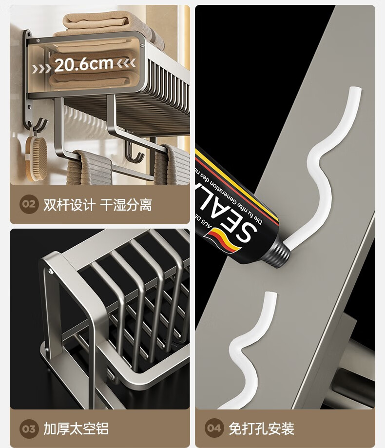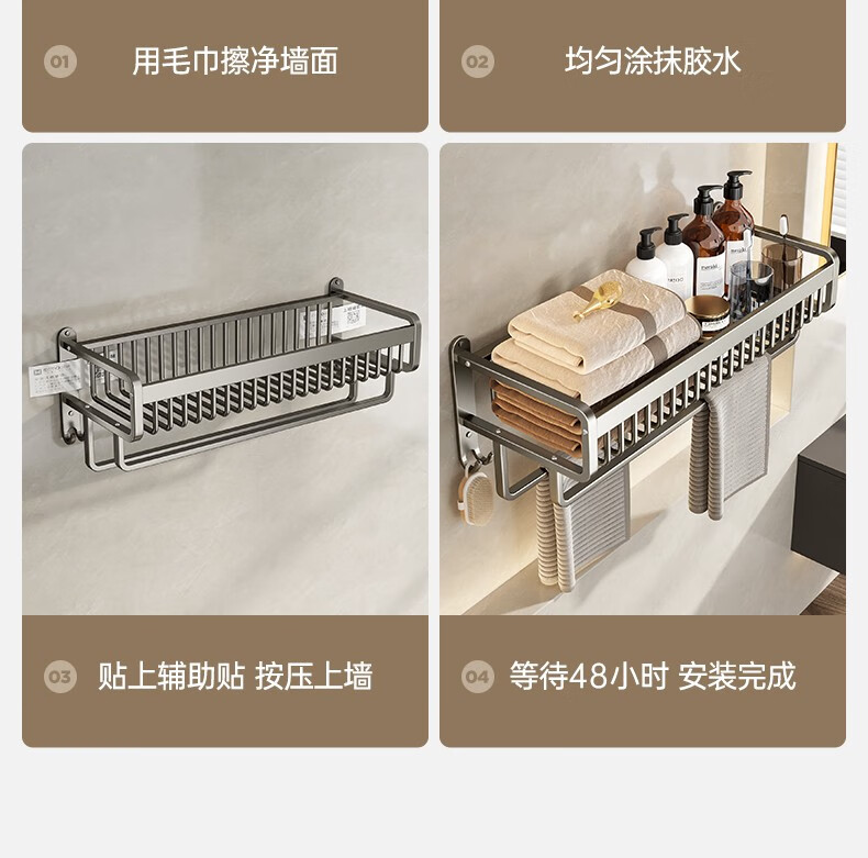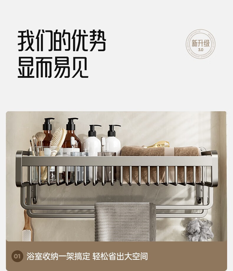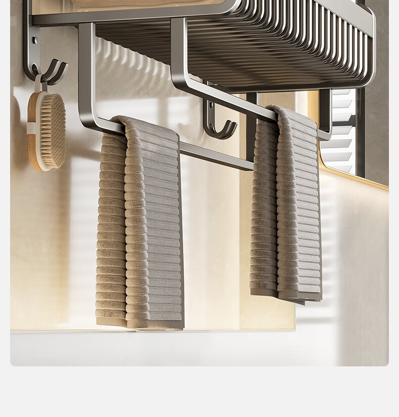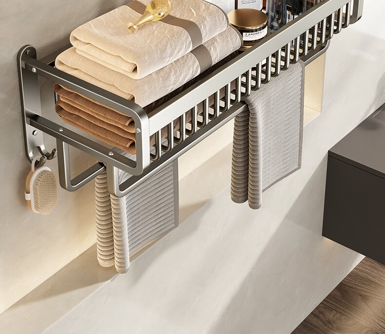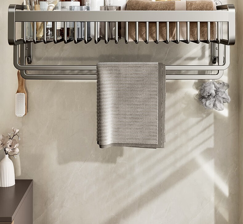 Ermo starry sky gray towel rack no punching bathroom storage rack bathroom towel rack toilet bathroom toilet pendant starry sky gray mesh basket double pole 57CM recommended by the store manager