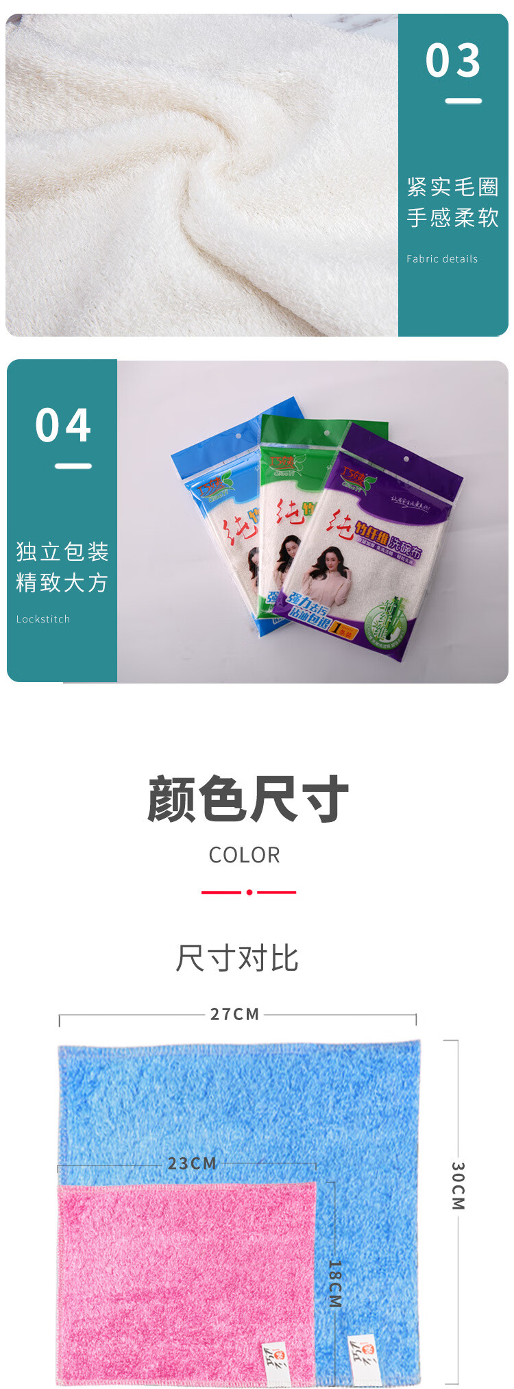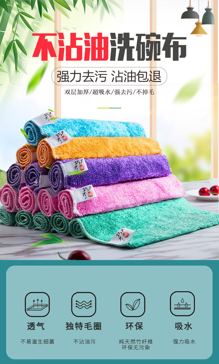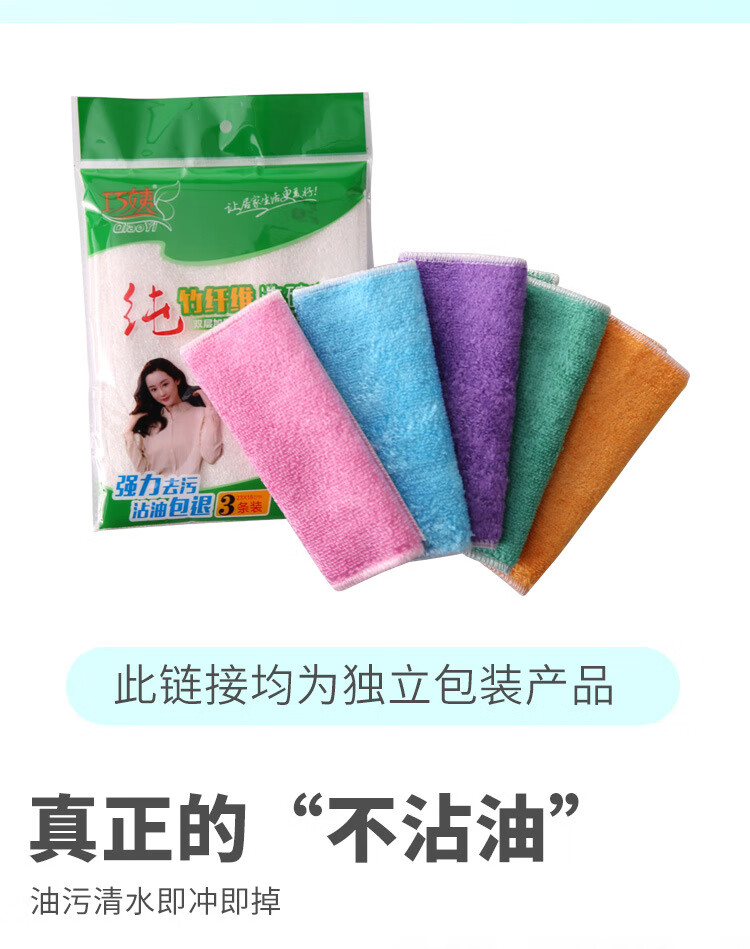 Qiaoyi dishwashing cloth with packaging thickened bamboo fiber dishcloth household kitchen non-stick oil lazy rag absorbs water and decontamination white 23*17cm 3 pack