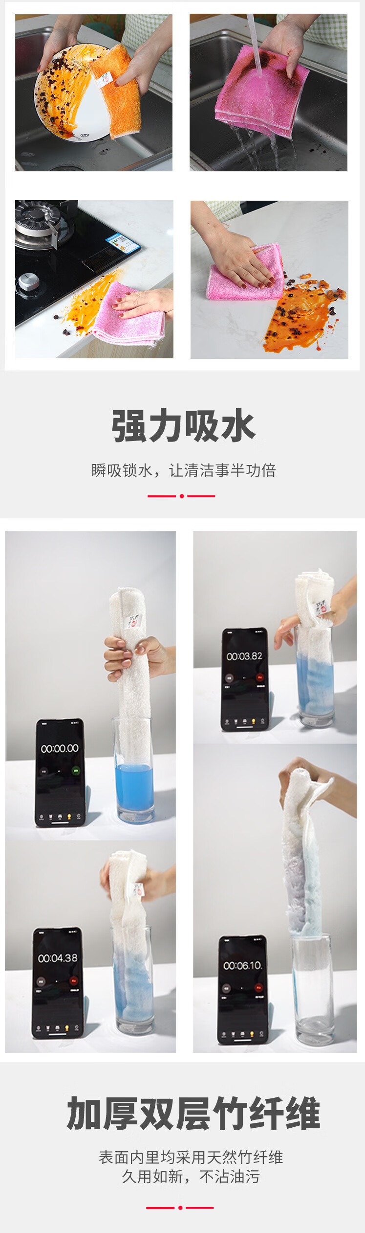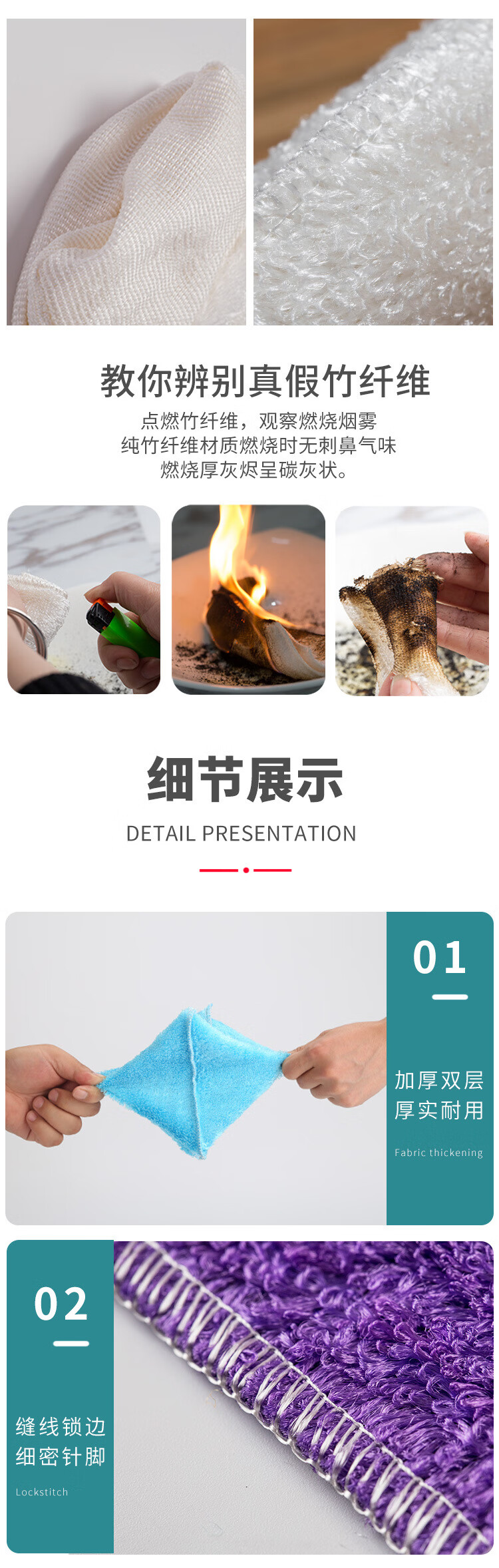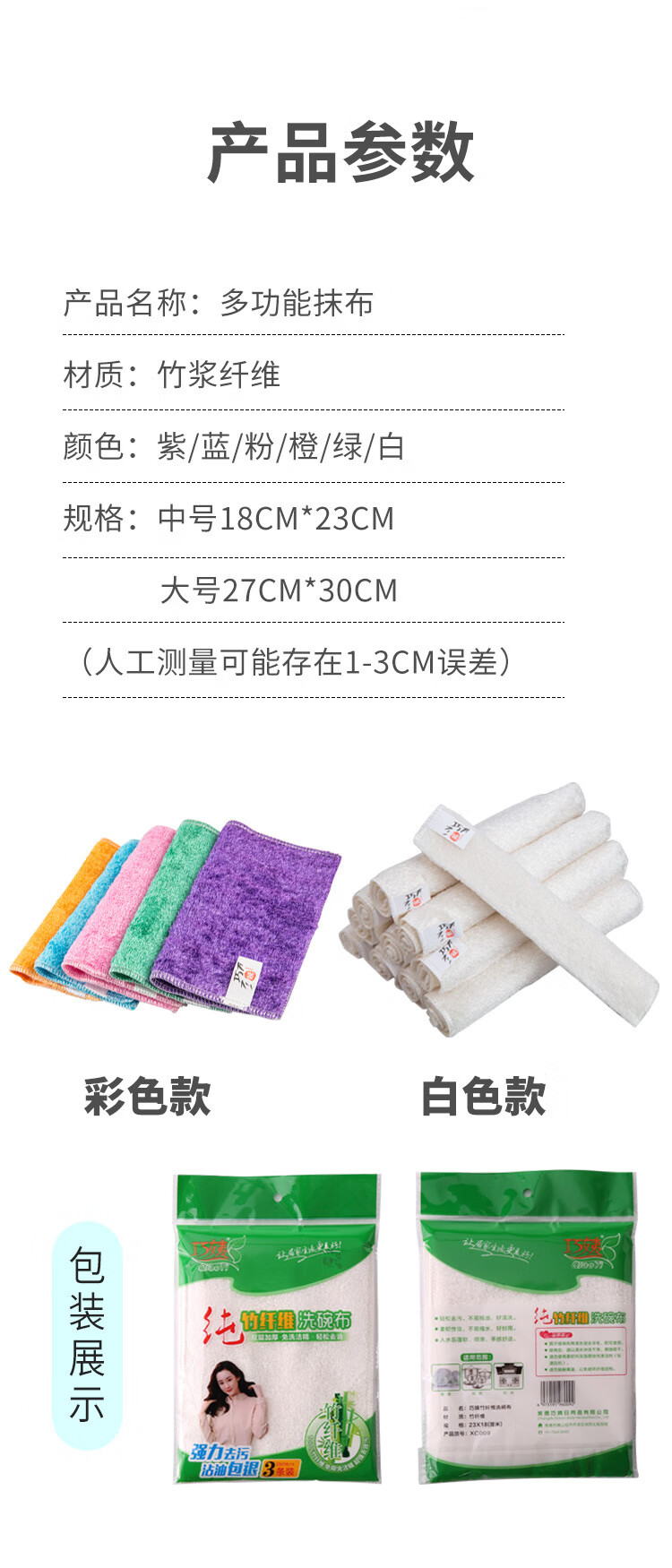 Qiaoyi dishwashing cloth with packaging thickened bamboo fiber dishcloth household kitchen non-stick oil lazy rag absorbs water and decontamination white 23*17cm 3 pack