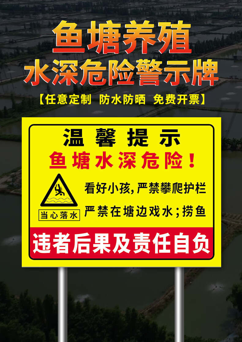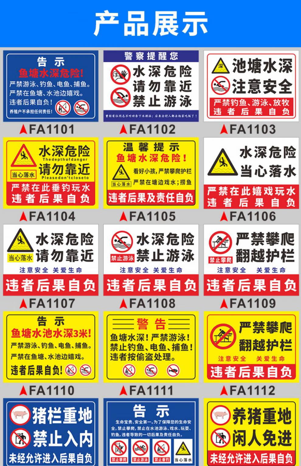 Mengqingcheng Water Depth Danger Warning Sign Fish Pond Reservoir Please Do Not Approach Safety Sign No Swimming Pond Pool River Edge Defense 01-(PVC Board) Water Depth 40x50cm