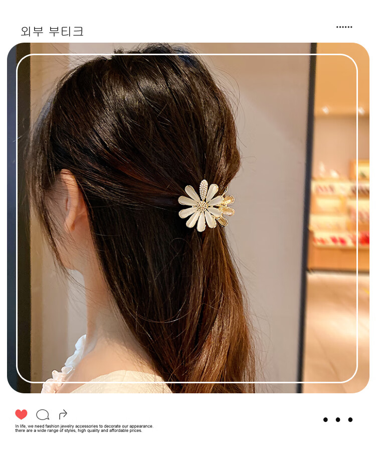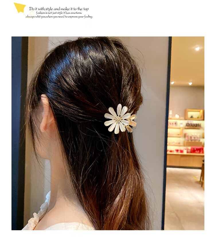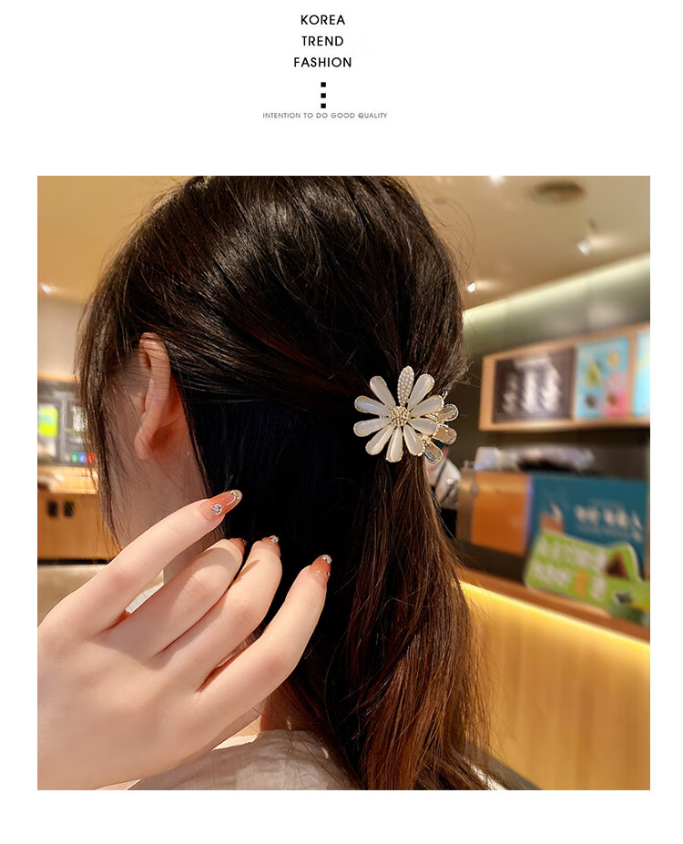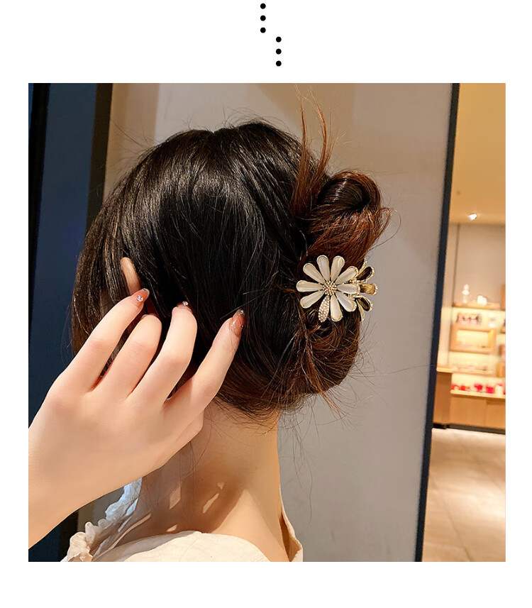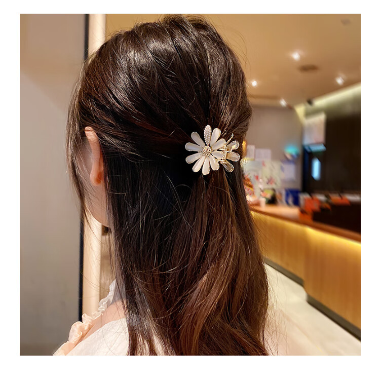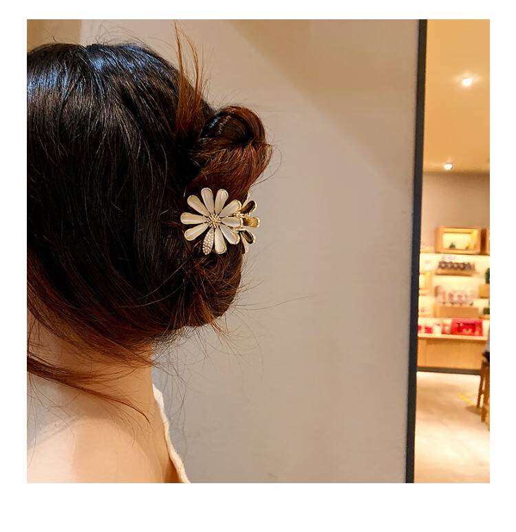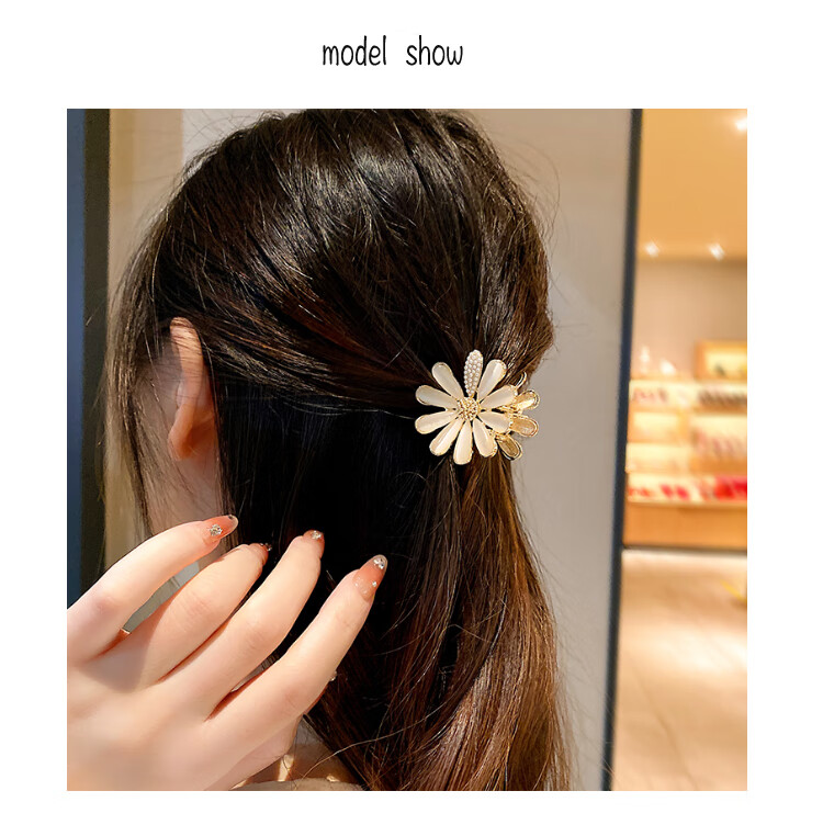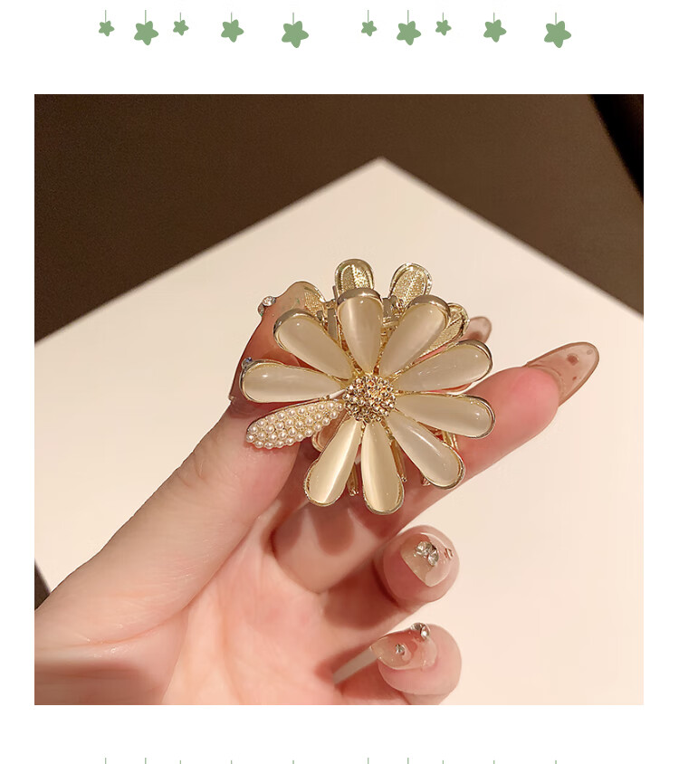 BARY REEF cat's eye stone daisy flower hairpin back of head grabber elegant temperament women's shark clip headwear hairpin cat's eye daisy grabber