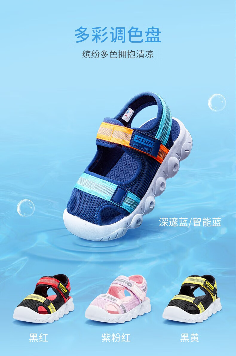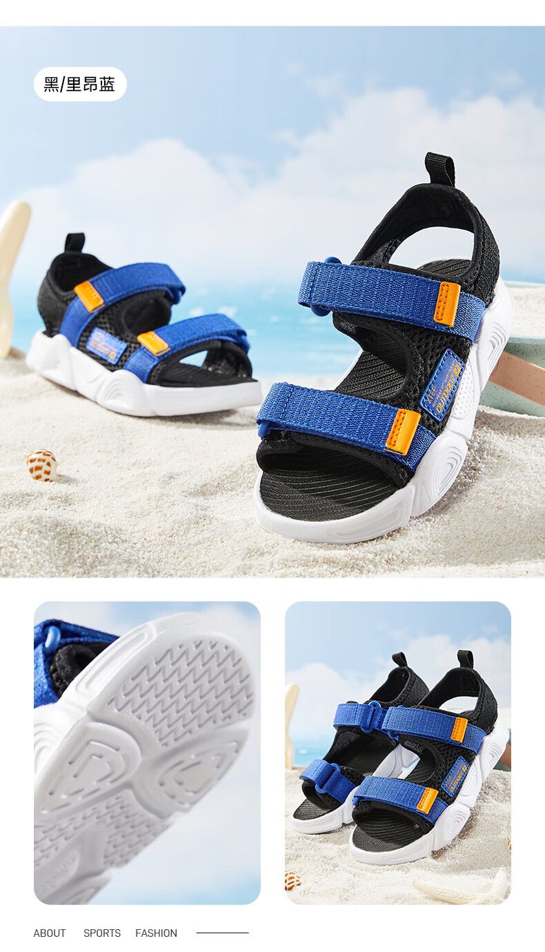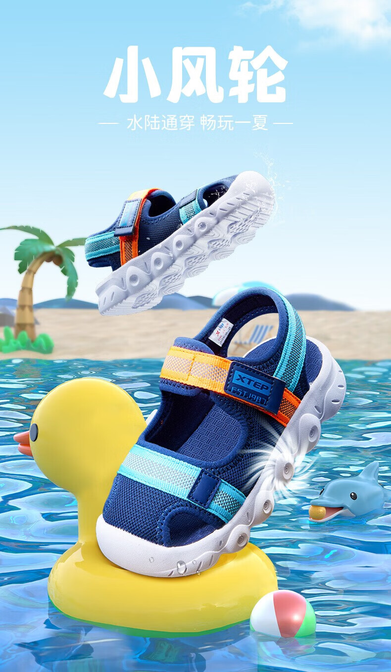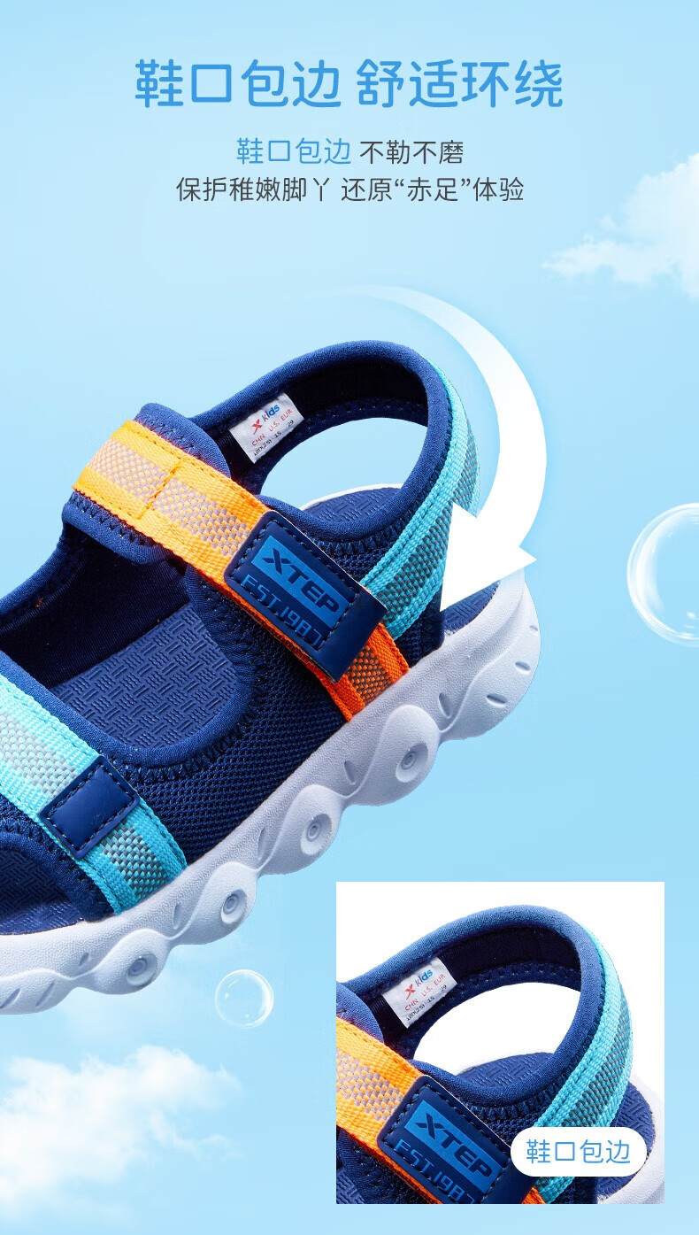 XTEP children's shoes, children's sandals, boys and girls, soft sole, wear-resistant, non-slip, comfortable beach shoes, deep blue/smart blue 22