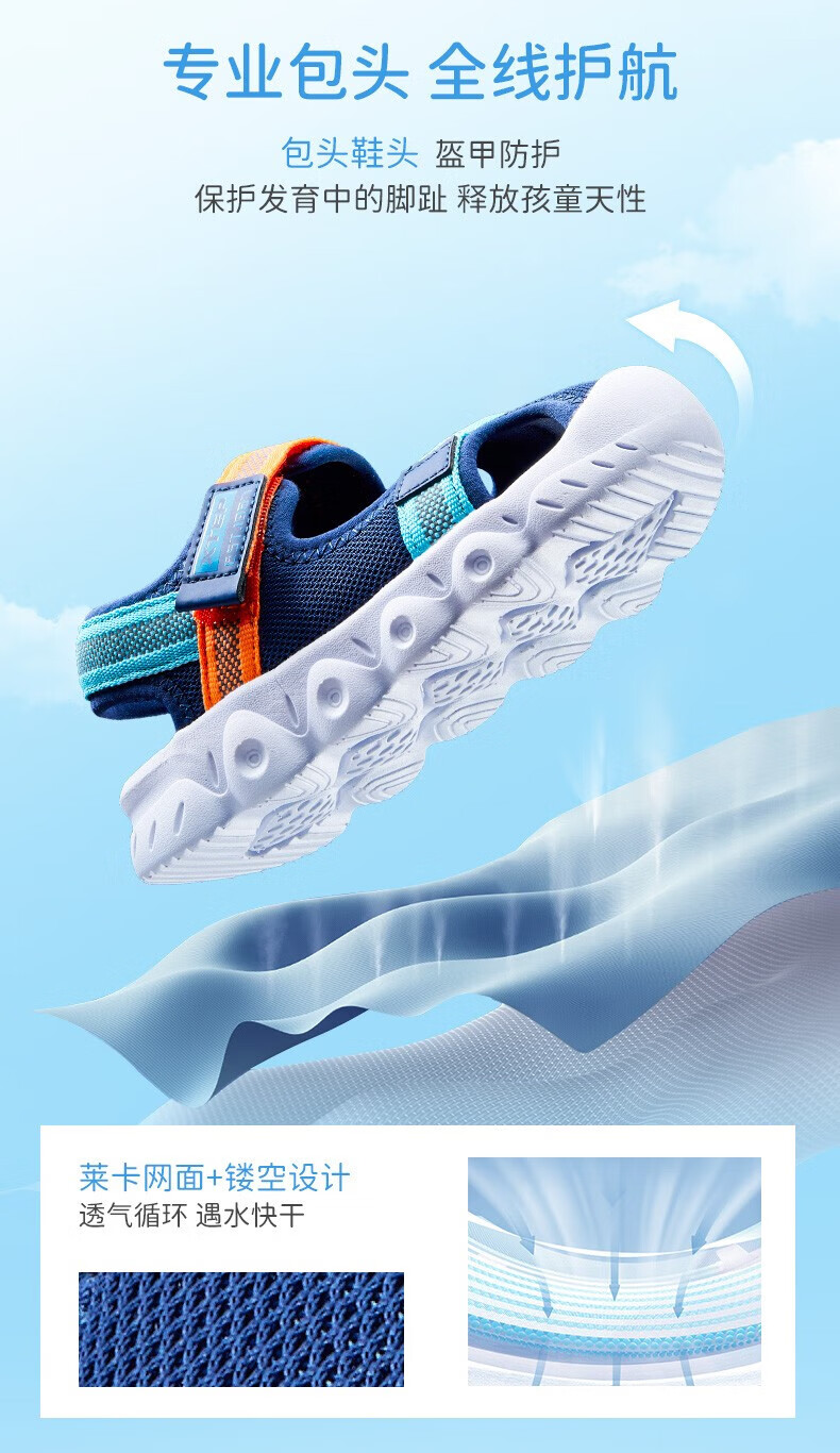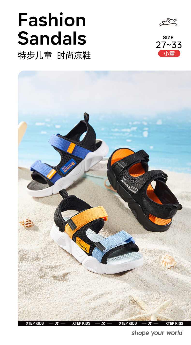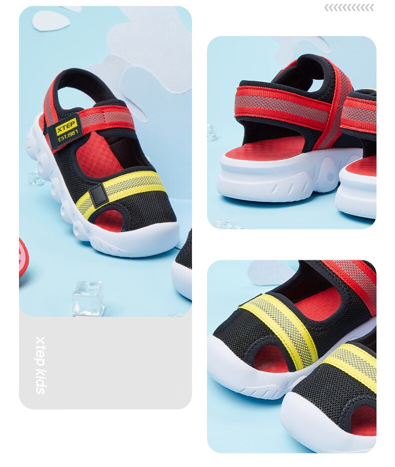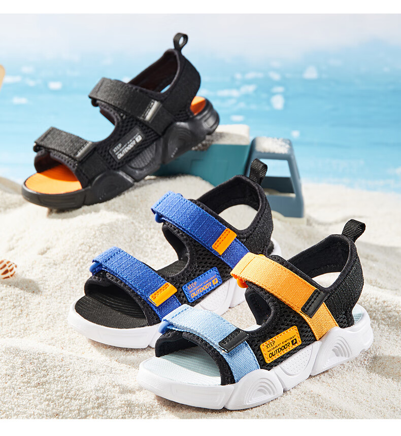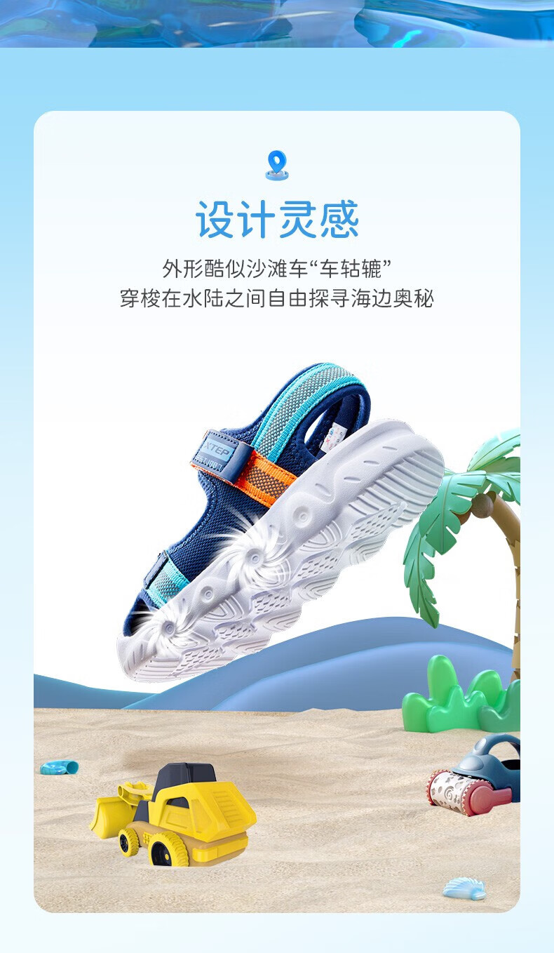 XTEP children's shoes, children's sandals, boys and girls, soft sole, wear-resistant, non-slip, comfortable beach shoes, deep blue/smart blue 22