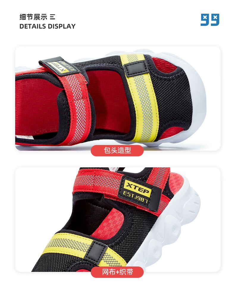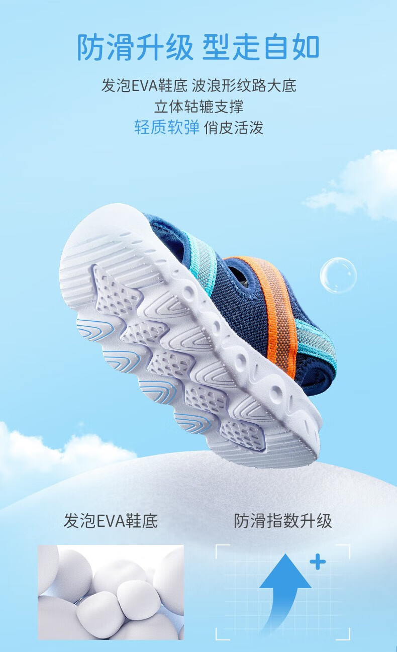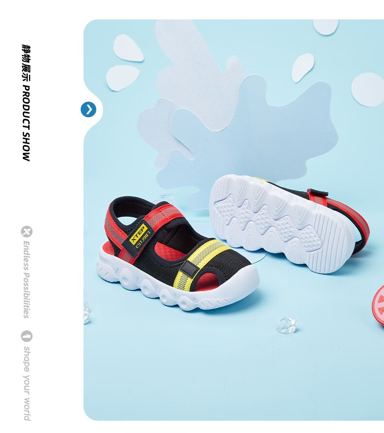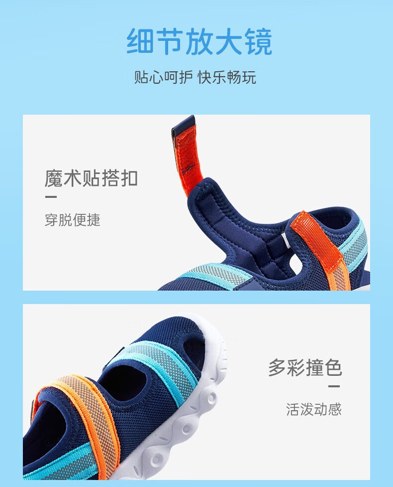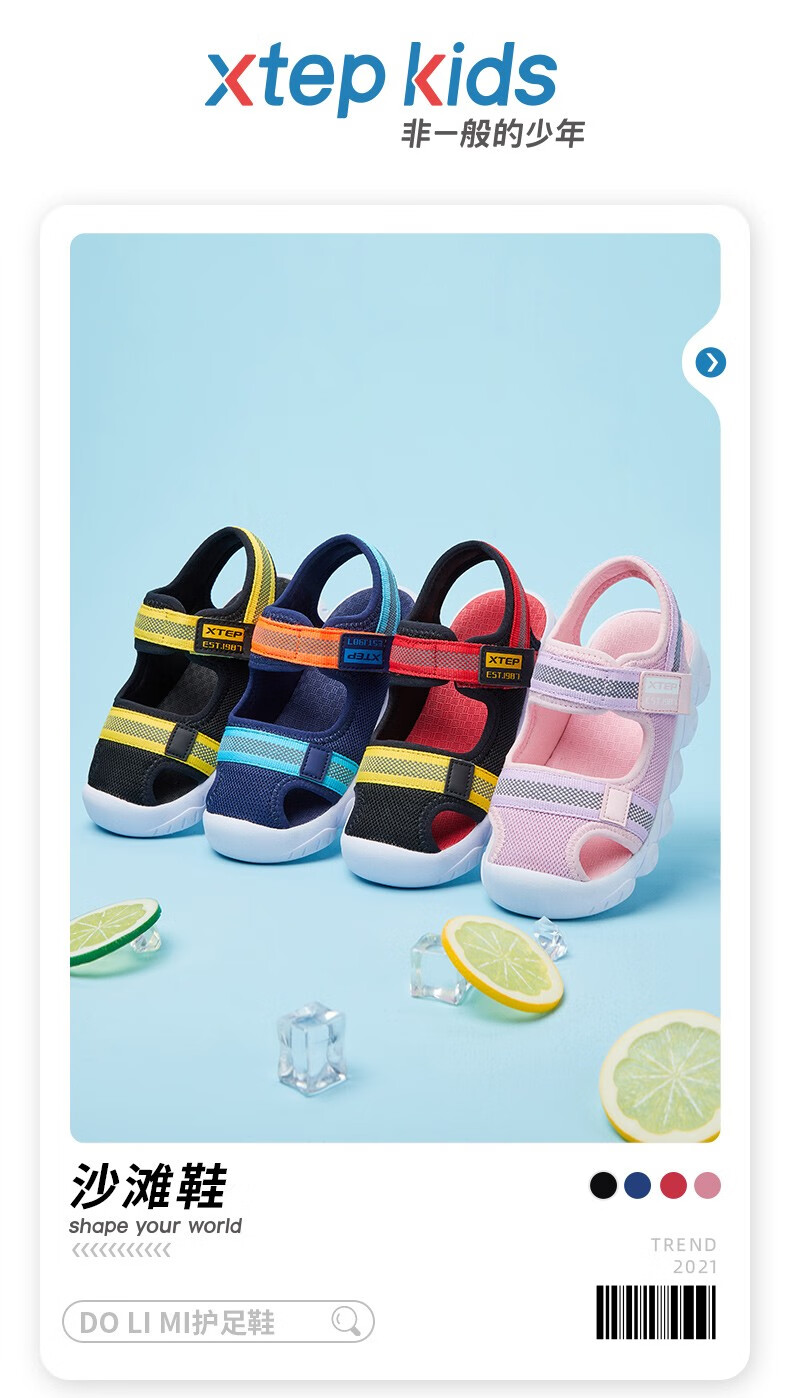 XTEP children's shoes, children's sandals, boys and girls, soft sole, wear-resistant, non-slip, comfortable beach shoes, deep blue/smart blue 22