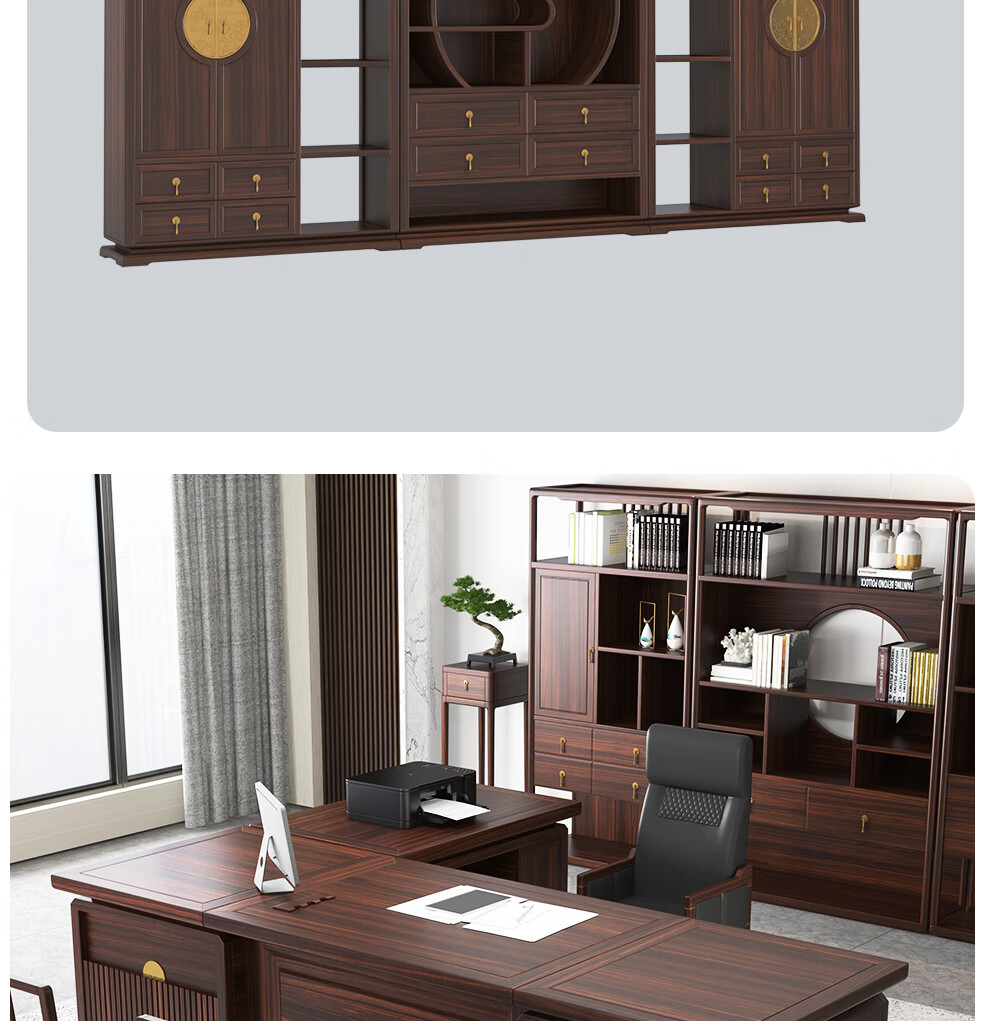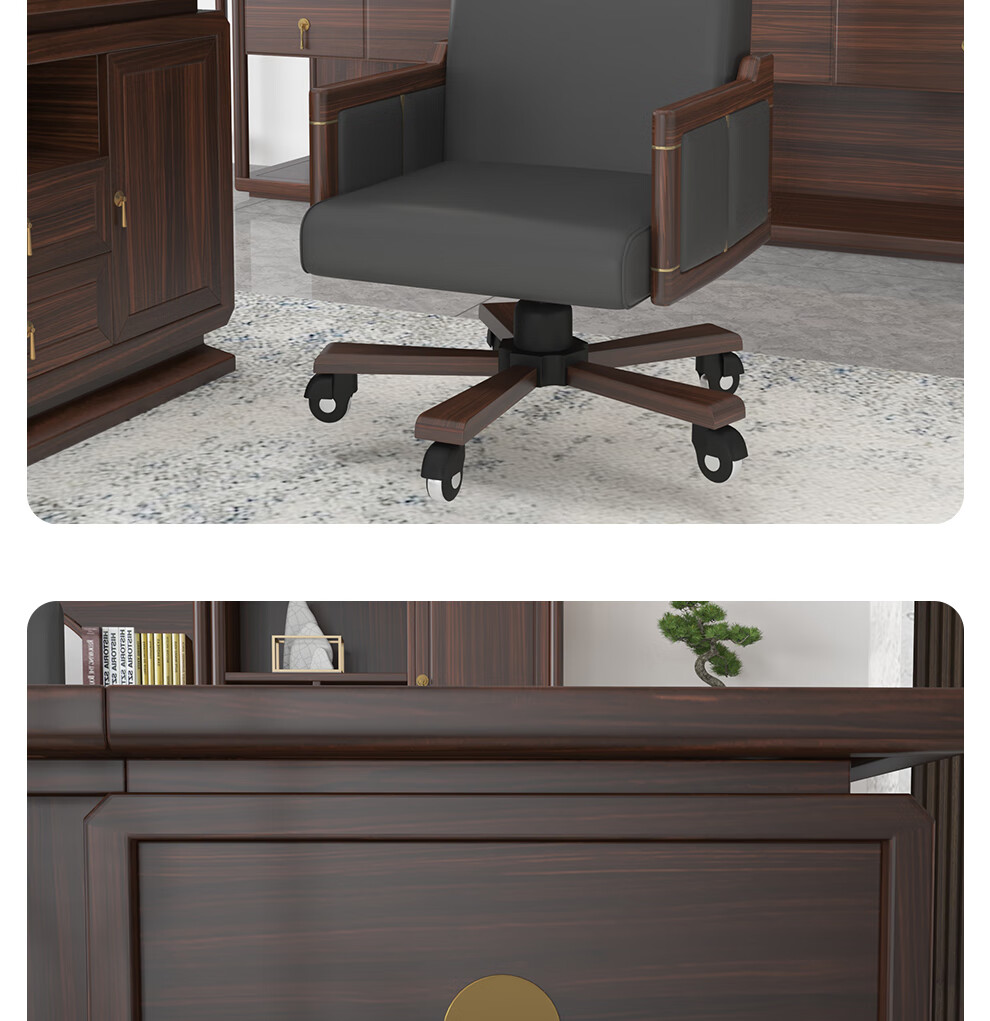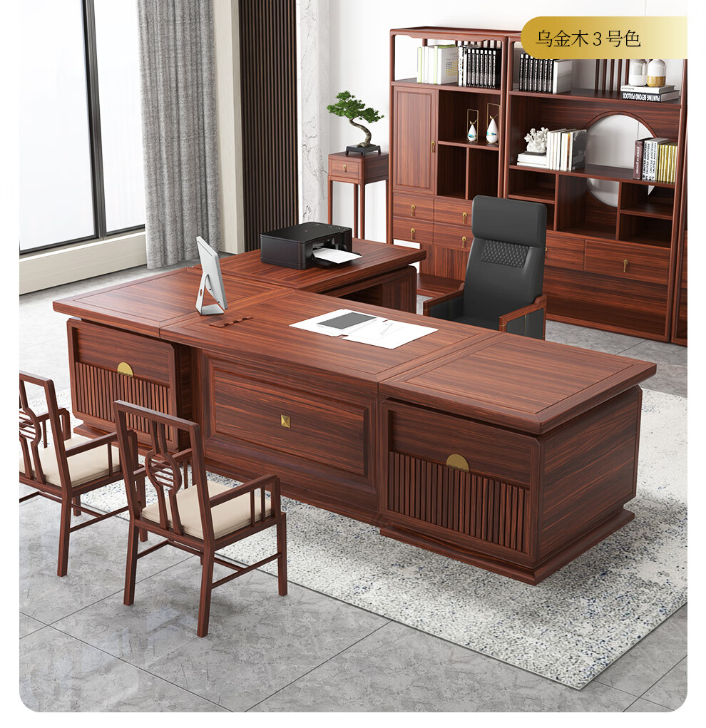Xuanshiju new Chinese style boss desk solid wood executive desk ebony wood chairman president desk office furniture manager desk color plate golden flower li wood - also known as Tang wood