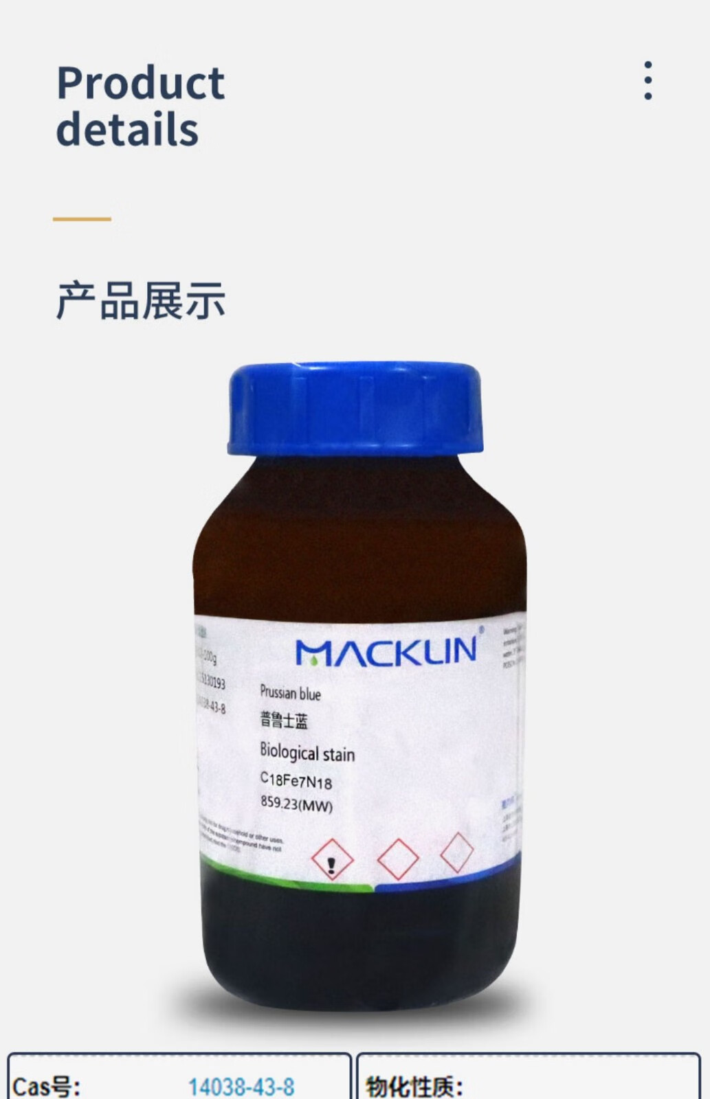 Chemical reagent Prussian blue ferrocyanide (III) BS CAS number 14038-43-8 BS 25g Catalog number P816502-25g