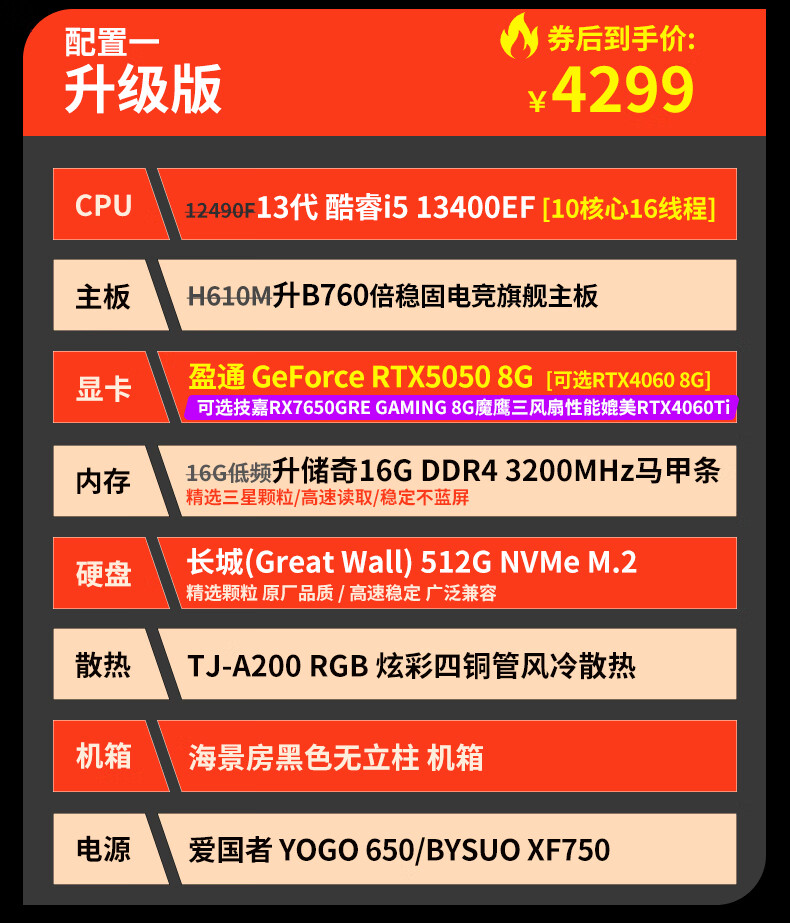Gigabyte Core i5 13400F desktop assembly computer host RTX4060Ti/5060Ti game high-end e-sports independent display live broadcast design rendering complete machine configuration five U5 225F丨RTX4060Ti