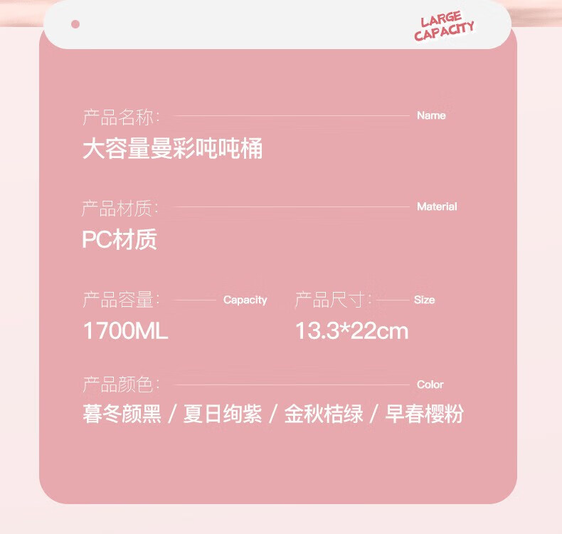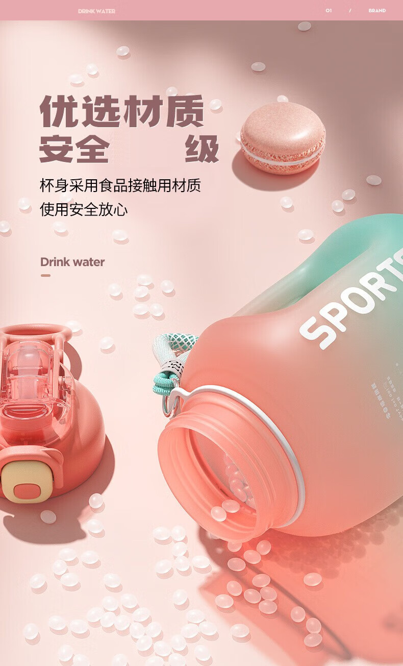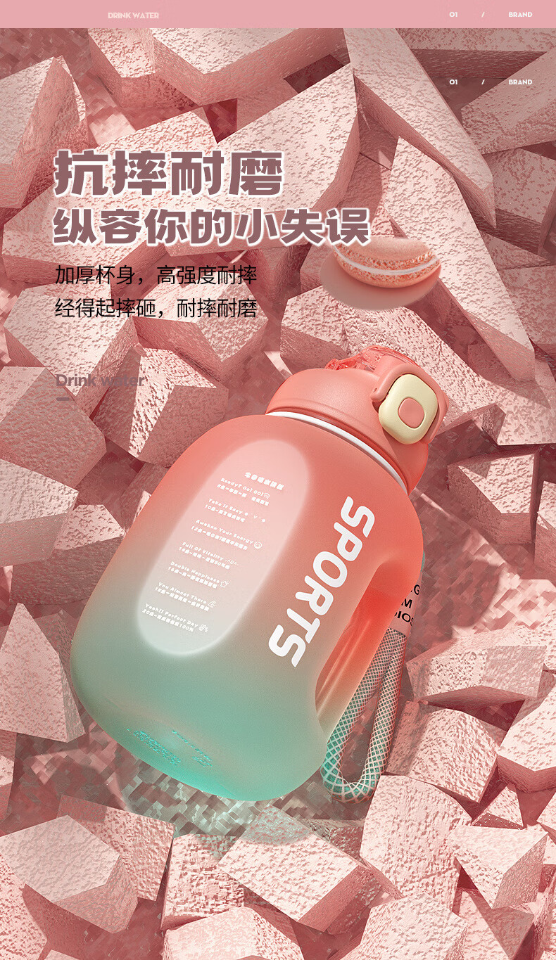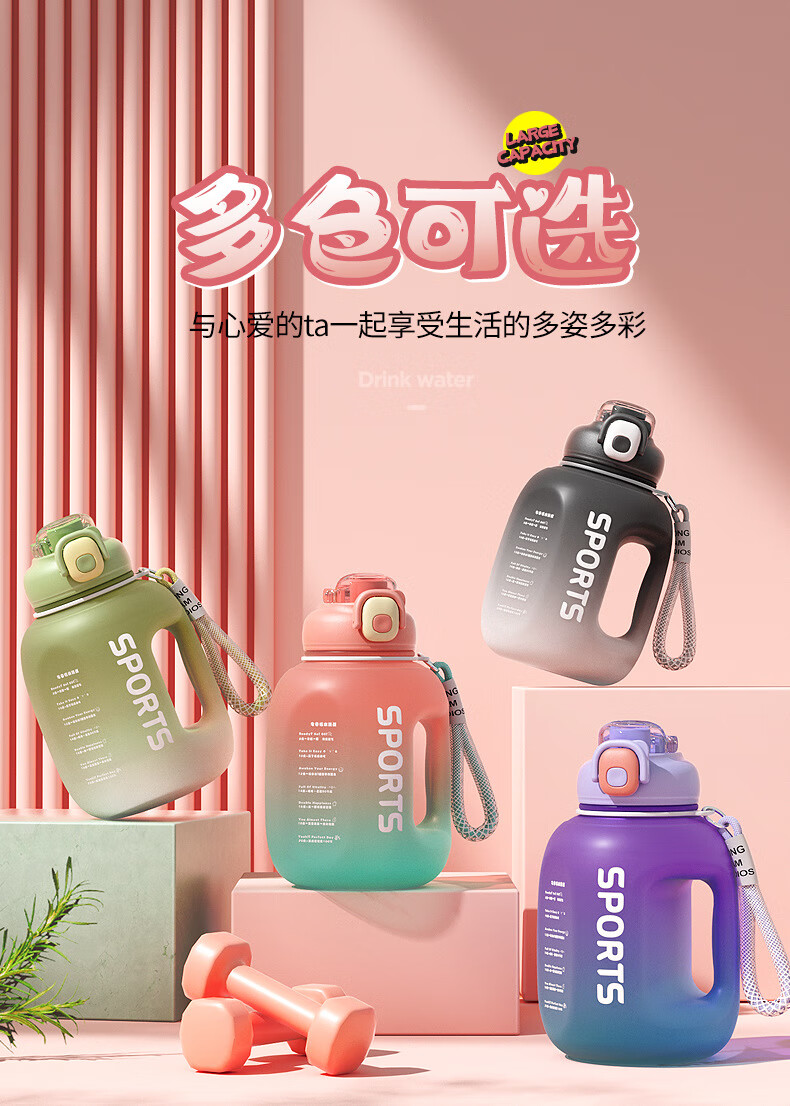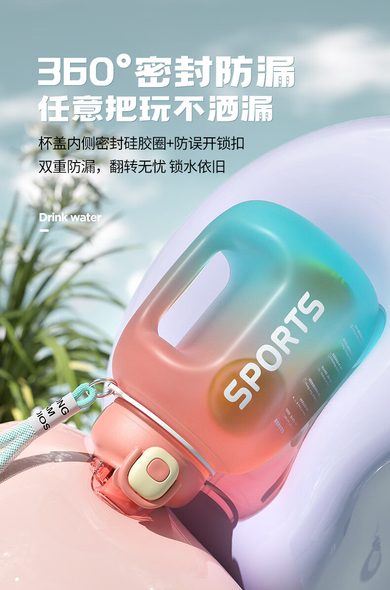 WINTERPALACE ton barrel sports water bottle large capacity plastic cup for men and women with big belly straw outdoor fitness ton pier space cup Mu Dongyan black 1700ml ton barrel