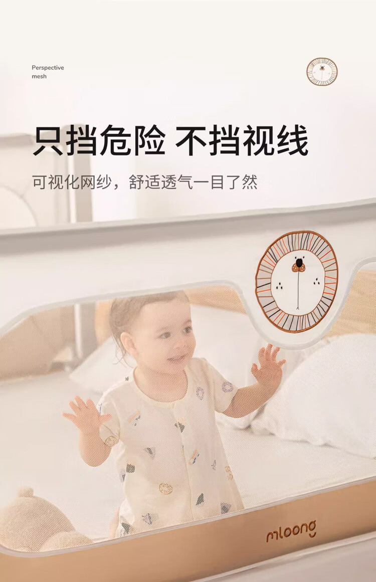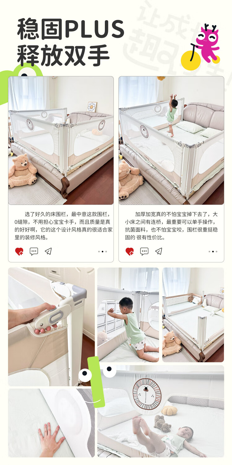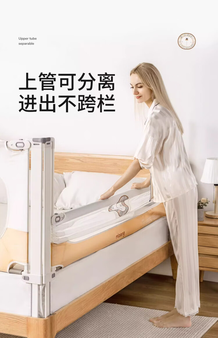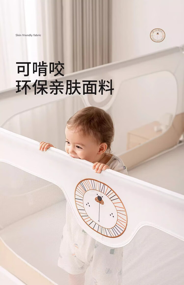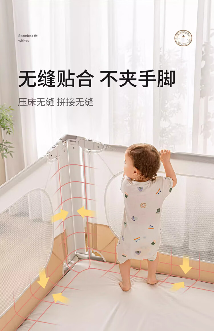 Manlong playpen baby bed fence guardrail baby anti-fall guardrail one side can be raised and lowered splicing soft bag bed fence 1.5m single-sided Monet gray 1.5m