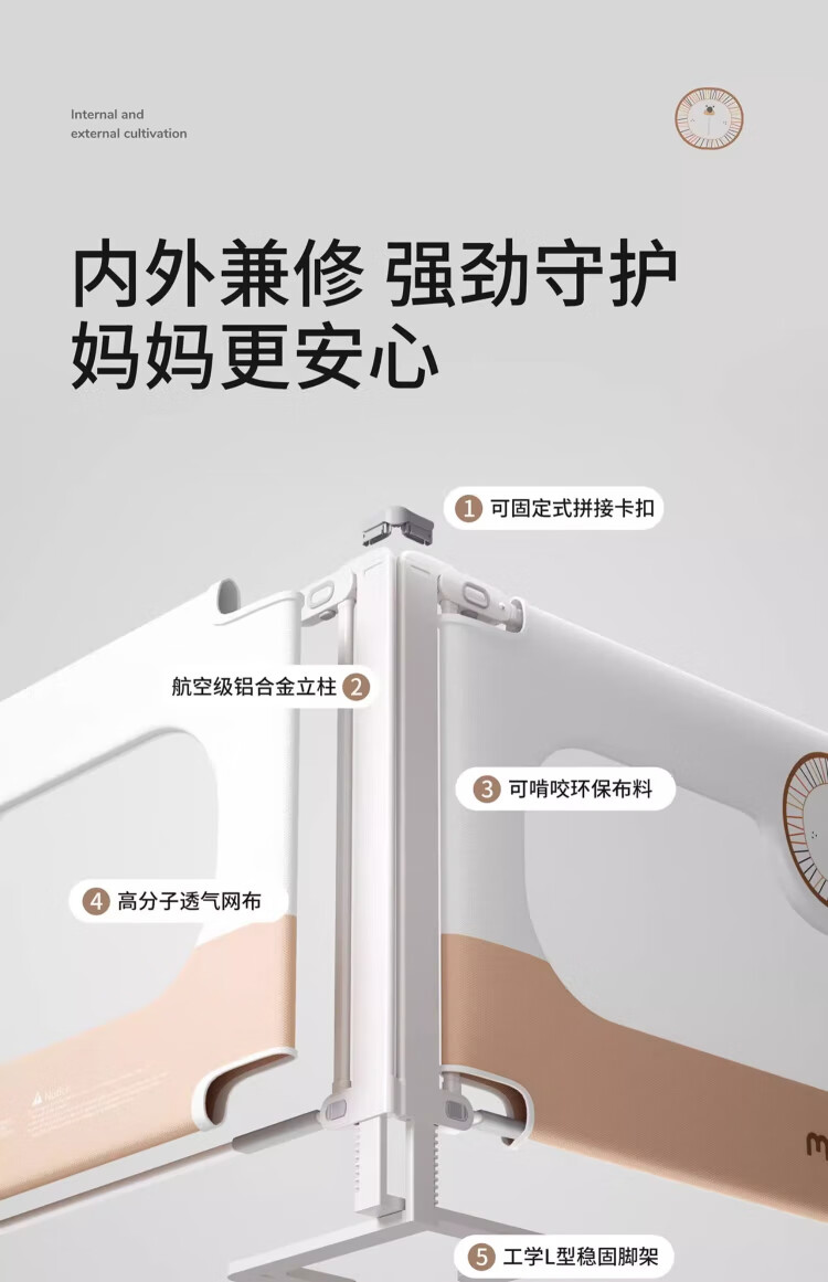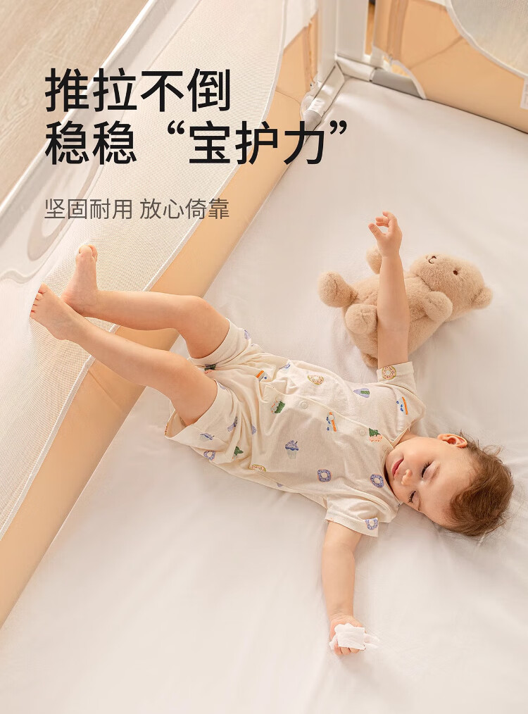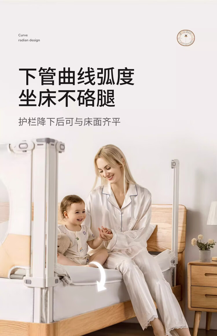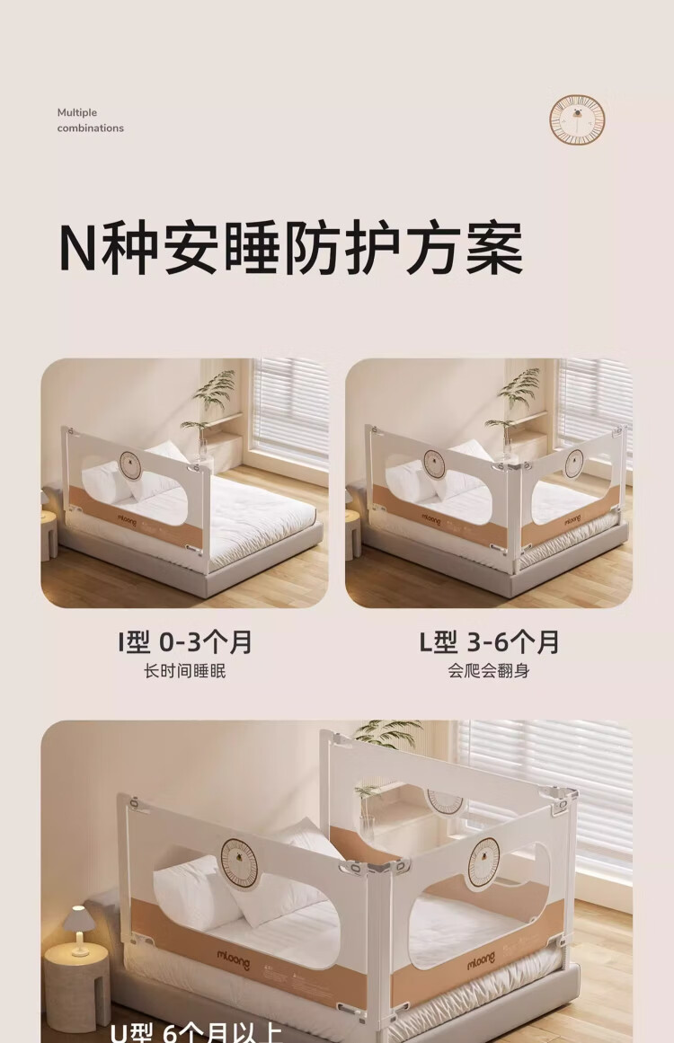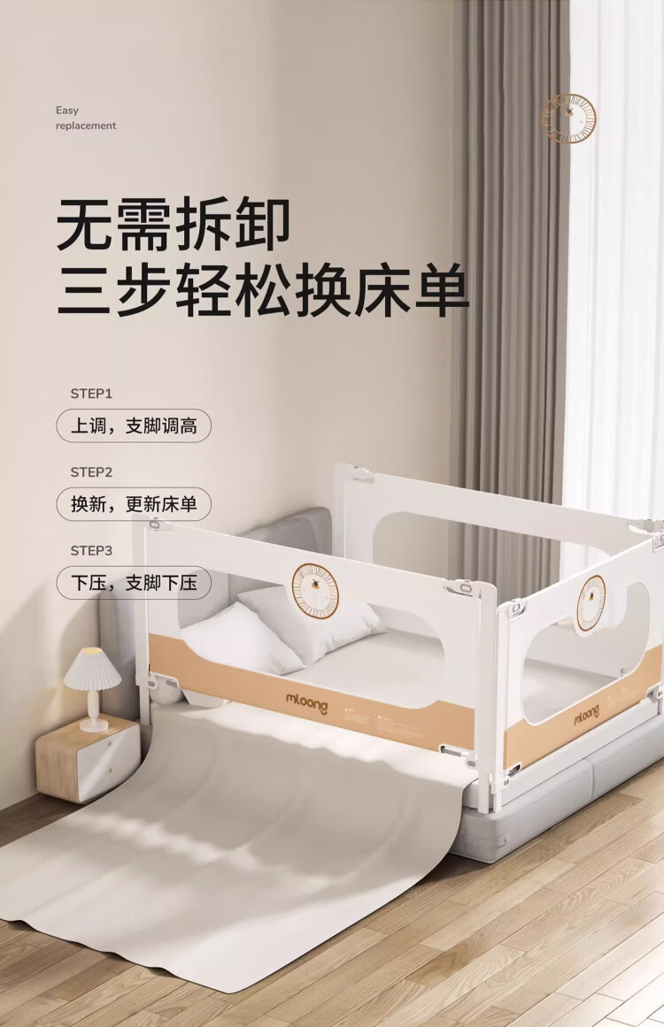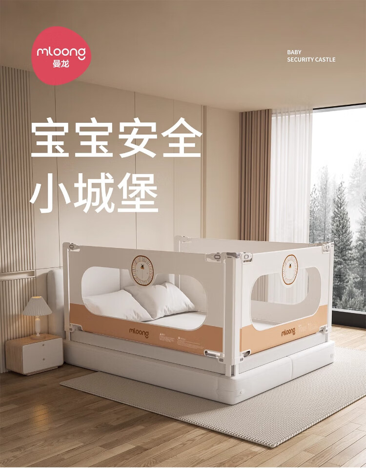 Manlong playpen baby bed fence guardrail baby anti-fall guardrail one side can be raised and lowered splicing soft bag bed fence 1.5m single-sided Monet gray 1.5m