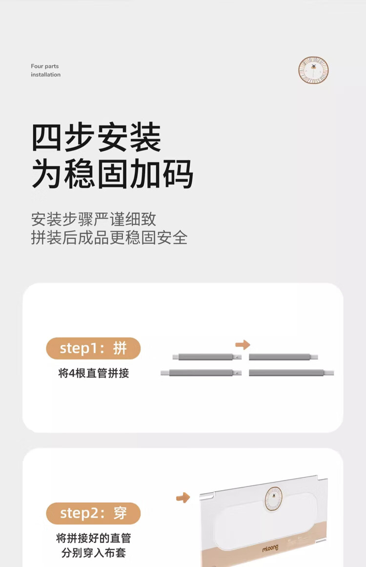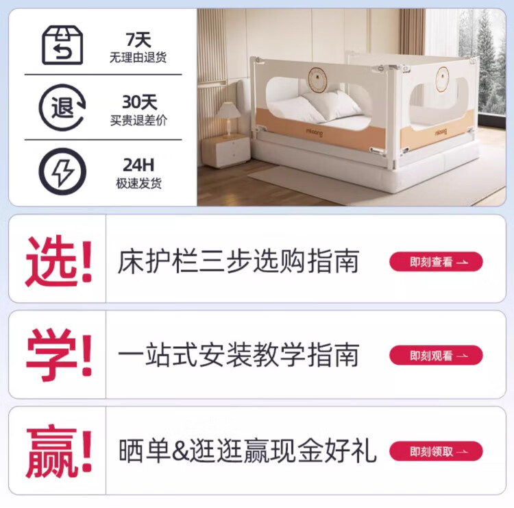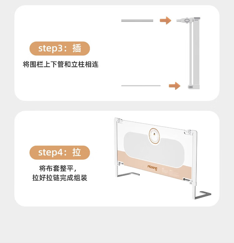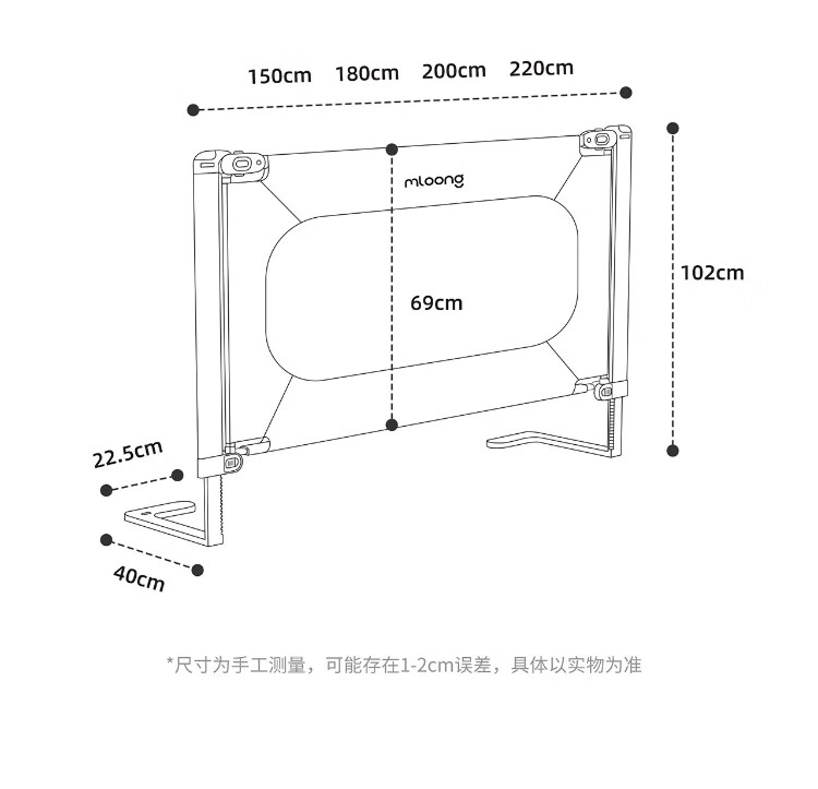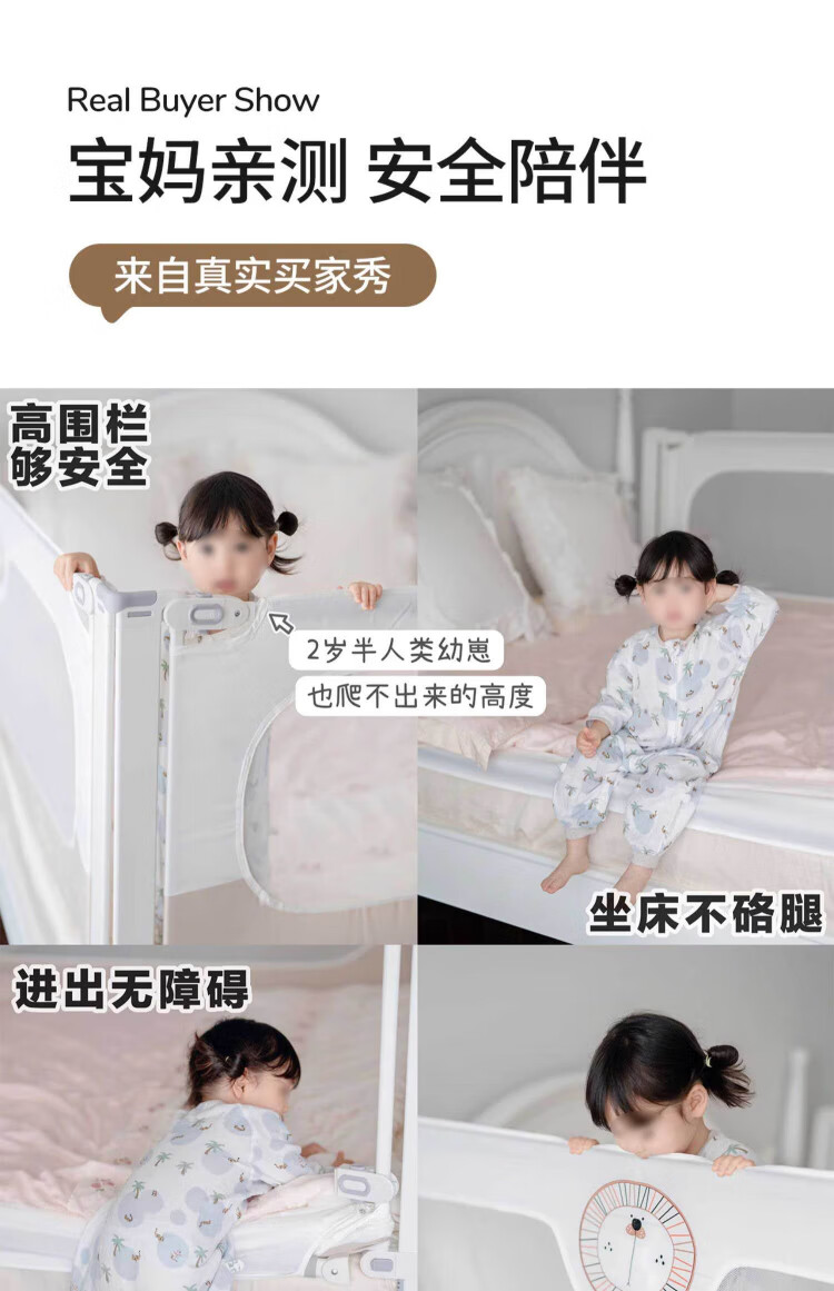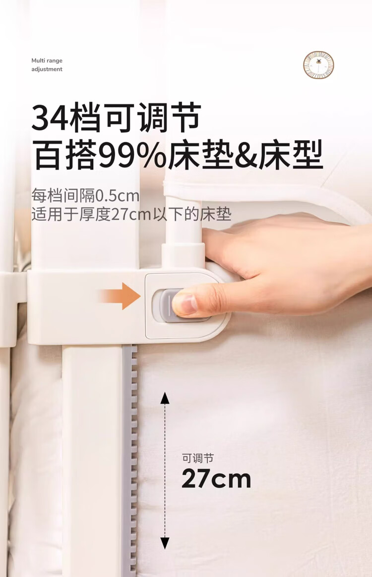 Manlong playpen baby bed fence guardrail baby anti-fall guardrail one side can be raised and lowered splicing soft bag bed fence 1.5m single-sided Monet gray 1.5m