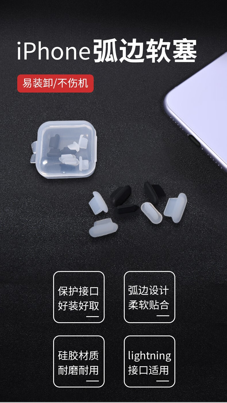 Mu Nian is suitable for Apple 14 mobile phone charging port dustproof plug tail plug dustproof plug 8plus interface 11 power plug headphone hole plug iPhone13 dustproof plug frosted through 10 pieces + storage box + cleaning brush 3D