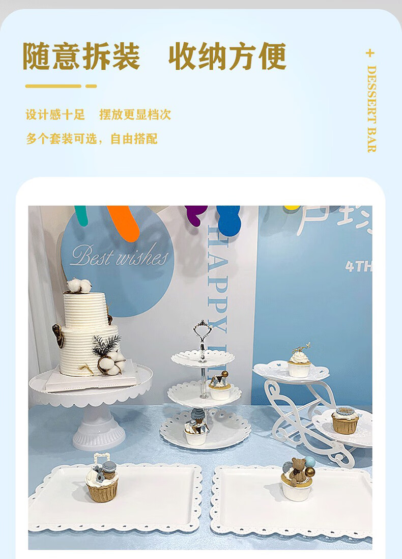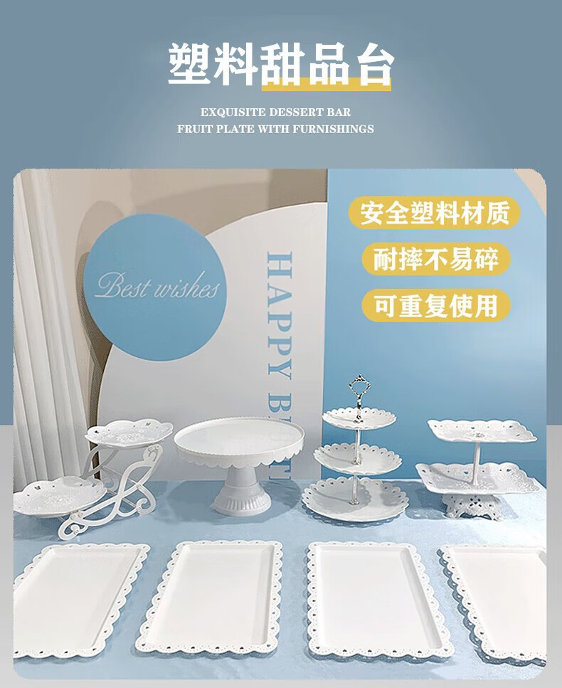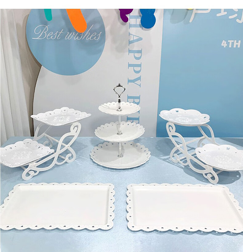 DISID Dessert Table Display Rack Dessert Tea Break Plate Party Plate Multi-layer Fruit Plate Afternoon Tea Plate Plastic 2 Pack White Dessert Display Plate 1