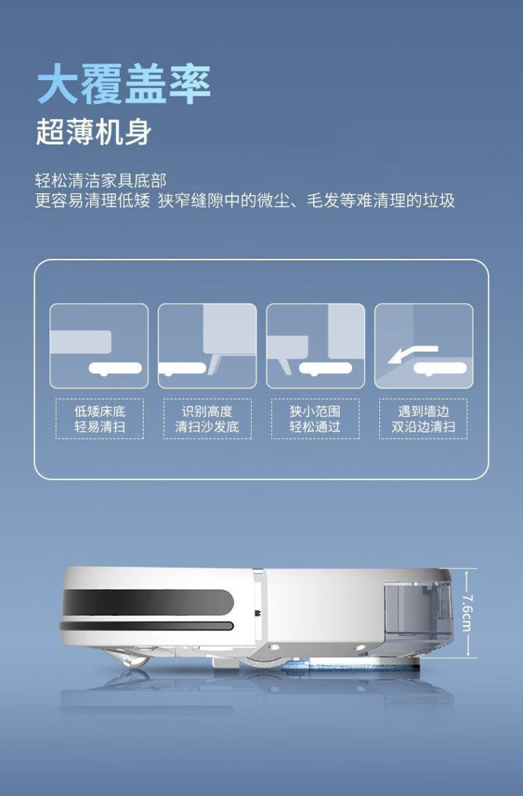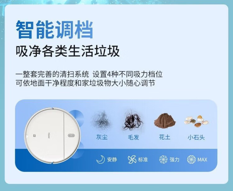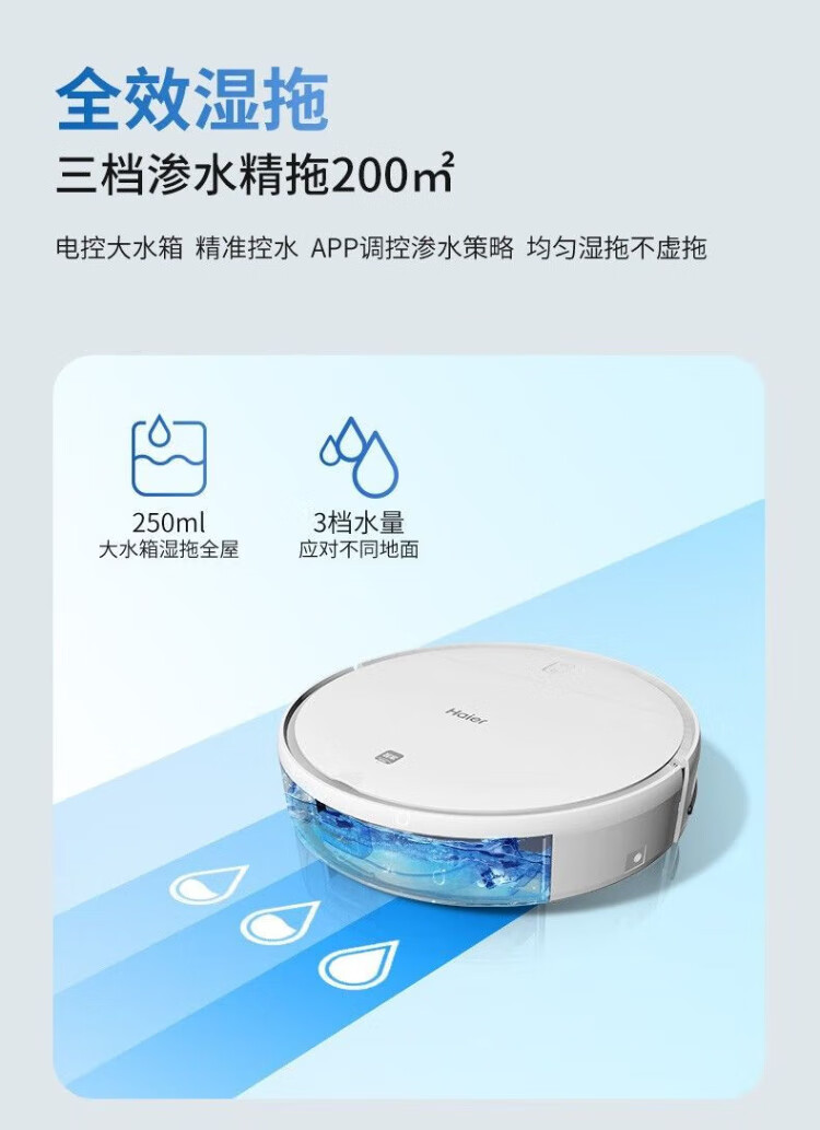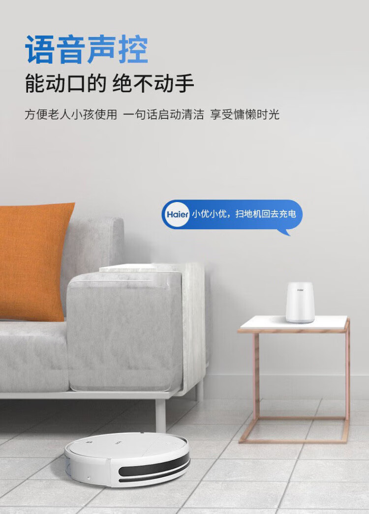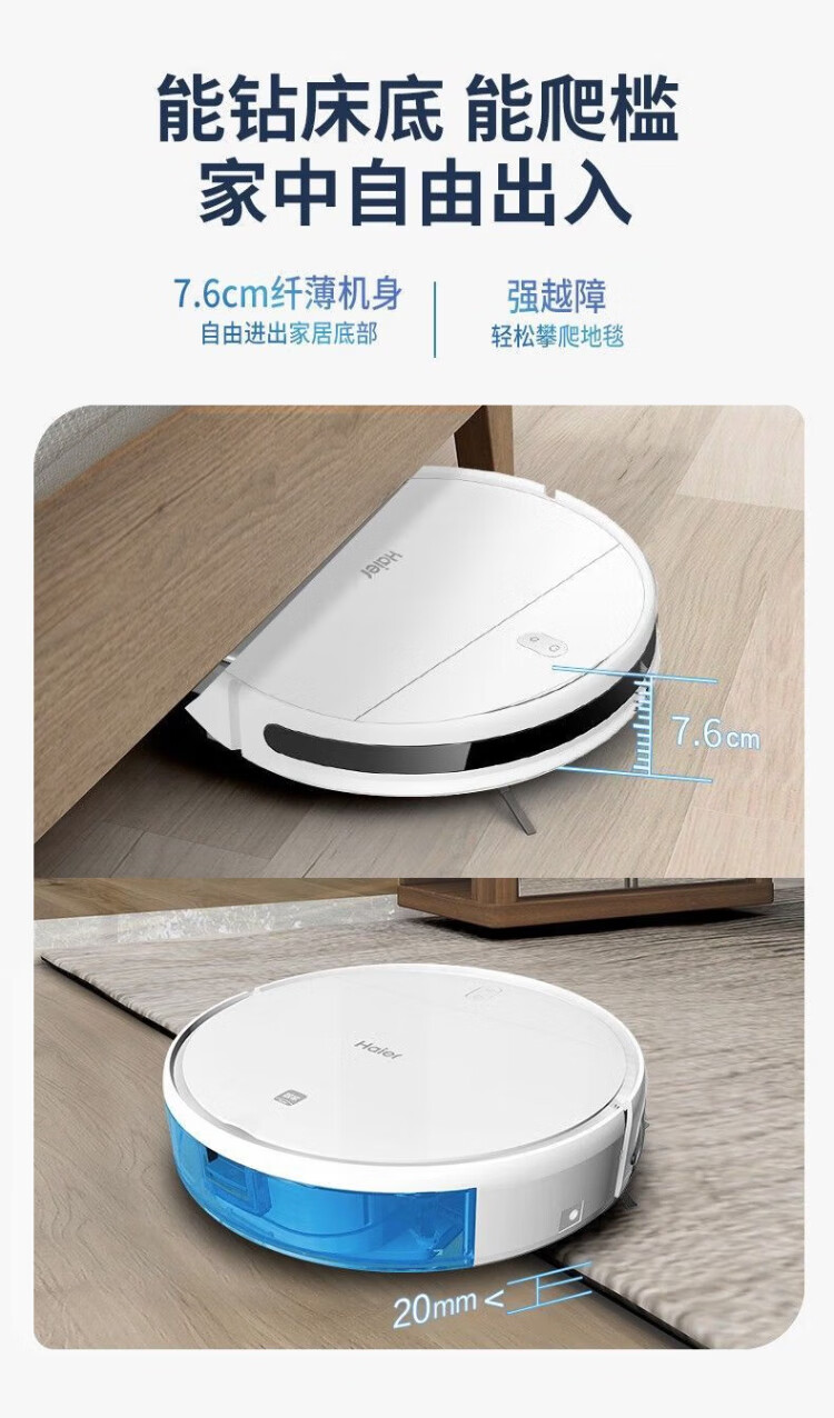 Haier sweeping robot smart home fully automatic sweeping and mopping all-in-one floor sweeping and mopping three-in-one vacuum suction nozzle hair-free APP remote automatic recharging 7.6cm slim body + additional remote control