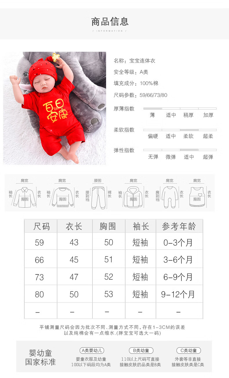 SexeMara Hundred Days Baby Summer Boys Spring and Autumn Red Jumpsuit Thin Full Moon Clothes Women's Newborn Baby Clothes Rainbow My Full Moon Summer Thin 59cm